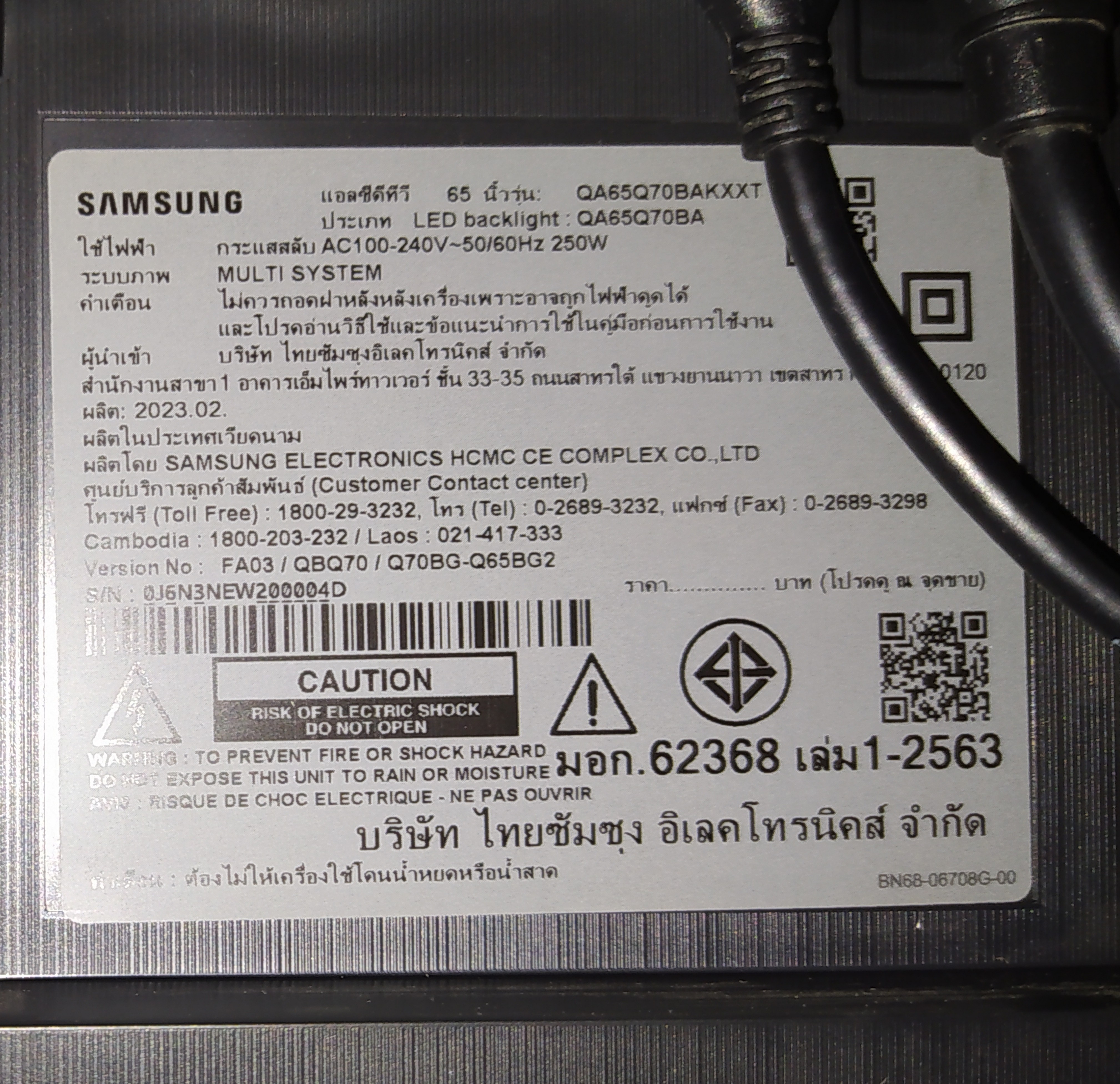 - مونتاژ مصر: QA65Q70BAUXTW مونتاژ مصر: QA65Q70BAUXSA مونتاژ ویتنام (سفارش تایلند): QA65Q70BAKXXT مونتاژ اسلواکی: QE65Q70BATXXC مونتاژ مصر: QA65Q70BAUXZN