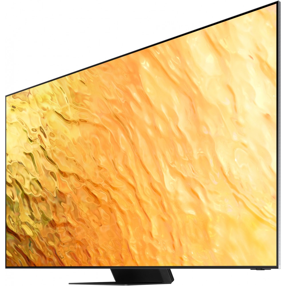 تلویزیون های Neo QLED نسبت به تلویزیون های QLED از کیفیت تصویر بهتر و حداکثر روشنایی بیشتر برخوردار هستند. صفحه نمایش این محصول با استفاده از تکنولوژی Mini LED ساخته شده است و نسبت به تلویزیون های LED دارای واحد های نوری کوچکتر می باشد و می تواند جزئیات بیشتر و رنگ مشکی عمیق تر و واقعی تر را نمایش دهد. تلویزیون Neo QLED سامسونگ 65QN800B دارای پنل VA می باشد. تلویزیون هایی با پنل VA از عمق رنگ مشکی زیاد و کنتراست بسیار عالی برخوردار می باشد، به همین دلیل برای تماشای تلویزیون در محیط های کم نور فوق العاده است. اما این نوع پنل ها از زاویه دید محدودی برخوردارند. استفاده از تکنولوژی Ultra Viewing Angle باعث می شود زاویه دید این تلویزیون بیشتر شده و تقریبا از هر زاویه ای بتوانید تصویر واضح و با کیفیتی ببینید. این محصول دارای نور پس زمینه Direct Full Array Mini LED می باشد. این محصول با استفاده از تکنولوژی Local Dimming از نوع Quantum Matrix Technology Pro نور پس زمینه صفحه نمایش را کنترل می کند و به کمک تکنولوژی Ultimate 8K Dimming Pro کنتراست لازم را در تصاویر و صحنه ها ایجاد می نماید. صفحه نمایش این تلویزیون براق است همچنین تکنولوژی Anti Reflection نیز برخوردار است و از بازتاب نور محیط در صفحه نمایش جلوگیری می کند و گزینه مناسبی برای محیط های پرنور محسوب می شود. عمق رنگ صفحه نمایش این تلویزیون 10 بیت واقعی می باشد و به کمک تکنولوژی Quantum Dot و One Billion Color طیف رنگ بسیار گسترده و تصاویر شگفت انگیز و چشم نوازی را نمایش می دهد. صفحه نمایش این تلویزیون دارای رفرش ریت 120 هرتز می باشد و با استفاده از فناوری Auto Motion Plus و LED Clear Motion صحنه های سریع و اکشن را واضح نمایش می دهد و از تاری آن ها جلوگیری می کند.
