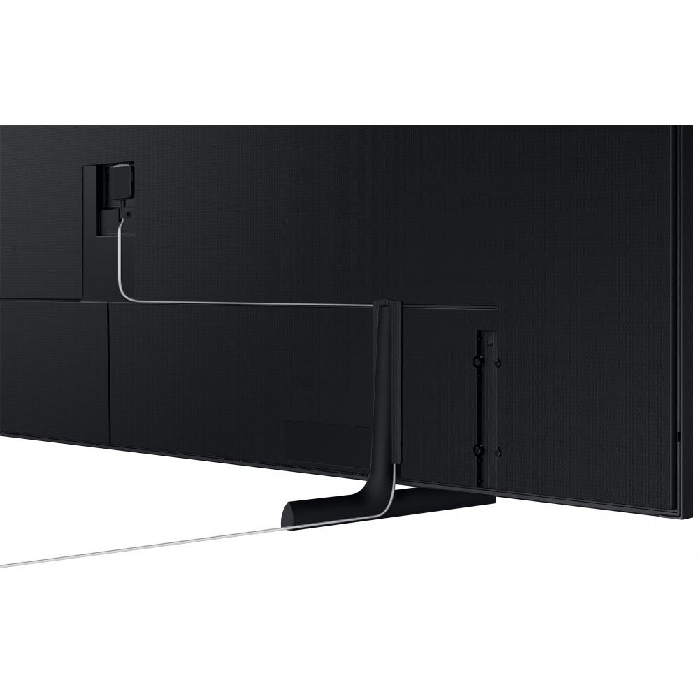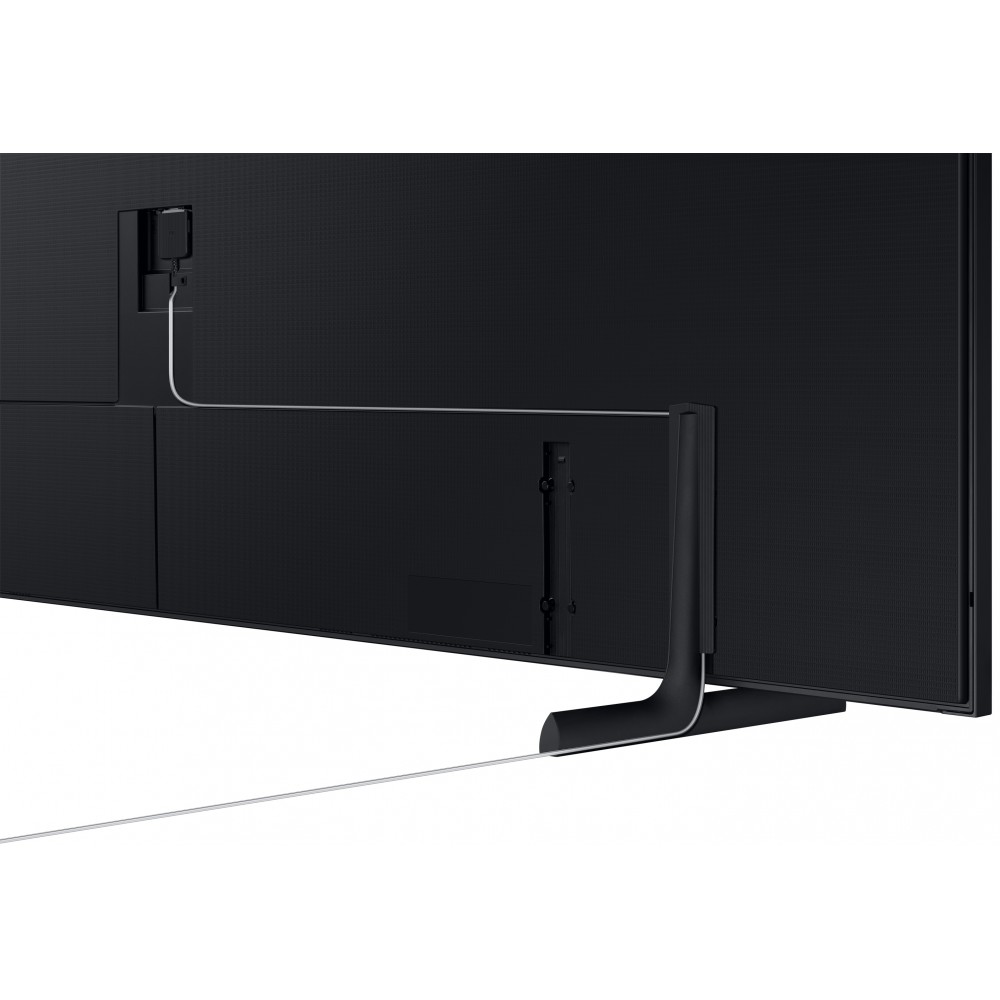تلویزیون 85 اینچ سامسونگ LS03B دارای زبان طراحی Modern Frame است. قاب این تلویزیون به رنگ مشکی است اما امکان تهیه جداگانه و نصب قاب های مخصوص روی محصول فوق وجود دارد. به همراه این تلویزیون، پایه های رومیزی از نوع دو طرفه و خطی و همچنین پایه دیواری باریک از نوع Slim Fit Wall Mount عرضه می شود. پایه رومیزی این تلویزیون برخلاف سایزهای کوچکتر آن، علاوه بر امکان تنظیم ارتفاع قابلیت نصب در 2 مکان مختلف از تلویزیون را دارد. تنها سایزهای 65 اینچ و کوچکتر این تلویزیون از پایه چرخشی پشتیبانی می کنند و متاسفانه سایز 85 اینچ این قابلیت را ندارد. سامسونگ تمام پورت های تلویزیون فوق بجز پورت مخصوص دوربین را به One Connect Box منتقل کرده است تا شما نگران شلوغی پشت تلویزیون نباشید. دستگاه وان کانکت باکس گفته شده مدل SOC1003BA تنها از طریق کابل One Invisible Connection Cable که باریک و در حدود 5 متر طول دارد به این تلویزیون متصل می شود. طول نسبتا بلند کابل گفته شده به شما این امکان را می دهد تا بتوانید دستگاه مذکور را در محل مناسبی قرار داده یا حتی آن را در داخل میز تلویزیون مخفی کنید. کابل One Invisible Connection Cable این محصول با توجه به روکش و رنگی که دارد چندان جلب توجه نمی کند و به نوعی مخفی است. سامسونگ در ساخت جعبه این تلویزیون، از طراحی Eco-packaging استفاده کرده است. جعبه این تلویزیون مقاوم بوده و شما بعد از خارج کردن تلویزیون، می توانید جعبه را برش زده و از آن یک سازه مقوایی مقاوم بسازید. موارد گفته شده تنها قسمتی از ویژگی های برجسته این تلویزیون است. برای مشاهده اطلاعات کامل محصول به جدول مشخصات آن مراجعه نمایید.