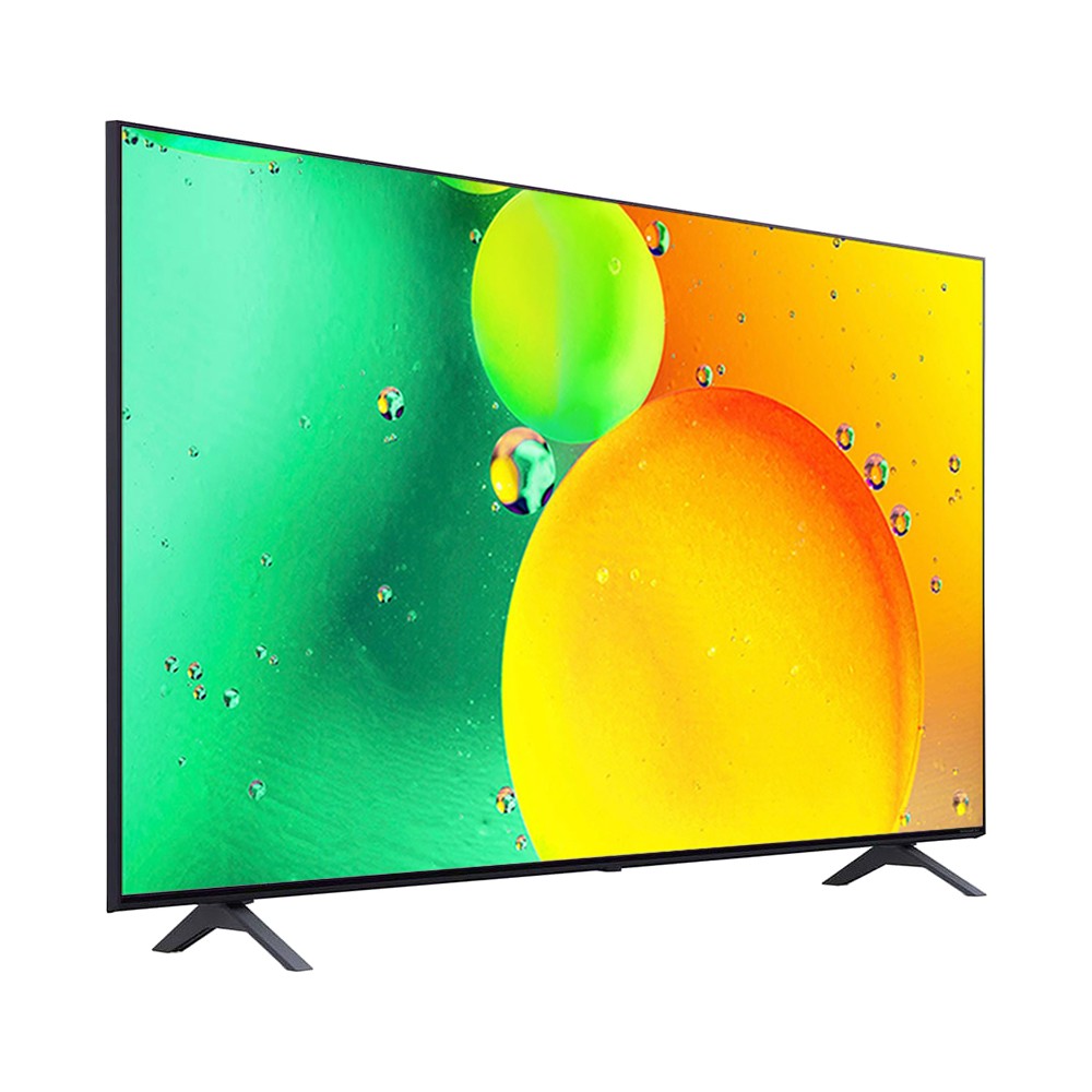 تلویزیون ال جی NANO75 سایز 55 اینچ یکی از تلویزیون های 2022 ال جی است. این تلویزیون با مدل کامل 55NANO75SQA مونتاژ اندونزی (سفارش تایلند) وارد کشور شده و موجود است. تلویزیون NANO75 سری جدید، از جمله ارزان ترین تلویزیون های نانوسل ال جی با کیفیت تصویر 4K در سال 2022 می باشد. این محصول هم رده با تلویزیون ال جی NANO79، تلویزیون ال جی NANO76، تلویزیون ال جی NANO77 و تلویزیون ال جی NANO78 محسوب می شود و به جز تفاوت در طراحی یا رنگ پایه، فرق خاصی با آن ها ندارد. تلویزیون ال جی نانو 75 که ممکن است به اشتباه در بازار جزو تلویزیون های سری 7 ال جی نیز شناخته شود، برای استفاده خانگی و تماشای فیلم مناسب است. همچنین این مدل با توجه به بهره مندی از قابلیت Hotel Mode، می تواند به عنوان یک تلویزیون تجاری برای هتل ها نیز مورد استفاده قرار گیرد. تلویزیون مذکور در واقع مدل جایگزین و جدیدتر تلویزیون ال جی NANO75 در سال گذشته می باشد. این تلویزیون دارای صفحه نمایش نانوسل است و نسبت به تلویزیون های ال ای دی معمولی، تصاویر و صحنه ها را با رنگ های دقیق تری نمایش می دهد.