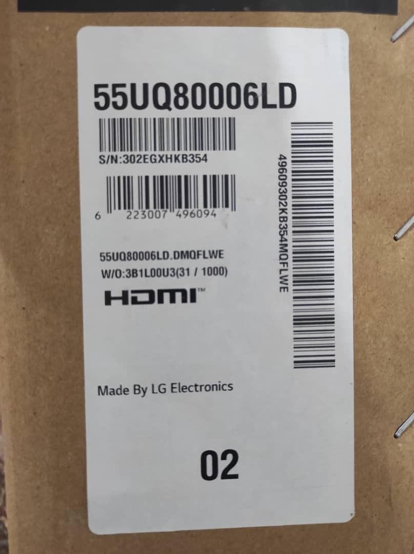 - مونتاژ اندونزی (سفارش تایلند): 55UQ8000PSC مونتاژ مصر: 55UQ80006LD