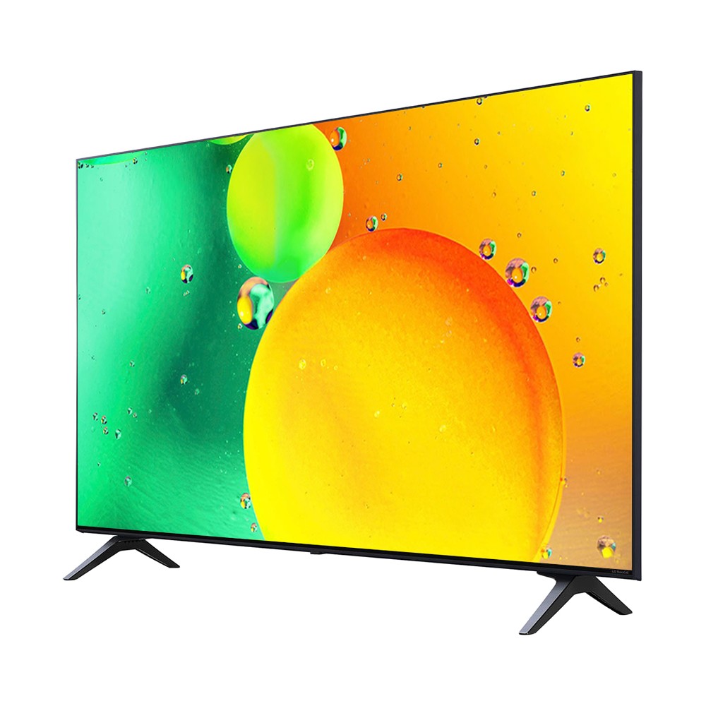 تلویزیون NANO75 سایز 43 اینچ یکی از تلویزیون های 2022 ال جی می باشد. این تلویزیون که ممکن است جزو تلویزیون های سری 7 ال جی نیز عنوان شود برای استفاده روزمره و معمولی، تماشای فیلم و سریال یا حتی استفاده به عنوان تلویزیون تجاری در هتل ها مناسب است. این محصول با مدل کامل 43NANO75SQA مونتاژ اندونزی (سفارش تایلند) وارد کشور شده و موجود است. تلویزیون ال جی NANO75 سایز 43 اینچ یکی از کوچک ترین و ارزان ترین تلویزیون های نانوسل ال جی با کیفیت تصویر فورکی در سال 2022 می باشد. تلویزیون مذکور مدل جایگزین و جدیدتر تلویزیون ال جی NANO75 است که در سال گذشته معرفی و روانه بازار شده بود. این محصول مدل مشابه و هم رده با تلویزیون ال جی NANO79، تلویزیون ال جی NANO76 و تلویزیون ال جی NANO77 و تلویزیون ال جی NANO78 می باشد و به جز تفاوت در طراحی یا رنگ پایه تفاوت چندانی با هم ندارند.