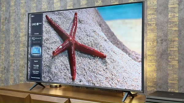 تلویزیون ال جی 86UQ8000 به سیستم صوتی 2 کاناله با توان خروجی صدای 20 وات مجهز است. این تلویزیون برای تولید صدای استریو، به 2 بلندگوی 10 وات مجهز می باشد که در زیر تلویزیون قرار دارند و اصطلاحا از نوع Down Firing یا رو به پایین می باشند. تلویزیون پیش روی شما به تکنولوژی های Dolby Digital، Dolby Digital Plus، Dolby AC-4 و HE-AAC مجهز است و کیفیت صدای مطلوبی دارد. از تکنولوژی Clear Voice Pro در محصول فوق استفاده شده که باعث می شود صدای دیالوگ ها را واضح تر بشنوید. ال جی تکنولوژی AI Sound را در این تلویزیون به کار گرفته است که به کمک هوش مصنوعی، صدا را با توجه به محتوای در حال پخش تنظیم می کند. تکنولوژی فوق امکان شبیه سازی صدای فراگیر را نیز دارد و باعث می شود حس کنید در میان صحنه های در حال پخش قرار دارید. تلویزیون مورد بحث، به فناوری AI Acoustic Tuning مجهز است. این فناوری به کمک هوش مصنوعی و میکروفونی که روی ریموت کنترل تلویزیون مذکور قرار دارد، نوع محیط و فاصله بیننده تا تلویزیون را تشخیص داده و صدای خروجی را با توجه به این اطلاعات تنظیم می کند. در کل باید گفت کیفیت صدای این محصول قابل قبول است اما احتمالا قدرت خروجی صدای آن برای یک تلویزیون 86 اینچ راضی کننده نباشد و به یک ساندبار یا سیستم صوتی در کنار تلویزیون نیاز داشته باشید. ال جی این تلویزیون را به پورت خروجی صدای دیجیتال (Optical) مجهز کرده است. همچنین این تلویزیون دارای پورت HDMI با پشتیبانی از کانال برگشتی صدا از نوع ARC و eARC می باشد. شما می توانید ساندبار یا سینمای خانگی خود را از طریق این پورت ها به تلویزیون متصل کنید. علاوه بر این، تلویزیون مذکور دارای بلوتوث داخلی نسخه 5 است که امکان اتصال ساندبار، بلندگو، هدفون و هر سیستم صوتی بلوتوثی دیگر به این تلویزیون را میسر می سازد. قابلیت Bluetooth Surround Ready در تلویزیون فوق وجود دارد و می توانید با متصل کردن 2 بلندگوی بلوتوثی سازگار به این محصول، صدای همزمان و فراگیر را تجربه کنید. همچنین این تلویزیون دارای قابلیت Simultaneous Audio Output می باشد. زمانی که ساندبار سازگار را به تلویزیون متصل کرده باشید، این قابلیت باعث می شود بتوانید صدا را همزمان از تلویزیون و ساندبار بشنوید.