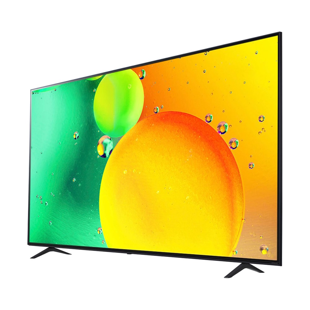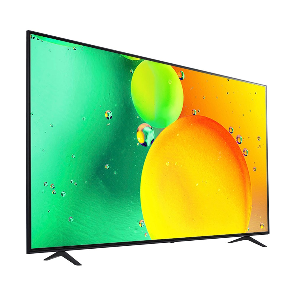 تلویزیون ال جی نانو 75 سایز 86 اینچ یکی از تلویزیون های 2022 ال جی است. این محصول با مدل کامل 86NANO75SQA مونتاژ اندونزی (سفارش تایلند) وارد ایران شده و موجود می باشد. تلویزیون NANO75 که جزو تلویزیون های سری 7 ال جی نیز شناخته می شود، علاوه بر استفاده روزمره و تماشای فیلم، برای بازی کردن و اتصال به کنسول های بازی نسل نهم نیز مناسب است. همچنین به دلیل برخورداری از قابلیت Hotel Mode می توان به عنوان یک تلویزیون تجاری نیز از آن در هتل ها استفاده کرد. این محصول مشابه تلویزیون ال جی NANO78، تلویزیون ال جی NANO79، تلویزیون ال جی NANO77 و تلویزیون ال جی NANO76 می باشد و به جز تفاوت در طراحی یا رنگ پایه فرق خاصی با هم ندارند. تلویزیون ال جی NANO75 سایز 86 اینچ پایین رده ترین تلویزیون گیمینگ ال جی با صفحه نمایش NanoCell و رفرش ریت 120 هرتز در سال 2022 می باشد. این تلویزیون مدل جدیدتر و جایگزین تلویزیون ال جی NANO75 در سال گذشته می باشد.