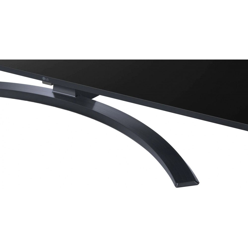 در ساخت تلویزیون 50 اینچ ال جی UQ9100 از زبان طراحی 3 Sided Cinema Screen استفاده شده است. به لطف این زبان طراحی تلویزیون مذکور دارای حاشیه های باریکی در 3 طرف صفحه نمایش خود بوده و نگاه شما را به سمت مرکز خود می کشاند. پایه این تلویزیون که ظاهری هلالی شکل دارد، از ترکیب فلز و پلاستیک ساخته شده است و به کمک پیج به وسط آن متصل می شود؛ بدین ترتیب شما می توانید این تلویزیون را بر روی میز قرار دهید. بدنه مشکی رنگ این محصول بسیار شیک و زیبا بوده و ضخامت کلی آن در حد 5.71 سانتیمتر است که آن را به گزینه ای مناسب برای نصب روی دیوار تبدیل می کند. ال جی جعبه این تلویزیون را قابل بازیافت (طراحی Eco-Packaging) ساخته تا با تهیه آن، آسیب چندانی به محیط زیست نزنید. در داخل این جعبه، یک بست کمربندی، یک گیره نگهدارنده و دو عدد گیره Cable Management برای مدیریت کابل ها نیز وجود دارد که می توانید به کمک آن ها کابل ها را در پشت تلویزیون منظم و مدیریت کنید. کابل برق تلویزیون پیش روی شما قابلیت جدا شدن دارد و در صورت نیاز می توان آن را تعویض نمود. همچنین این کابل از نوع 3 شاخه است که برای اتصال آن به پریز برق نیز به تبدیل 3 به 2 دارید.
