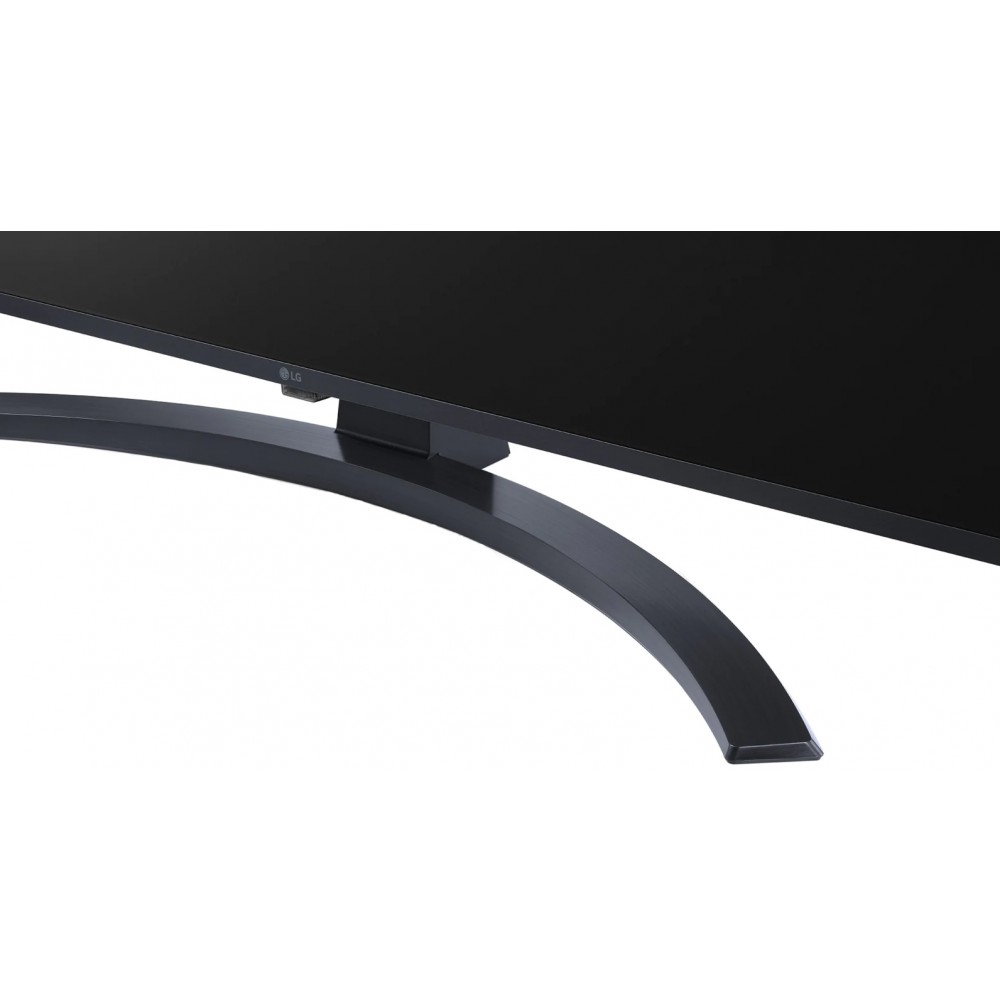 تلویزیون 43 اینچ ال جی UQ9100 به زبان طراحی 3 Sided Cinema Screen مجهز شده است و قاب صفحه نمایش آن در 3 طرف، باریک تر از قسمت پایینی می باشد. این موضوع سبب می شود تا شما در هنگام تماشای محتوای مورد علاقه خود تمرکز بیشتری داشته باشید. الجی برای این محصول در مقایسه با سایزهای بزرگ تر آن پایه هلالی بزرگ تری را طراحی نموده است. این پایه که از دو قسمت فلزی و پلاستیکی ساخته شده، به کمک پیچ در قسمت میانی تلویزیون مذکور نصب می گردد. ضخامت بدنه این تلویزیون 5.71 سانتیمتر می باشد و شما می توانید در صورت تمایل آن را بر روی دیوار نیز نصب کنید و از زیبایی آن در دکوراسیون خود لذت ببرید. به همراه این تلویزیون 1 عدد بست کمربندی، گیره نگهدارنده و همینطور 2 عدد گیره Cable Management برای مرتب کردن کابل ها در پشت آن در اختیار شما قرار می گیرد تا به کمک آن ها بتوانید کابل های مربوط به تلویزیون را مدیریت کنید. جعبه این تلویزیون دارای طراحی Eco-Packaging می باشد که قابلیت بازیافت دارد و در راستای حفاظت از محیط زیست ساخته شده است. کابل برق این محصول قابلیت جدا شدن دارد و شما می توانید در صورت نیاز آن را تعویض کنید. لازم است بدانید که کابل برق مذکور از نوع 3 شاخه می بتاشد و شما برای استفاده از آن به یک تبدیل 3 به 2 نیاز دارید.