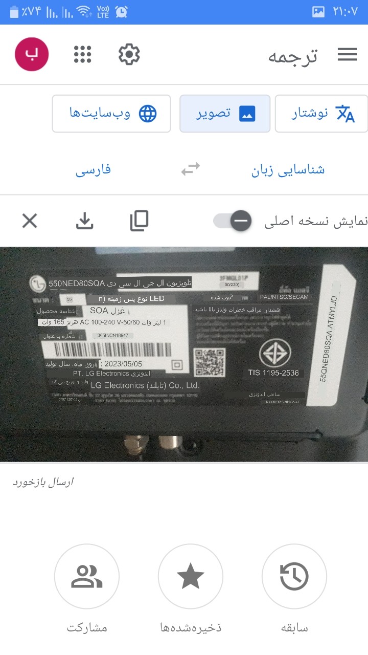 رضایت سرکار خانم رحیمی منش از تهران خریدار تلویزیون ال جی مدل 55Qned80 ممنون بابت اعتماد شما و از لطفتان سپاسگزاریم فروشنده ( خانم محمدی 09184179241)