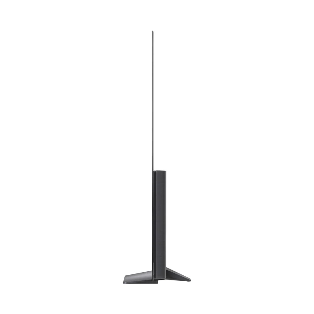 تلویزیون 77 اینچ ال جی B2 دارای زبان طراحی 4 Sided Cinema Screen است که به معنی حاشیه های باریک 4 طرف صفحه نمایش آن می باشد و به شما کمک می کند تا روی محتوای در حال پخش تمرکز کرده و از تماشای آن لذت بیشتری ببرید. ضخامت قسمت بالای این تلویزیون بسیار ناچیز و باریک است اما قسمت پایین آن کمی قطور تر می باشد و به 5.53 سانتیمتر می رسد. البته این موضوع مشکلی ایجاد نمی کند و شما می توانید آن را به راحتی بر روی دیوار نیز نصب کنید. پایه این محصول از جنس پلاستیکی و به صورت یک تکه ساخته شده است و وزن سبکی دارد. این پایه به شکل خطی است و به کمک پیچ در قسمت وسط آن نصب می شود. برای قسمت پشت این پایه نیز کاوری طراحی شده است که می توانید از آن برای یک دست کردن و زیبا سازی پشت تلویزیون بهره بگیرید. ال جی در داخل جعبه تلویزیون مذکور یک گیره مدیریت کابل (Cable Management) قرار داده است که می توانید از آن برای مرتب و منظم کردن کابل های پشت تلویزیون استفاده کنید.