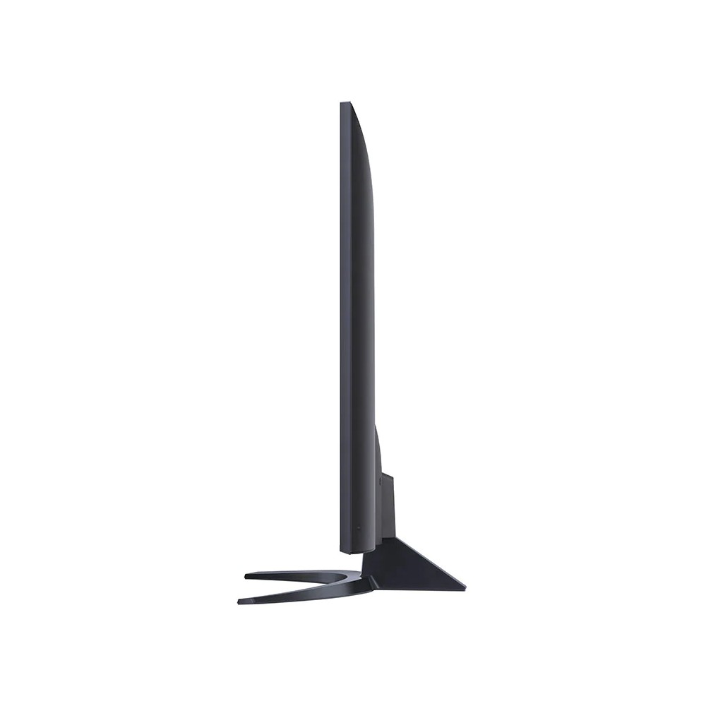 تلویزیون 55 اینچ ال جی NANO76 از زبان طراحی 3 Sided Cinema Screen برخوردار شده است و به لطف آن، حاشیه های کاملا باریکی در 3 طرف صفحه نمایش آن به چشم می خورد. پایه رومیزی طراحی شده برای این محصول به صورت دو تکه و هلالی شکل است. قسمت های این پایه با استفاده از پیچ به یکدیگر متصل شده و در نهایت پایه مذکور در قسمت میانی تلویزیون نصب می شود. ال جی قسمت داخلی این پایه را از جنس فلزی و قسمت بیرونی آن را از جنس پلاستیکی ساخته است. این محصول از پایه Gallery Stand نیز پشتیبانی می کند و با خرید آن به صورت جداگانه می توانید تلویزیون را روی آن نصب کنید. ضخامت کلی تلویزیون پیش رو نسبتا کم و در حد 5.81 سانتی متر است و شما می توانید با تهیه یک پایه دیواری سازگار با این مدل آن را روی دیوار نصب کرده و به محیط خود جلوه زیبایی بدهید. در جعبه این محصول یک بست کمربندی، دو گیره مدیریت کابل Cable Management و همینطور یک گیره نگهدارنده قرار داده شده است که به کمک آن ها می توانید کابل های مربوطه را در قسمت پشت تلویزیون مدیریت و مرتب نمایید.