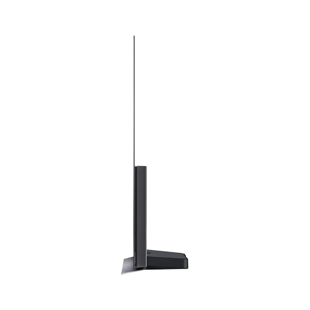تلویزیون 77 اینچ ال جی CS از زبان طراحی 4 Sided Cinema Screen برخوردار است که به معنی باریک بودن حاشیه های 4 طرف صفحه نمایش آن می باشد. این محصول دارای یک پایه خطی است که از دو قسمت فلزی و پلاستیکی تشکیل شده است و به کمک پیچ در قسمت وسط تلویزیون نصب می شود. پشت این پایه، محلی برای عبور کابل ها تعبیه شده است و شما می توانید پس از عبور کابل ها از آن، کاور مخصوص را بر روی آن قرار دهید و کابل ها را در زیر آن مخفی نمایید. همچنین داخل جعبه تلویزیون نیز بست کمربندی وجود دارد که می توانید به کمک آن کابل ها را پشت تلویزیون مدیریت کنید. ضخامت قسمت بالای تلویزیون بسیار باریک است اما ضخامت قسمت پایین آن 5.53 سانتیمتر می باشد. در هر صورت شما برای نصب این تلویزیون روی دیوار مشکلی نخواهید داشت و با تهیه یک براکت مناسب می توانید این تلویزیون را روی دیوار نصب کنید. طبق بررسی های انجام شده متوجه شدیم که کابل برق این تلویزیون به آن متصل می باشد و قابلیت جداسازی ندارد. این کابل برق از نوع 3 شاخه است و شما برای استفاده از آن باید یک تبدیل 3 به 2 نیز تهیه نمایید. لازم به ذکر است که طول کابل مذکور 1.5 متر می باشد.