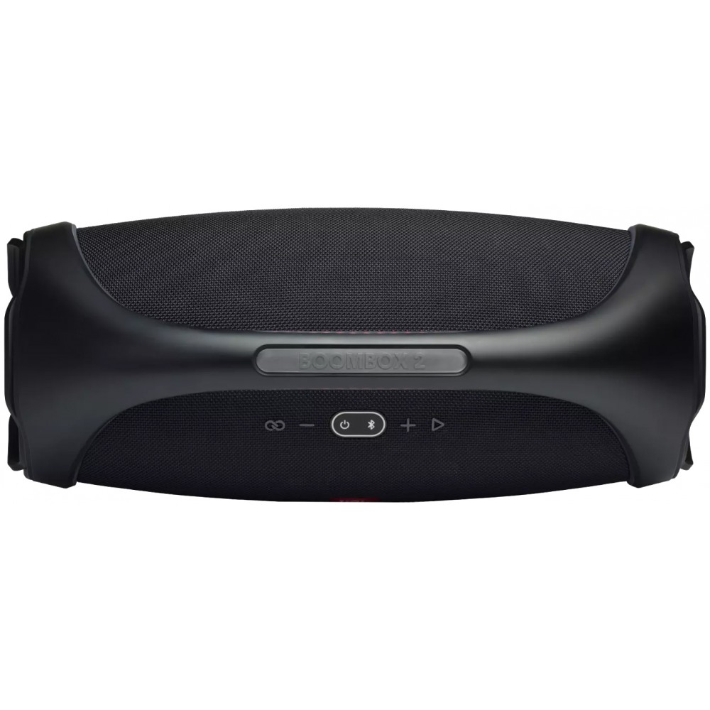 اسپیکر جی بی ال Boombox 2 یا Boombox2 از جمله اسپیکرهای بلوتوثی 2020 جی بی ال است. اسپیکر پرتابل (قابل حمل) جی بی ال بوم باکس 2 بهترین بلندگوی سری Boombox جی بی ال می باشد. این بلندگو در واقع مدل جدیدتر و جایگزین اسپیکر جی بی ال Boombox است که چند سال قبل معرفی شده بود. بلندگوی بلوتوثی پیش روی شما از جمله اسپیکر های شارژی و قابل حمل جی بی ال به حساب می آید که برای مهمانی های کوچک بسیار مناسب است. این اسپیکر دارای قدرت خروجی صدای 160 وات است و با توجه به ابعاد کوچک، قدرت و کیفیت صدای فوق العاده ای دارد. اسپیکر 160 وات جی بی ال Boom Box 2 از سیستم صوتی 2 کاناله برخوردار است و صدای استریو در اختیار شما قرار می دهد. این اسپیکر به 2 بلندگوی توییتر (Tweeter) 20 میلیمتری با توان 40 وات و 2 بلندگوی ووفر (Woofer) 106 میلیمتری با توان 40 وات مجهز است. محصول پیش روی شما دارای سیستم تقویت صدای باس نسبتا خوب و راضی کننده ای می باشد. شما می توانید با نگه داشتن دکمه بلوتوث و افزایش یا کاهش صدا، تقویت کننده صدای باس را خاموش یا روشن کنید. بلندگوی جی بی ال Boombox 2 مجهز به بلوتوث داخلی نسخه 2.1 است. به این ترتیب شما می توانید انواع گوشی هوشمند اندروید، iOS و یا هر پخش کننده دیگری که قابلیت پخش صدا از طریق بلوتوث دارند را به این اسپیکر متصل کرده و آهنگ های مورد نظر خود را پخش کنید. البته محصول فوق از نرم افزار JBL Portable پشتیبانی می کند و شما می توانید با نصب این برنامه روی گوشی هوشمند خود، برخی امکانات بلندگوی فوق را کنترل نمایید. این اسپیکر بلوتوثی جی بی ال دارای قابلیت PartyBoost می باشد و شما می توانید اسپیکر سازگار دیگر که از این قابلیت پشتیبانی می کند را به آن متصل کرده و صدای قدرتمندتری دریافت کنید. محصول فوق علاوه بر بلوتوث، دارای 1 پورت ورودی صدا (AUX) از نوع 3.5 میلیمتری است و شما می توانید از طریق کابل مخصوص نیز آهنگ مورد نظر خود را روی این اسپیکر پخش کنید. بلندگوی پیش روی شما به 1 پورت Micro USB و 1 پورت USB 2.0 مجهز است اما متاسفانه نمی توانید از آنها برای متصل کردن حافظه جانبی استفاده کنید. پورت میکرو USB تنها برای سرویس و بروز رسانی اسپیکر است. همچنین پورت USB 2.0 از نوع 5 ولت و 2 آمپر است و تنها برای شارژ لوازم جانبی می تواند مورد استفاده قرار گیرد. متاسفانه این اسپیکر برخلاف مدل قبلی خود از دستیار صوتی پشتیبانی نمی کند. اسپیکر قابل حمل جی بی ال Boombox 2 رنگ مشکی ابعاد نسبتا کوچک و طراحی شیک و قابل قبولی دارد. وزن این اسپیکر با توجه به ابعادی که دارد کمی زیاد است، اما با وجود دستگیره موجود در بالای آن، به راحتی قابل حمل و نقل می باشد. متاسفانه این بلندگو فاقد رقص نور است. این محصول یکی دیگر از بلندگوهای قابل حمل یا پرتابل JBL است که به باتری داخلی مجهز می باشد. ظرفیت باتری این اسپیکر برابر با 10000 میلی آمپر است. بلندگوی پیش روی شما در کمتر از 6.5 ساعت بطور کامل شارژ می شود و به گفته جی بی ال، تا حدود 24 ساعت امکان پخش مداوم آهنگ را دارد. البته این زمان تقریبی است و کاملا بستگی به میزان صدا و نوع استفاده شما از اسپیکر دارد. این بلندگو مانند یک پاوربانک نیز عمل می کند و شما می توانید از طریق پورت USB که برای این محصول در نظر گرفته شده، لوازم جانبی مانند موبایل خود را شارژ نمایید. تمامی پورت های محصول فوق توسط درپوشی محافظت می شوند که می تواند از ورود آب به دستگاه جلوگیری کند. این بلندگو از استاندارد IPX7 برخوردار بوده و جزو اسپیکر های ضد آب جی بی ال به حساب می آید. وجود این استاندارد یعنی در صورت بسته بودن درپوش مربوط به پورت ها، اسپیکر فوق می تواند تا 30 دقیقه در عمق 1 متری آب قرار بگیرد و مشکلی پیش نیاید. در قسمت بالای اسپیکر فوق، دکمه های کنترلی از نوع فشاری قرار گرفته اند که می توانید از آنها برای کنترل اسپیکر استفاده کنید. این نکته قابل ذکر است که توسط دکمه های کنترلی روی اسپیکر فوق، تنها امکان توقف یا پرش به آهنگ بعد وجود دارد و نمی توانید از روی خود دستگاه آهنگ قبلی را پخش کنید. در صفحه پیش روی شما 
