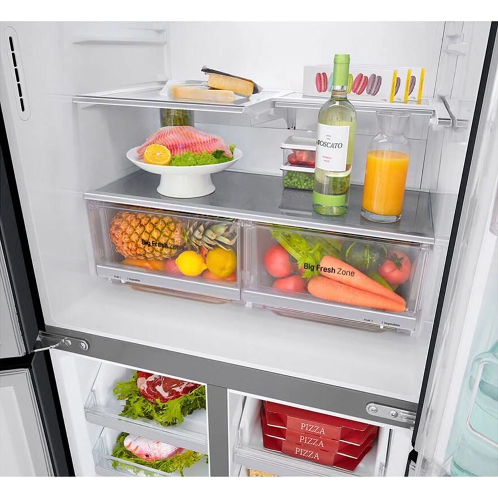 - سیستم یخ ساز اتوماتیک با طراحی فوق باریک برای اشغال فضای کمتر (Slim SpacePlus Ice System) قابلیت Express Freeze برای انجماد سریع در فریزر و یخ ساز دستگیره مخفی (Track Handle) سیستم عیب یاب هوشمند (Smart Diagnosis) برای عیب یابی راحت تر قفسه Snack Corner مخصوص نگهداری مواد غذایی کوچک تکنولوژی +Hygiene FRESH با فیلتر 5 لایه برای از بین بردن باکتری ها تا 99.999% و بوی بد مواد غذایی و تصفیه هوای داخلی یخچال طبقات یخچال و فریزر از جنس شیشه حرارت دیده سیستم یخ ریز با قابلیت تولید یخ حبه ای (مکعبی) و یخ خرد تکنولوژی +Door Cooling برای سرمایش سریع تر مواد غذایی موجود در درب یخچال قابلیت Door Alarm برای اطلاع دادن در صورت باز ماندن درب یخچال قفسه تاشو Folding Shelf مخصوص نگهداری بطری و ظروف بزرگ دارای سیستم ذخیره و نگهداری هوشمند مواد غذایی (Smart Storage System) مناسب برای مناطق جغرافیایی با آب و هوای گرمسیری (Tropical) یا T قابلیت درب در درب (Door-in-Door) برای دسترسی به برخی مواد غذایی بدون باز کردن درب اصلی یخچال و جلوگیری از هدر رفت سرما استفاده از گاز R600a برای ایجاد سرمایش و سازگاری با محیط زیست تکنولوژی NatureFresh برای تازه نگهداشتن مواد غذایی با حفظ طعم، مزه، ظاهر و بوی آنها دارای 1 عدد خنک کننده یا Evaporator قابلیت Child Lock (Lock) برای قفل کردن پنل کنترلی یخچال پشتیبانی از برنامه LG ThinQ برای کنترل و مدیریت یخچال فریزر از طریق موبایل (مخصوص موبایل های اندرویدی و iOS) سیستم تهویه هوای Multi Air Flow برای توزیع هوای سرد یکنواخت در کل یخچال و فریزر از طریق دریچه های هوای متعدد تضمین عملکرد و کارایی موتور Inverter Linear Compressor تا 10 سال توسط ال جی قابلیت Fresh Balancer برای تنظیم رطوبت در کشوی مخصوص سبزی و میوه جهت افزایش ماندگاری آنها سیستم بدون برفک (No Frost) پشتیبانی از اینترنت اشیاء (IoT) برای مدیریت و کنترل یخچال فریزر توسط دستگاههای هوشمند سازگار از طریق شبکه و اینترنت تکنولوژی Bio Shield (Gasket) و لاستیک ضد باکتری دور درب جهت افزایش عمر یخچال قابلیت اینستاویو (InstaView) برای مشاهده داخل یخچال بدون باز کردن درب یخچال کشوی Big Fresh Zone مخصوص نگهداری میوه و سبزیجات تکنولوژی LINEAR Cooling (LinearCooling) جهت حفظ و کنترل دقیق دما در داخل یخچال و فریزر با نوسان 0.5 درجه سانتیگراد