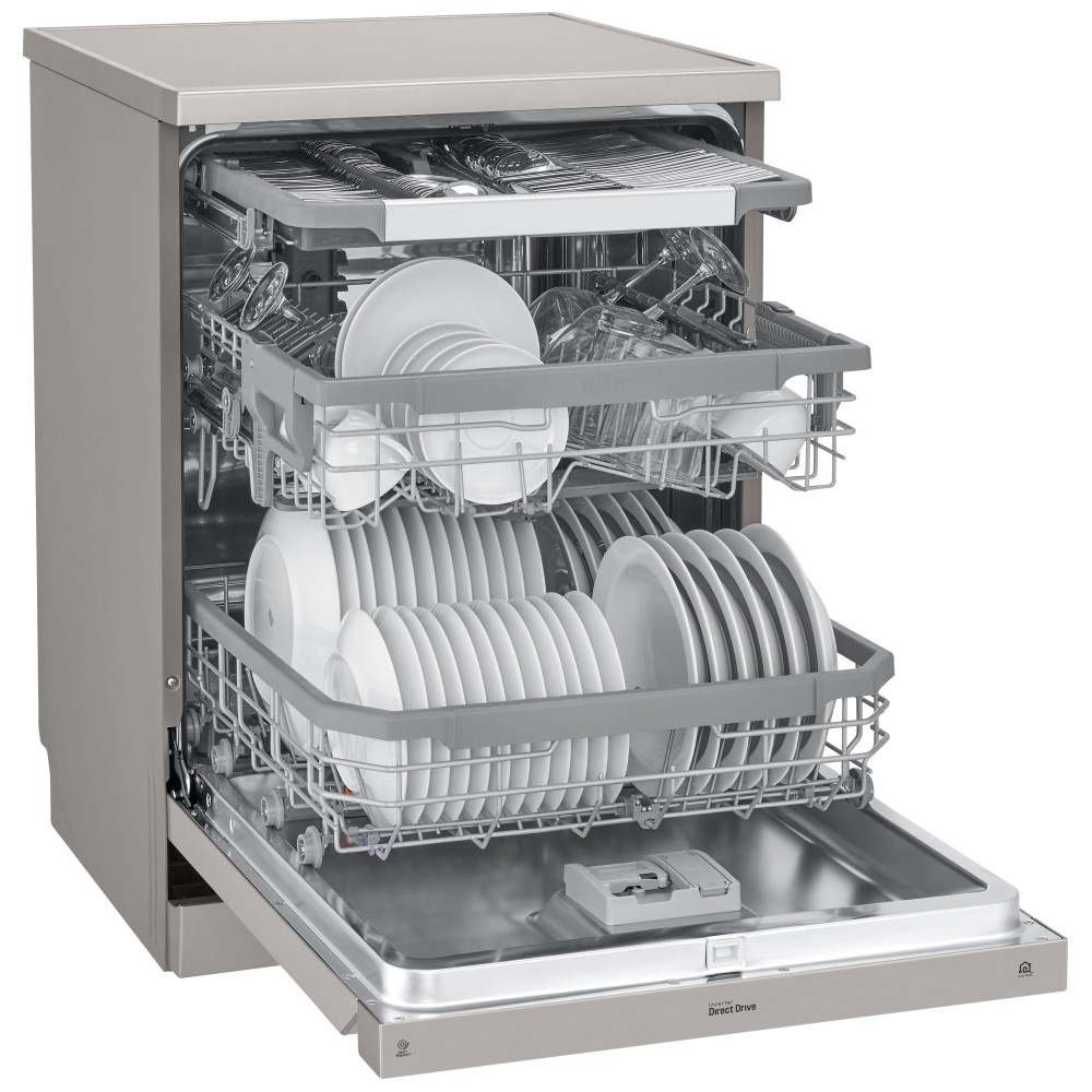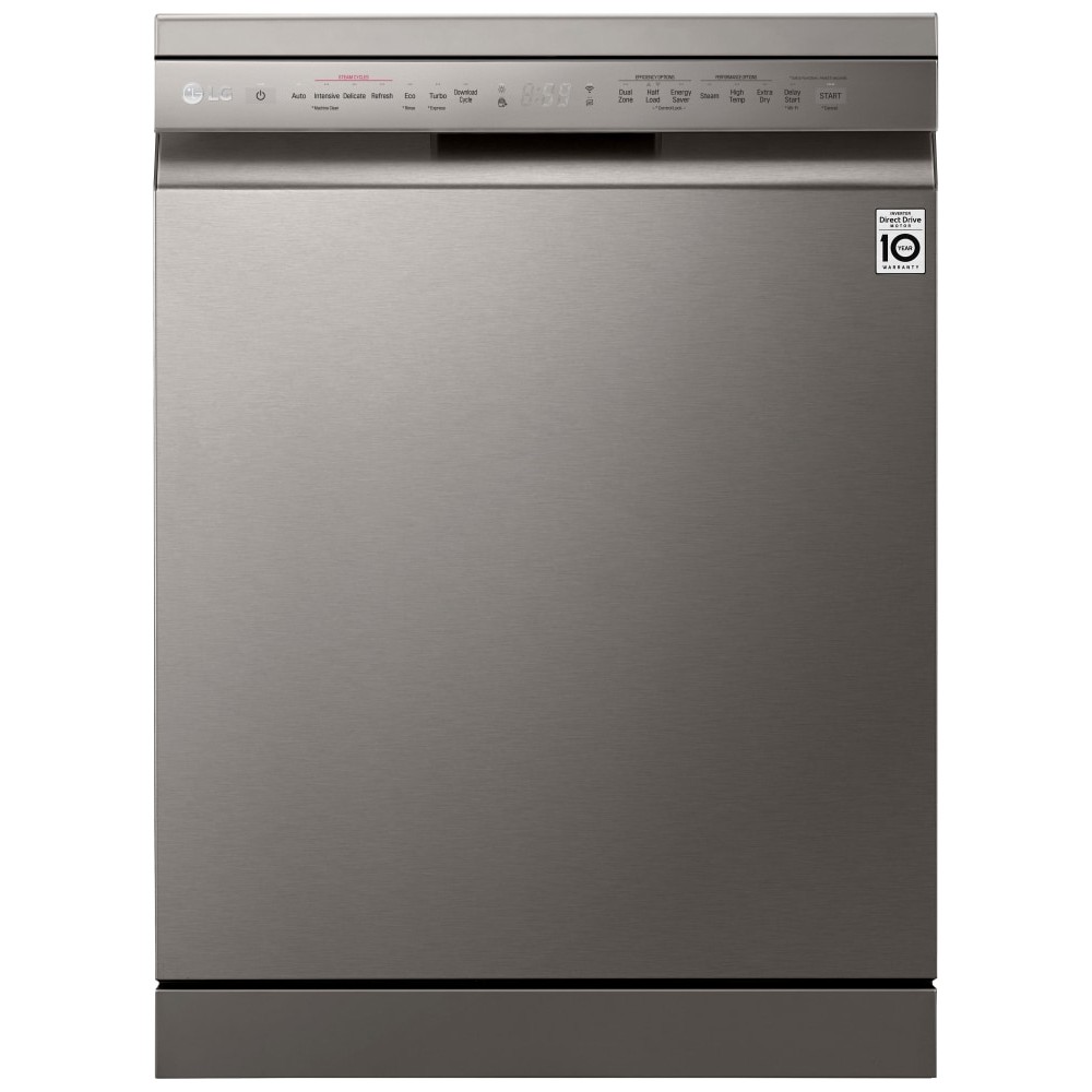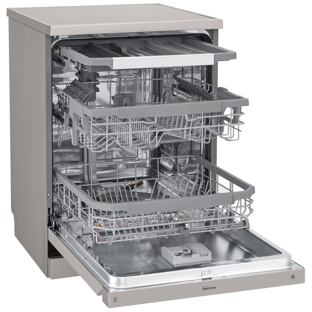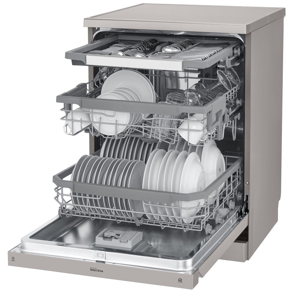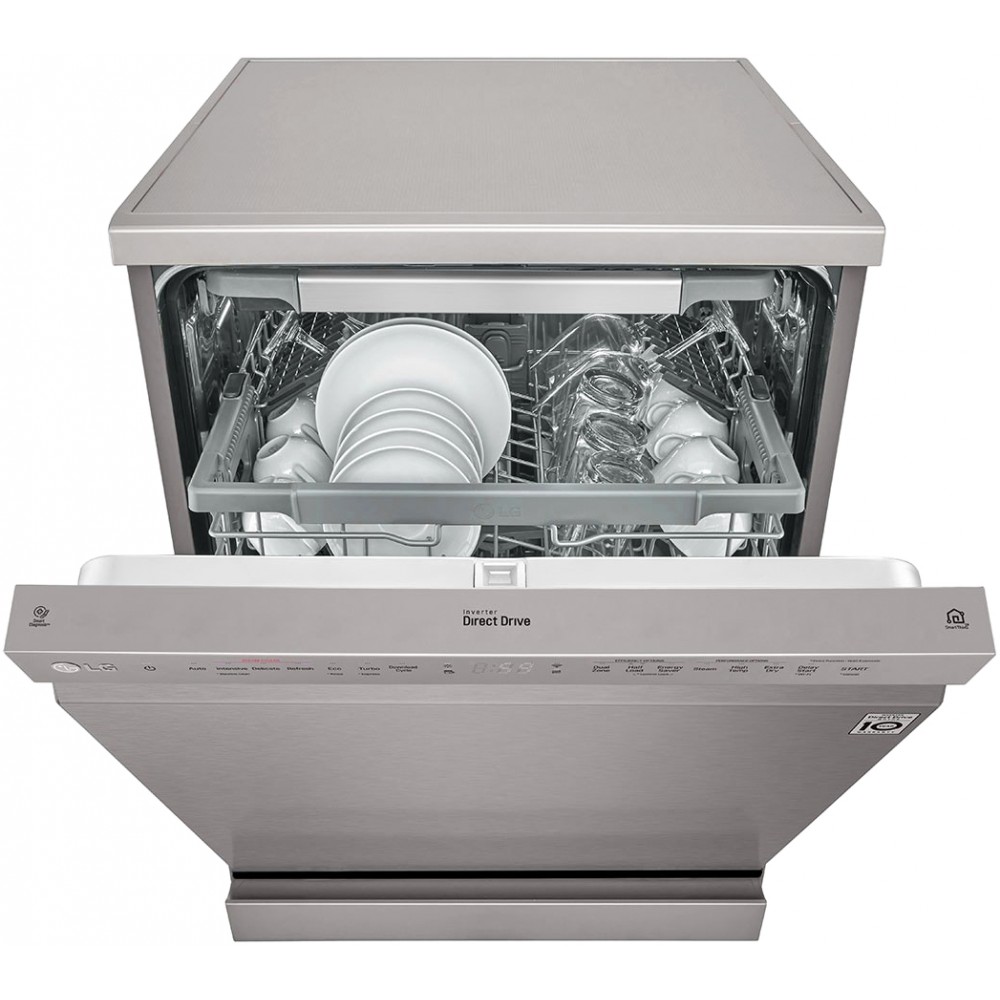 - تکنولوژی TrueSteam برای شستشو و خشک کردن کامل ظروف قابلیت Dual Zone برای شستشوی ظروف ظریف و ظروف بزرگ به طور هم زمان دارای نگهدارنده مخصوص لیوان های پایه دار (Stemware Holder) دارای 3 بازوی آبپاش (Top, Upper, Lower Spray Arms) سیستم Smart Diagnosis برای عیب یابی هوشمند سیستم Aqua-Stop برای جلوگیری از نشت آب برنامه شستشوی Machine Clean برای شستشو و تمیز کردن خودکار داخل ماشین ظرفشویی سیستم Smart Rack Plus (Smart Rack+) برای تنظیم سبدهای طبقه اول و دوم با توجه به نیاز خود دارای موتور Inverter Direct Drive با طول عمر بالا و صرفه جویی در مصرف انرژی و زمان هنگام شستشو قابلیت Extra Dry برای خشک کردن بهتر ظروف طراحی کاملا مینیمال برای هماهنگی هر چه بهتر با آشپزخانه شما سیستم تنظیم شدت جریان آب بین سبدها و طبقات مختلف (Vario Washing System) استفاده از مواد ضد باکتری در ساخت برخی از اجزا ماشین ظرفشویی (Anti-Bacterial Treatment) قابلیت تنظیم ارتفاع طبقات یا سبد ها در 3 سطح مختلف پشتیبانی از اینترنت اشیا (IoT) برای مدیریت و کنترل ماشین ظرفشویی از راه دور تکنولوژی QuadWash برای شستشوی بهتر ظروف با استفاده از بازوی آبپاش 4 پره پشتیبانی از برنامه LG ThinQ برای کنترل و مدیریت ماشین ظرفشویی از طریق موبایل (مخصوص موبایل های اندرویدی و iOS) قابلیت High temp برای شستشو با آب داغ دارای صفحه نمایش سگمنتی از نوع میکرو ال ای دی (Micro LED) سیستم Water Softening (Water Softner) برای تنظیم میزان سختی آب سیستم EasyRack Plus برای تنظیم طبقات یا سبد های ماشین ظرفشویی قابلیت Energy Saver برای صرفه جویی در مصرف انرژی قابلیت Adjustable Leg برای تنظیم پایه ها تا 30 میلیمتر دارای 4 نوار نویزگیر (Noise Strip) با قابلیت نصب برای کاهش انتقال لرزش و صدای ماشین ظرفشویی دارای Wi-Fi برای اتصال به شبکه و اینترنت کنترل کاملا الکترونیکی (Fully Electronic Control) قابلیت Control Lock برای قفل کردن پنل کنترلی ماشین ظرفشویی سیستم تشخیص میزان کثیفی آب و ظروف (SenseClean Wash System) تضمین عملکرد و کارایی موتور Inverter Direct Drive تا 10 سال توسط ال جی قابلیت Half Load برای شستشوی ظروف با نصف ظرفیت مجهز به قابلیت Delay Start برای شروع شستشو با تاخیر قابلیت Machine Clean Reminder جهت یادآوری تمیز کردن دستگاه از طریق برنامه LG ThinQ