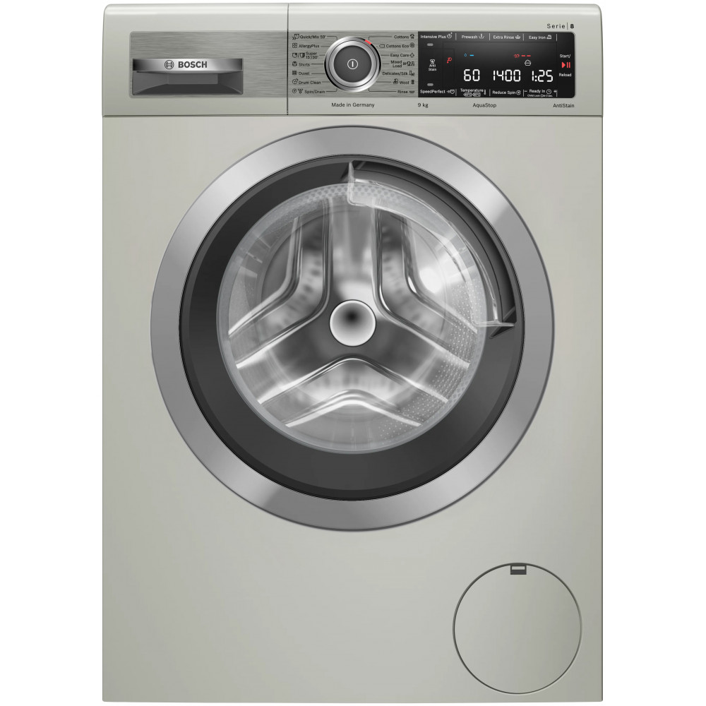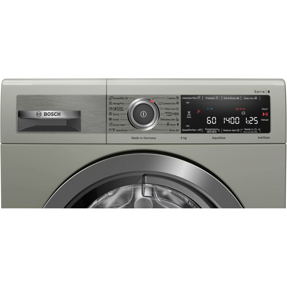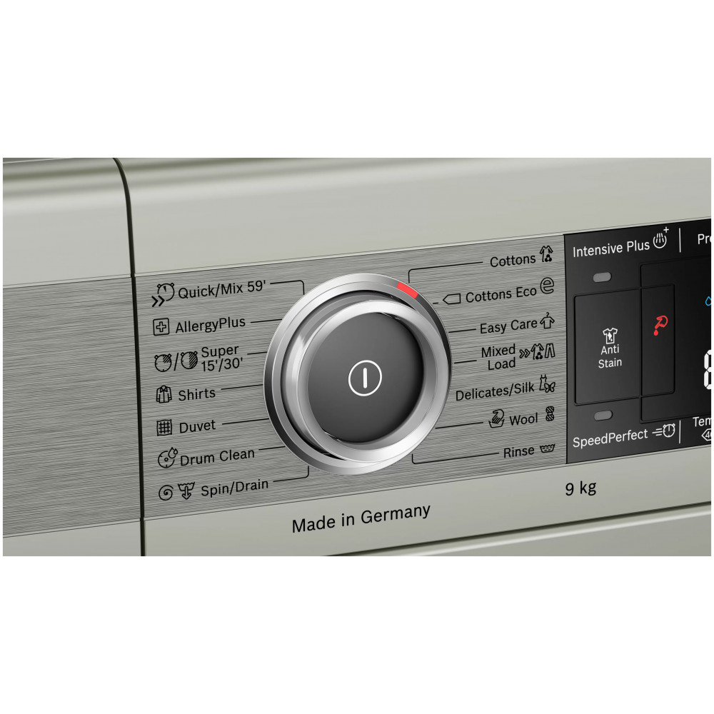 ماشین لباسشویی سری 8 بوش WAV28MX0ME دارای 14 برنامه شستوشو است و شما میتوانید بسته به نیاز خود برنامه مناسب را انتخاب نمایید. از جمله برنامههای آن میتوان به برنامه AllergyPlus اشاره نمود که در آن از آب با دمای بالا استفاده میشود تا شستوشویی کاملاً بهداشتی را ارائه دهد. به گفته بوش برنامه مذکور میتواند تا 99.99% از باکتریها و ذرات آلرژیزا را از بین ببرد. همچنین از برنامه Duvet مخصوص شستوشوی لحاف و پتو و اقلام حجیم است و با فشار آب زیاد و چرخش ملایم شستوشو را انجام میدهد. با انتخاب برنامه Drum Clean در این محصول محفظه داخلی دیگ لباسشویی به صورت خودکار شسته میشود تا باکتریهای به جا مانده در آن از بین بروند. ممکن است براتون پیش بیاید که فراموش کرده باشید لباسی داخل دیگ بگذارید اصلاً نگران نباشید! با داشتن قابلیت Reload این مشکل برایتان حل شده است. قابلیت بارگذاری مجدد یا Reload به شما این امکان را میدهد به راحتی در طول چرخههای شستوشو لباس کم یا اضافه کنید، سپس شستوشو را ادامه دهید. برنامه Shirts مخصوص بلوز و پیراهنها است و طوری تنظیم میشود که بعدا نیاز کمتری به اتوکشی داشته باشند و با آب سرد تا 60 درجه سانتیگراد شسته میشوند. برنامه Wool مخصوص لباسهای پشمی و بافتنی است و با چرخش ملایم دیگ بافت و لطافت لباس تغییری نمیکند و باعث کشیدگی پارچه نمیشود. برنامه Rinse جهت آبکشی لباسها بدون استفاده از مواد شوینده به کار میرود. این برنامه معمولا شامل چند مرحله آبکشی و در پایان یک مرحله چرخش برای خارج کردن آب اضافی لباسها است. برنامه Mixed Load برای شستوشوی انواع پارچههای مختلف به صورت همزمان مانند پنبه، الیاف مصنوعی طراحی شده است و تعادلی میان دما و سرعت چرخش ایجاد میکند تا به بافتهای گوناگون آسیبی نرسد. و همچنین برنامه Easy Care مخصوص لباسهای با الیاف ترکیبی و مصنوعی است و با چرخش ملایم دیگ باعث کمتر چروک شدن لباسها میشود. برنامه 'Super 15'/30 برای شستوشوی سریع لباسهای کمچرک طراحی شده است و بسته به انتخاب در 15 یا 30 دقیقه شستوشو را کامل انجام میدهد. برنامه Cottons مخصوص پارچههای نخی و پنبهای مانند ملحفه و حوله و لباسهای روزمره بوده و از دمای بالاتر و چرخش قویتر برای شستوشوی عمیق استفاده میکند. برنامه Cotton Eco مشابه برنامه Cottons است اما با مصرف کمتر آب و انرژی و مدت زمان طولانیتر، شستوشویی مقرون بهصرفه ارائه میدهد. برنامه Spin/Darin فقط برای تخلیه آب و (Darin) یا آبگیری آب و خشک کردن سریع (Spin) لباسها است بدون انجام مرحله شستوشو و آبکشی. در آخر برنامه 'Quick/Mix 59 برای شستوشوی سریع و ترکیبی لباسها در حدود 59 دقیقه طراحی شده است. این برنامه مناسب لباسهای روزمره با میزان چرک معمولی است و تعادلی میان سرعت، مصرف انرژی و کیفیت شستوشو برقرار میکند. برای پارچههای حساس و ظریف مانند ابریشم، تور، ساتن و لباسهای مجلسی میتوانید از برنامه Delicates/Silk استفاده کنید. حرکات نرم دیگ و تنظیم دقیق دما از آسیب دیدن الیاف جلگیری کرده و لطافت طبیعی پارچه را حفظ میکند.