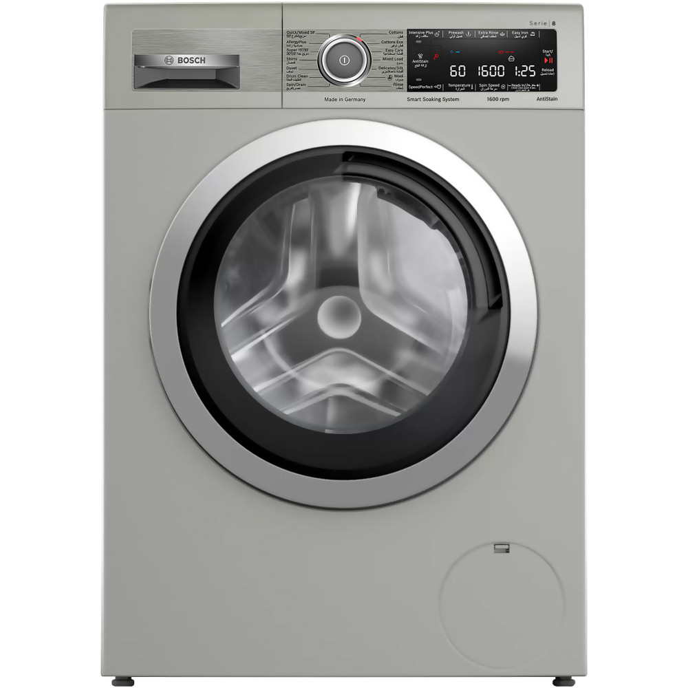 - دارای چراغ روشنایی داخل دیگ Drum Interior Light) Interior Drum Light) قابلیت Reload برای اضافه کردن لباس حتی بعد از شروع شستشو قابلیت Spin برای تنظیم سرعت چرخش دیگ به صورت دستی دارای سنسور تشخیص میزان لباس ها (LoadSensor) قابلیت Extra Rinse برای اضافه کردن مرحله آبکشی به برنامه شستشو صفحه نمایش بزرگ از نوع LED طراحی ضد لرزش (AntiVibration Design) برای کاهش لرزش و صدای لباسشویی هنگام کار سیستم 4D Wash برای اسپری آب و شستشوی کامل تر لباس ها قابلیت Temperature برای تنظیم دمای آب برنامه شستشو به صورت دستی سیستم Automatic Load Adjustment برای تنظیم میزان مصرف آب و انرژی نسبت به حجم لباس ها دارای دیگ شستشو از جنس استیل ضد زنگ سیستم AquaStop برای جلوگیری از نشت آب با گارانتی توسط بوش دارای کابل برق به طول 160 سانتی متر دارای لوله تخلیه آب به طول 150 سانتی متر سیستم Unbalanced Load Detection برای تشخیص توزیع نامناسب لباس ها در دیگ و توقف شستشو در صورت نیاز دارای موتور EcoSilence Drive با صدای کم، راندمان و طول عمر بالا و صرفه جویی در مصرف انرژی دارای سنسور تشخیص میزان کثیفی آب و لباس ها (AquaSensor) سیستم تشخیص کف (Foam Detection System) برای از بین بردن کف باقیمانده نمایش حداکثر وزن البسه قابل شستشو برای برنامه شستشوی انتخاب شده دیگ شستشو با حجم 66 لیتر یا ظرفیت XXL استفاده از آب سرد بعنوان ورودی برنامه Drum Clean مخصوص شستشوی دیگ ماشین لباسشویی برنامه AllergyPlus برای شستشوی کاملا بهداشتی و از بین بردن باکتری ها و آلرژی ها تا 99.99% قابلیت Ready in برای شروع شستشو با تاخیر و تنظیم زمان پایان شستشو از 1 تا 24 ساعت دارای محفظه مواد شوینده تقسیم بندی شده مناسب استفاده از مواد شوینده مایع (Divider for Liquid Detergent) قابلیت AntiStain برای انتخاب نوع لکه و از بین بردن آن هنگام شستشوی لباس ها قابلیت Child Lock برای قفل کردن پنل کنترلی و برنامه های ماشین لباسشویی قابلیت Prewash برای خیس کردن لباس ها پیش از شروع برنامه شستشو سیستم لکه بری (AntiStain System) برای شستشو و از بین بردن 4 نوع لکه مختلف با توجه به انتخاب کاربر قابلیت Pre-Treatment برای انتخاب قابلیت Pre-Wash یا Pre-Soaking سرعت چرخش 1600 دور در دقیقه (1600 rpm) قابلیت SpeedPerfect برای کاهش زمان برخی از برنامه های شستشو حداکثر تا 65% استفاده از مواد عایق صدا (Sound insulation) در ساخت ماشین لباسشویی قابلیت Intensive Plus برای شستشوی لباس های معمولی و بسیار کثیف قابلیت Easy Iron با ویژگی AntiWrinkle برای کاهش چین خوردگی لباس ها تا 50% پس از شستشو دارای دیگ شستشو VarioDrum با طراحی برجسته برای جلوگیری از آسیب رسیدن به لباس ها تضمین عملکرد و کارایی موتور EcoSilence Drive تا 10 سال توسط بوش دارای لوله ورودی آب به طول 150 سانتی متر دارای بوق (Buzzer) برای اعلام پایان برنامه شستشو