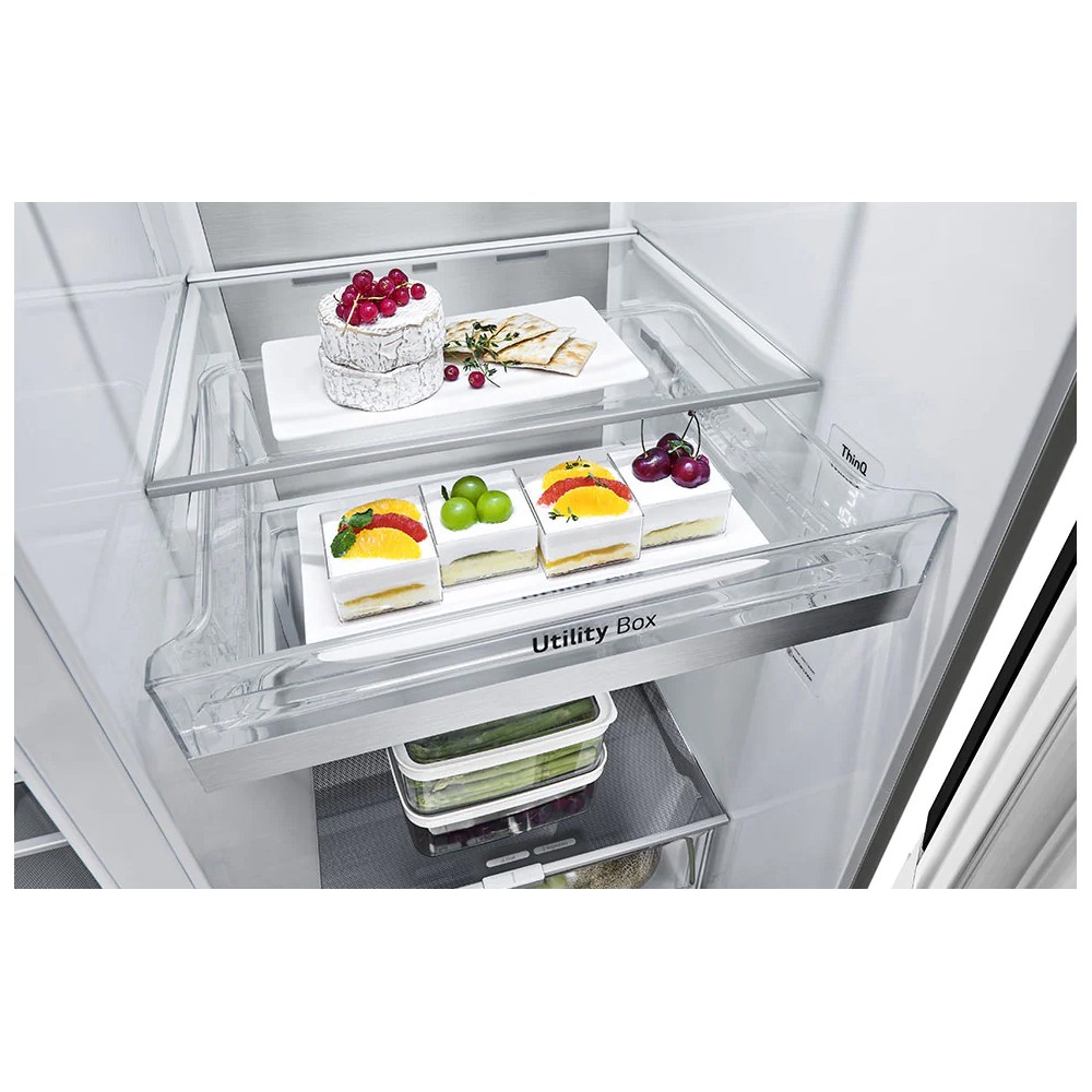 - طبقات یخچال و فریزر از جنس شیشه حرارت دیده سیستم تهویه هوای Multi Air Flow برای توزیع هوای سرد یکنواخت در کل یخچال و فریزر از طریق دریچه های هوای متعدد قابلیت Child Lock (Lock) برای قفل کردن پنل کنترلی یخچال پشتیبانی از اسپیکر هوشمند Google Home برای مدیریت و کنترل یخچال (ممکن است برای تمام مناطق جغرافیایی در دسترس نباشد) دارای صفحه فلزی مخصوص (Metal Fresh) در قسمت داخلی یخچال برای ثابت نگهداشتن و حفظ سرما پشتیبانی از برنامه LG ThinQ برای کنترل و مدیریت یخچال فریزر از طریق موبایل (مخصوص موبایل های اندرویدی و iOS) محل قرار گیری پنل کنترلی در داخل یخچال سیستم بدون برفک (No Frost) قابلیت درب در درب (Door-in-Door) برای دسترسی به برخی مواد غذایی بدون باز کردن درب اصلی یخچال و جلوگیری از هدر رفت سرما قابلیت Fresh Balancer برای تنظیم رطوبت در کشوی مخصوص سبزی و میوه جهت افزایش ماندگاری آنها تکنولوژی LINEAR Cooling (LinearCooling) جهت حفظ و کنترل دقیق دما در داخل یخچال و فریزر با نوسان 0.5 درجه سانتیگراد تکنولوژی Bio Shield (Gasket) و لاستیک ضد باکتری دور درب جهت افزایش عمر یخچال قابلیت Self Care برای فعال کردن دستی نور UV و پاکسازی دهانه آبریز پشتیبانی از دستیار صوتی گوگل (Google Assistant) (ممکن است برای تمام مناطق جغرافیایی در دسترس نباشد) استفاده از گاز R600a برای ایجاد سرمایش و سازگاری با محیط زیست قابلیت Express Freeze برای انجماد سریع در فریزر و یخ ساز کشوی Freezing Zone برای نگهداری از مواد غذایی گوشتی و ماندگاری طولانی مدت آنها بدون یخ زدن تضمین عملکرد و کارایی موتور Inverter Linear Compressor تا 10 سال توسط ال جی مناسب برای مناطق جغرافیایی با آب و هوای گرمسیری (Tropical) یا T سیستم عیب یاب هوشمند (Smart Diagnosis) برای عیب یابی راحت تر طراحی صاف و شیک (UltraSleek Door) جهت هماهنگی بیشتر با کابینت و دکوراسیون آشپزخانه قابلیت Door Alarm برای اطلاع دادن در صورت باز ماندن درب یخچال دستگیره مخفی (Pocket Handle) قابلیت اینستاویو (InstaView) برای مشاهده داخل یخچال بدون باز کردن درب یخچال بوگیر یا Deodorizer جهت جلوگیری از پخش بوی مواد غذایی در یخچال تکنولوژی +Door Cooling برای سرمایش سریع تر مواد غذایی موجود در درب یخچال سیستم یخ ریز با قابلیت تولید یخ حبه ای (مکعبی) و یخ خرد سیستم یخ ساز اتوماتیک با طراحی باریک برای اشغال فضای کمتر (SpacePlus Ice System) استفاده از حداکثر فضا برای ذخیره مواد غذایی بیشتر (Large Capacity) پشتیبانی از دستیار صوتی الکسا (Amazon Alexa) (ممکن است برای تمام مناطق جغرافیایی در دسترس نباشد) تکنولوژی UVnano برای از بین بردن باکتریهای دهانه آبریز تا 99.99% با استفاده از نور فرابنفش کشوی Fresh Balancer مخصوص نگهداری میوه و سبزیجات تکنولوژی +Hygiene FRESH با فیلتر 5 لایه برای از بین بردن باکتری ها تا 99.999% و بوی بد مواد غذایی و تصفیه هوای داخلی یخچال کشوی Utility Box مناسب نگهداری از لبنیات و مواد غذایی کشوی Fresh Zone مخصوص نگهداری میوه و سبزیجات