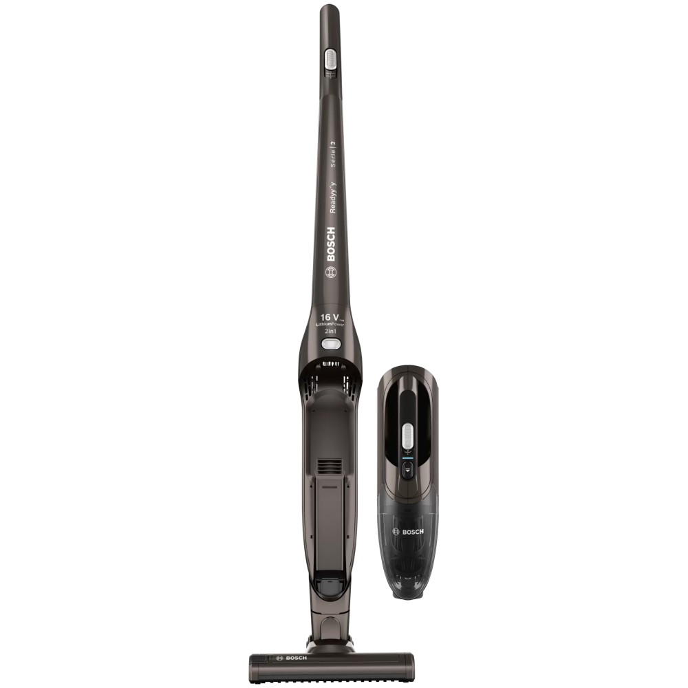 جارو شارژی بوش BCHF2MX16 رنگ نوک مدادی، یکی از جارو شارژی های 2019 و سری 2 بوش می باشد. این محصول به جارو شارژی ایستاده یا عصایی نیز معروف است و در بازار با عنوان جارو شارژی بوش F2MX16 یا BCHF2 نیز معرفی می شود که البته مدل کامل و دقیق محصول فوق نیست. محصول پیش روی شما با مدل کامل BCHF2MX16 وارد کشور می شود. پس در زمان خرید باید به مدل کامل و دقیق محصول دقت کنید تا مطمئن شوید با مشخصات و توضیحاتی که در این صفحه مشاهده می کنید همخوانی داشته باشد. این محصول با وجود باتری داخلی که دارد، نیاز نیست در هنگام کار به پریز برق متصل باشد و به عبارتی شعاع عملکرد نامحدودی دارد. محصول مذکور از خانواده جارو شارژی های بوش Readyy’y می باشد که یک جارو شارژی دو کاره یا 2 در 1 به حساب می آید. به این ترتیب امکان استفاده به صورت ایستاده و یا حتی دستی و کاملا مجزا را دارد تا حتی بتوانید مکان هایی مانند داخل خودرو را به راحتی جارو بکشید. لازم به ذکر است که محصول پیش روی شما برای جمع آوری زباله های خشک طراحی شده و نمی توانید از آن برای جمع آوری مایعات استفاده کنید. جارو شارژی قابل حمل یا پرتابل بوش BCHF2MX16 دارای موتور کوچک ولی قدرتمند است. این موتور با کیفیت و قدرتمند باعث شده تا این محصول به عنوان یک جارو شارژی کوچک، عملکرد بسیار خوبی در جمع کردن زباله ها داشته باشد. محصول فوق دارای باتری لیتیوم یونی (Lithium-Ion) یا بطور خلاصه Li-Ion مجهز است که وزن کم و قدرت فوق العاده ای دارد تا بتوانید از حداکثر قدرت موتور این جارو شارژی استفاده کنید. ممکن است این جارو شارژی با عنوان 16Vmax نیز معرفی شود که البته مدل این محصول نیست و صرفا برای نشان دادن حداکثر ظرفیت باتری این محصول یعنی 16 ولت به کار برده شده است. گرچه باید به این موضوع هم توجه داشته باشید که ظرفیت اصلی باتری این جارو شارژی در واقع 16 ولت نیست و این عدد توسط بوش اعلام شده و تبلیغاتی می باشد. جارو شارژی پیش روی شما به باتری 14.4 ولت و 2 آمپر ساعت (2000 میلی آمپر ساعت) مجهز است و توان 28.8 وات دارد. توان این محصول قابل مقایسه با جاروبرقی های معمولی قابل مقایسه نیست، اما می توان گفت برای یک جارو شارژی کوچک و دستی بسیار مناسب بوده و نیاز شما را برطرف می سازد. باتری این جارو شارژی 14.4 ولت بوش در مدت 5 ساعت بطور کامل شارژ می شود. شما با یکبار شارژ کامل این محصول، می توانید حدود 40 دقیقه از آن استفاده کنید. البته لازم به ذکر است که تنها در صورتی که از حداکثر توان و حالت ایستاده این جارو شارژی استفاده نکنید، می توانید از محصول فوق حداکثر به مدت 40 دقیقه بهره ببرید. جارو شارژی مخزن دار بوش Readyy’y BCHF2MX16 دارای فیلتر های مخصوصی در قسمت مخزن است که باعث می شود کمترین آسیب به موتور برسد و نیاز کمتری به نظافت و نگهداری از آن داشته باشید. این محصول در واقع مجهز به فیلتر سه مرحله ای یا Triple Filtration می باشد که شامل 3 فیلتر مختلف است و از ورود گرد و غبار به داخل موتور جلوگیری می کند. این فیلتر ها در قسمت مخزن جارو شارژی مذکور قرار دارند و به راحتی قابل نظافت یا شستشو می باشند. البته باید توجه کنید که حتما قبل از استفاده مجدد از این محصول، فیلتر های آن را کاملا خشک کنید تا آسیبی به موتور وارد نشود. مخزن این جارو شارژی از نوع کوچک (L) است و ظرفیت 0.4 لیتر دارد. مخزن جارو شارژی 0.4 لیتری Bosch BCHF2MX16 طوری طراحی شده که به آسانی بتوانید آن را خارج کرده و نظافت نمایید. بوش این جارو شارژی را به سیستم High Airflow مجهز کرده است. این سیستم به کمک فشار هوا و نیروی گریز از مرکز، باعث جدا شدن ذرات ریز و درشت گرد و خاک از یکدیگر شده، و به تخلیه آسان تر مخزن نیز کمک می کند. این محصول به لطف سیستم جداسازی گرد و خاک، امکان استفاده طولانی تر از حداکثر قدرت مکش را برای شما فراهم می سازد. همانطور که گفته شد، محصول پیش روی شما از جمله جارو شارژی های 2in1 یا دو کاره بوش است. به عبارت دیگر، جارو شارژی BCHF2MX16 دارای یک بدنه اصلی و کوچک است که به راحتی قابل حمل بوده و برای نظافت انواع مکان ها، از جم