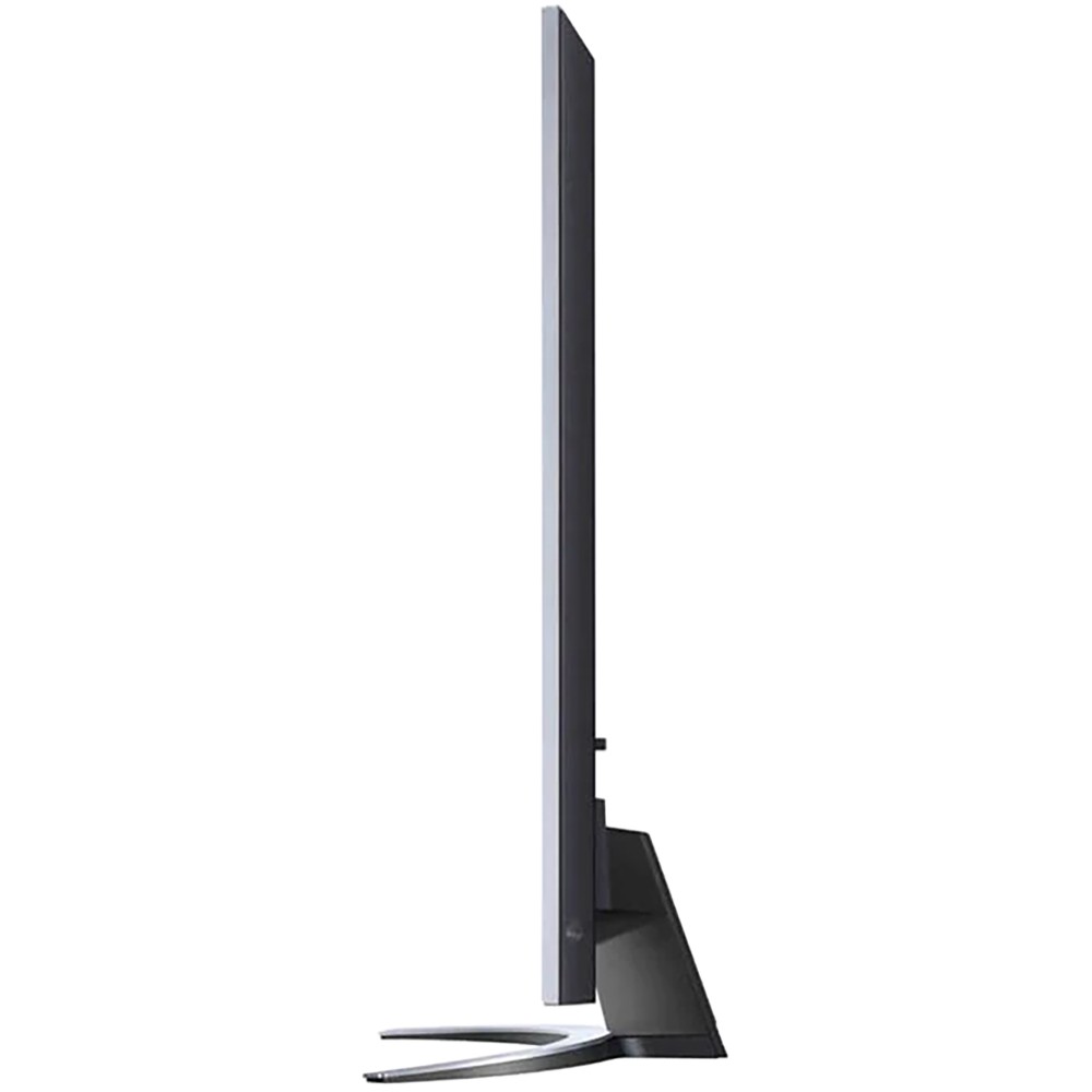 زبان طراحی تلویزیون 55 اینچ ال جی QNED87 با نام 3 Sided Cinema Screen معرفی شده است که از ویژگی های آن، حاشیه های بسیار باریک در 3 طرف صفحه نمایش می باشد. این نوع طراحی باعث می شود تماشای تلویزیون برای شما بسیار لذت بخش تر و آسان تر شده و نگاه شما درگیر حاشیه های اطراف صفحه نمایش نشود. این تلویزیون دارای حاشیه های مشکی و نقره ای بوده و می توانید به کمک پیچ پایه هلالی اش را به آن متصل کرده و آن را روی میز قرار دهید. همچنین می توانید سیم های مربوط به تلویزیون را در پشت پایه اش مخفی کرده و از شلوغ شدن اطراف آن جلوگیری نمایید. ضخامت بدنه این تلویزیون 4.55 سانتیمتر و نسبتا کم می باشد. در صورتی که می خواهید تلویزیون خود را روی دیوار نصب کنید، می توانید از پایه های دیواری باریک آن برای این کار استفاده نمایید. ال جی جعبه این محصول را با نام Eco-Packaging طراحی کرده که آسیب بسیار کمی به محیط زیست وارد کرده و قابل بازیافت می باشد.