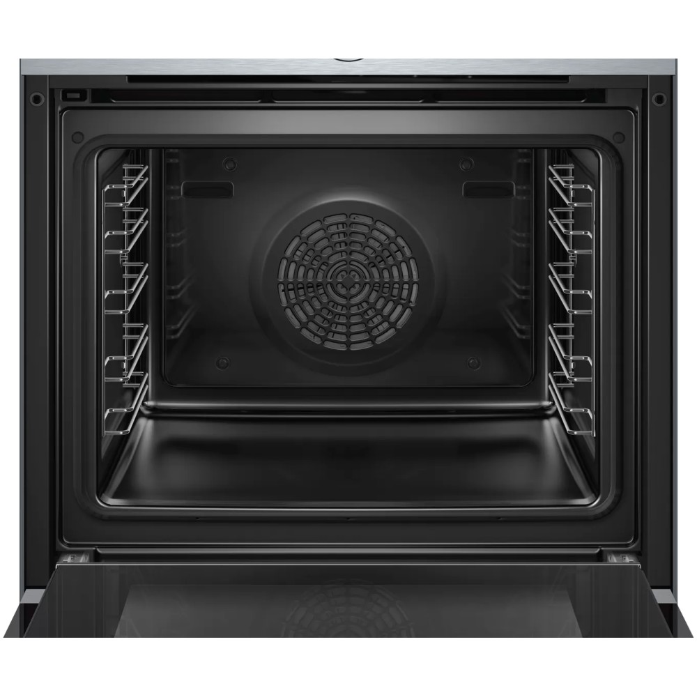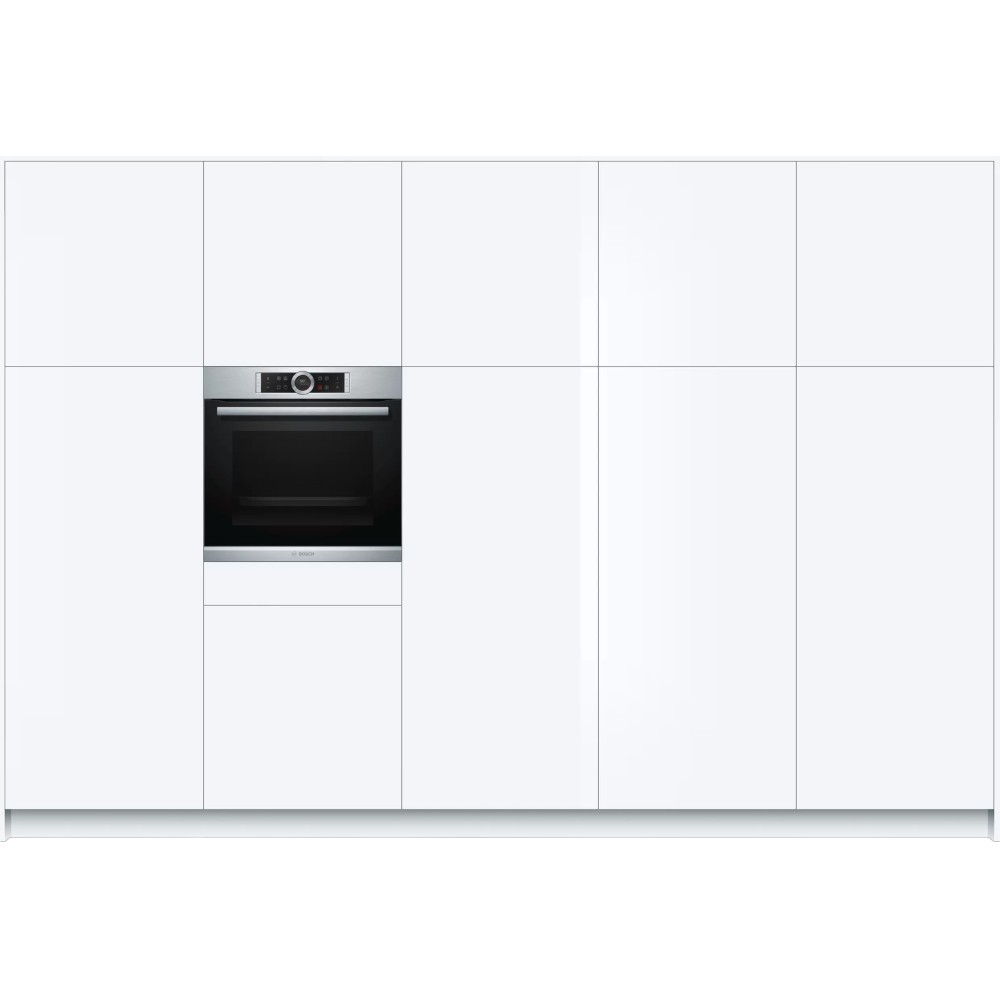 فر توکار بوش HBG632BS1 رنگ اینوکس از فر های توکار تولید شده توسط بوش در سال 2017 می باشد. این محصول ممکن است به عنوان فر توکار بوش 632 و فر توکار بوش HBG632 نیز در بازار ممکن است اما لازم است بدانید که مدل کامل آن فر توکار بوش HBG632BS1 بوده و مونتاژ کشور روسیه در بازار ما موجود شده است. این محصول گرمای مورد نیاز خود را از طریق برق تامین می کند و قادر به پخت غذا و بسیاری امکانات دیگر می باشد. به این محصول آون یا اون نیز گفته می شود که به دلیل قابلیت نصب آن در داخل کابینت، به عنوان فر تو کار یا Built-in Oven نیز شناخته می شود. فر توکار بوش 632 دارای ظرفیت 71 لیتر است که می تواند پاسخگوی تمام نیاز های آشپزی شما باشد و محدودیتی در استفاده از فر خود نداشته باشید. همچنین به شما امکان تنظیم دما از 30 تا 300 درجه سانتیگراد را می دهد و می توانید مطابق با مواد غذایی و دستور پخت مورد نظر تان، درجه حرارت آن را انتخاب نمایید. شما همچنین می توانید با فر 71 لیتری بوش HBG632BS1 به 8 حالت مختلف برای ایجاد گرما در فر دسترسی داشته باشید که از طریق آن ها می توانید طبخ هر نوع غذایی را به آسانی انجام دهید. این محصول دارای المنت در بالا، پایین و قسمت پشتی خود بوده و همچنین از قابلیت کانوکشن (Convection) برخوردار است و می توانید به صورت ترکیبی از آن ها نیز استفاده نمایید. برای انتخاب حالت عملکرد مناسب برای هر نوع غذایی می توانید به دفترچه راهنمای این محصول مراجعه کرده که به شما اطلاعات دقیق مختص به آن غذا را می دهد. حداکثر توان مصرفی این فر توکار برابر با 3600 وات است و دارای یک فیوز 16 آمپری است تا محصول را در برابر نوسانات برق مقاوم کرده و به قطعات داخلی آن آسیبی وارد نشود. همان طور که بالا تر گفته شد، فر توکار 3600 واتی بوش HBG632BS1 دارای 8 حالت عملکرد مختلف است که در ادامه به معرفی آن ها می پردازیم. حالت Top/Bottom Heating به کار رفته در این محصول به صورت همزمان المنت بالا و پایین را روشن کرده و برای پخت و پز و برشته کردن غذا ها مناسب است. همچنین در صورتی که پخت غذا را انجام داده اید و فقط می خواهید روی آن را برشته کنید و یا پنیر روی غذا را آب کنید، می توانید آن را روی حالت Grill, Large Area قرار دهید و از طریق المنت های بالا (گریل) این کار را انجام دهید. البته اگر می خواهید به صورت همزمان حرارت را از بالا و هم از پشت محصول داشته باشید، می توانید از حالت Hot Air Grilling آن استفاده کرده و گرمای مورد نیاز خود را از طریق خاموش و روشن کردن متناوب المنت گریل و همچنین کانوکشن تامین نمایید. به لطف حالت Defrosting موجود در این دستگاه می توانید به راحتی انواع مواد غذایی مانند مرغ، گوشت، سبزیجات و حتی میوه های یخ زده تان را یخ زدایی نمایید و به آشپزی کردن خود سرعت ببخشید. محصول یاد شده دارای حالت 4D Hot Air نیز بوده که مختص این دستگاه بوده و با توزیع هوای داغ به صورت یکنواخت در 4 طبقه خود، به شما این امکان را می دهد که شیرینی ها و یا دیگر مواد غذایی تان را در سینی هایی در 4 طبقه آن قرار دهید و به صورت برشته و کاملا پخته شده در اختیار داشته باشید. بوش این فر توکار را به حالت اکو (Eco) مجهز نموده است و از طریق حالت های Hot Air Eco و Top/Bottom Heating Eco می توانید هوای داغ ملایمی در اختیار داشته باشید و با صرفه جویی در مصرف انرژی به پخت و پز غذا های مورد علاقه تان بپردازید. البته باید این نکته را در نظر بگیرید که در هنگام استفاده از این حالت ها بهتر است درب فر را باز و بسته نکنید تا در روند پخت و پز اختلالی ایجاد نگردد. علاوه بر این حالت ها، حالتی به نام Pizza Setting نیز در این محصول وجود دارد که مخصوص پخت غذا هایی مانند پیتزا، لازانیا و هر غذایی که به حرارت از پایین بوده و حرارت مورد نیاز خود را از المنت پایین و پشتی فر تامین می نماید. از قابلیت های بیشتر این محصول می توان به Rapid Heating برای گرم کردن سریع فر قبل از شروع به پخت، قابلیت Temperature برای تنظیم دما و قابلیت Time-Setting Options برای تنظیم زمان پخت و پز اشاره کرد که آشپزی را بسیار آسان تر و لذت بخش تر می نماید