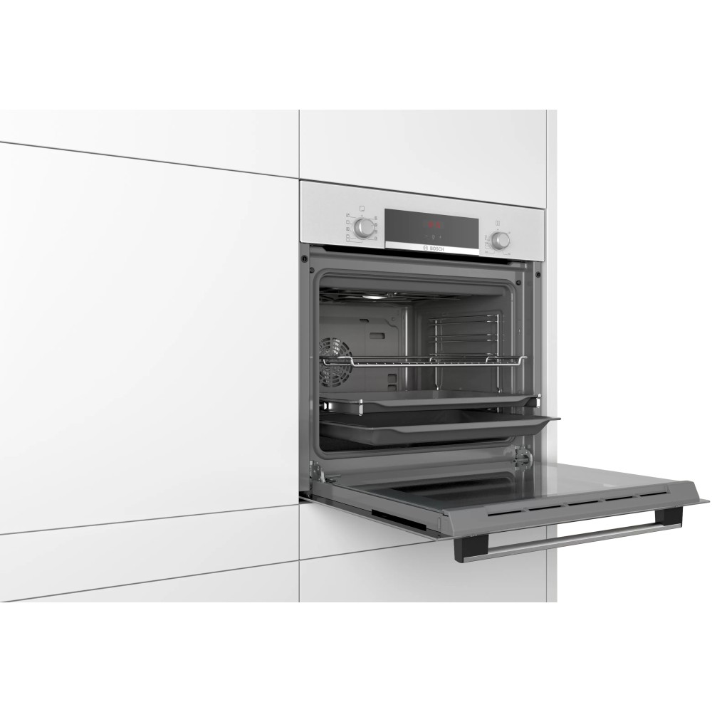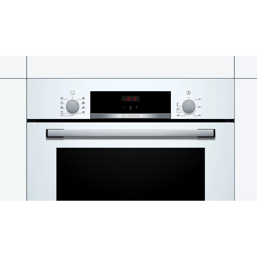 فر توکار بوش HBF534EW0Q یا HBF534 رنگ سفید از جمله فر های توکار سری 4 بوش می باشد. این محصول در واقع یکی از فر های توکار 2018 بوش است که به دلیل استقبال خوبی که از آن شد، تولید آن هنوز ادامه دارد. محصول پیش روی شما ممکن است در بازار به فر توکار بوش 534 نیز معروف باشد. البته مدل مذکور در واقع بیانگر مدل کامل این محصول نیست و ممکن است با محصولات مشابهی که با این عنوان عرضه می شوند تفاوت هایی داشته باشد. لازم به ذکر است که برخی فروشگاه ها به اشتباه از حرف O به جای صفر استفاده کرده و محصول فوق را با عنوان فر توکار بوش HBF534WOQ نیز معرفی می کنند که اشتباه است. از این رو حتما در هنگام خرید به مدل کامل فر توکار دقت کنید. این فر از نوع توکار است و داخل کابینت یا فضاهایی مشابه آن نصب می شود. به همین دلیل محصول فوق در بازار به فر توکار یا Built-in Oven معروف است. فر توکار پیش روی شما از نوع برقی است و از جریان الکتریکی یا همان برق شهر جهت تولید گرما استفاده می کند. متاسفانه قدرت و توان فر توکار برقی بوش HBF 534 EW0Q مشخص نیست، اما توان مصرفی آن برابر با 3300 وات می باشد. البته ممکن است برخی فروشگاه ها این محصول را با عنوان فر توکار 3300 وات بوش نیز معرفی کنند که کاملا اشتباه است. با توجه به توضیحات داده شده، باید گفت که نمی توانید قدرت یا توان محصول فوق را تنظیم کنید، اما امکان تنظیم دما بین 50 تا 275 درجه سانتیگراد وجود دارد. همچنین این محصول دارای المنت گریل است که امکان تنظیم در 3 سطح مختلف را دارد. محصول پیش روی شما برای استفاده خانگی و معمولی جهت پختن، سرخ کردن، برشته و گریل کردن انواع مواد غذایی بسیار مناسب است. همچنین از فر توکار HBF534EW0Q می توانید برای یخ زدایی و آب پز کردن انواع غذا ها و حتی کمپوت و یا خشک کردن انواع میوه و سبزیجات استفاده کنید. با این فر می توانید انواع کیک، نان، پیتزا و غذا های مختلف را بپزید. برای مشاهده لیست کامل غذا هایی که می توانید در این محصول بپزید، می توانید به سراغ بخش مشخصات محصول بروید. فر توکار 66 لیتری بوش مدل HBF534EW0Q مجهز به المنت های بالا و پایین، کانوکشن (Convection) و همچنین گریل (Grill) می باشد. این فر توکار دارای 8 حالت عملکرد مختلف است که برای پخت انواع غذا ها، از ترکیب سیستم های گرمایشی مذکور استفاده می کند. محصول پیش روی شما دارای حالت 3D Hot Air می باشد. در این حالت گرمایی که توسط المنت پشت تولید می شود، به وسیله فن به گردش در می آید. با وجود حالت مذکور، غذا ها در هر 3 طبقه کاملا یکنواخت پخته می شوند و شما نیاز نیست نگران این باشید که غذا را در کدام طبقه قرار دهید. این محصول دارای حالت Gentle Hot Air نیز می باشد که از همان روش پخت قبل استفاده می کند و البته نیازی به از پیش گرم کردن فر (Preheating) وجود ندارد. با این تفاوت که در حالت مذکور، دما روی یک طبقه متمرکز شده و غذا ملایم تر پخته می شود. این حالت باعث صرفه جویی در انرژی و هزینه ها می شود. فر توکار پیش روی شما دارای حالت Pizza Setting نیز می باشد که از المنت پایین و پشت برای پخت پیتزا یا غذا هایی که نیاز به گرمایش از کف دارند استفاده می کند. البته شما می توانید این فر را روی حالت Bottom Heating نیز تنظیم کنید و تا تنها از المنت پایین برای پخت غذا استفاده شود. حالت Top/Bottom Heating نیز در محصول فوق وجود دارد که از هر دو المنت بالا و پایین برای طبخ غذا های مورد نظر استفاده می کند. همانطور که قبلا گفته شد، این محصول یک المنت گریل بزرگ نیز دارد. با انتخاب حالت Grill, Large Area می توانید از این المنت استفاده کرده و سطح غذا ها را طلایی یا به اصطلاح آن ها را گریل کنید. بوش برای محصول فوق، حالت Circulated Air Grilling را نیز در نظر گرفته است. با انتخاب حالت مذکور، المنت گریل و فن بطور مداوم خاموش و روشن می شوند که برای پختن و برشته کردن غذا هایی مانند ماهی یا گوشت های بزرگ بسیار مناسب می باشد. همانطور که گفته شد این فر توکار قابلیت یخ زدایی نیز دارد که با انتخاب حالت Defrosting امکان پذیر است. یکی از قابلیت های اضافه ای که در محصول پیش روی شما قر
