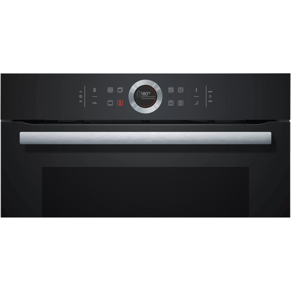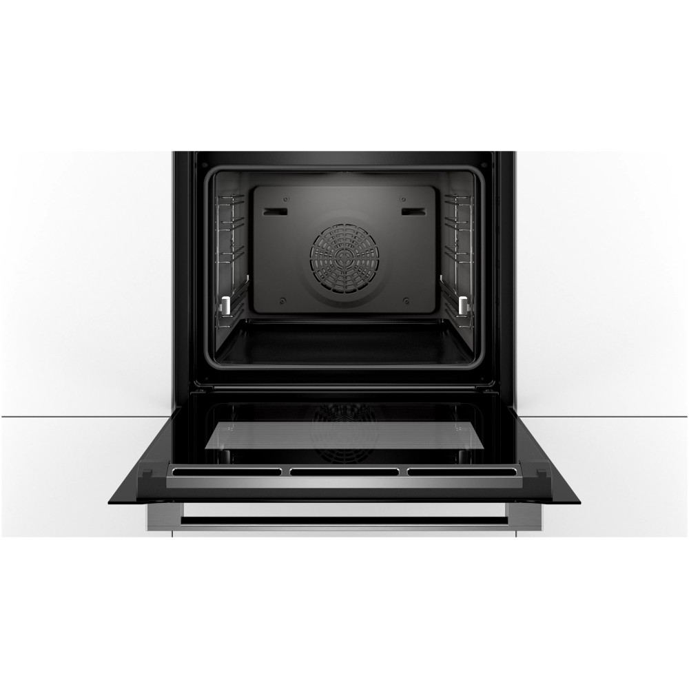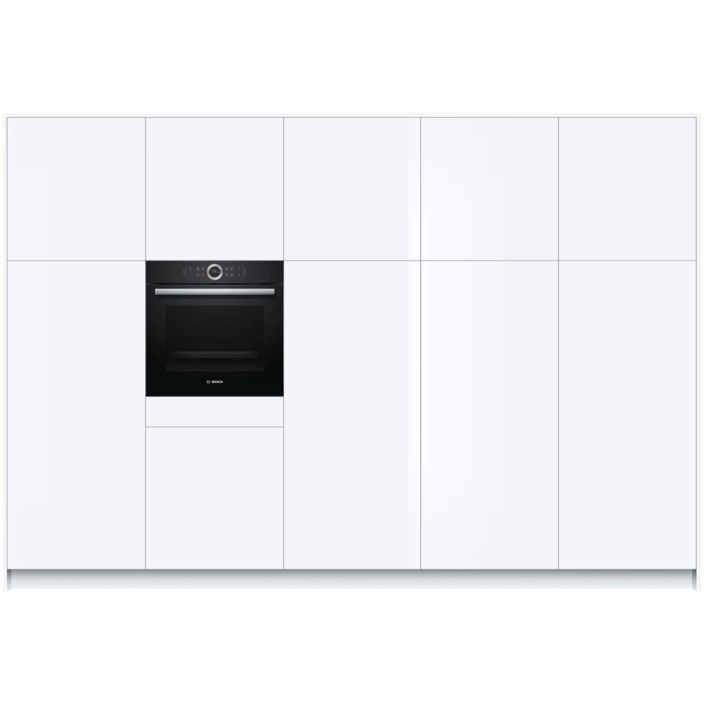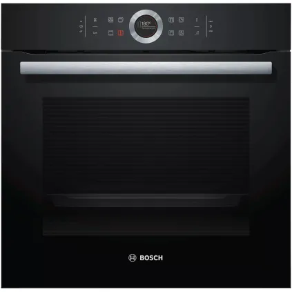 فر توکار بوش HBG655NB1 یا 655 رنگ مشکی یکی از فر توکار های 2018 و سری 8 بوش به حساب می آید. دقت کنید که این فرتوکار اولین بار در سال 2018 معرفی شد اما همچنان تولید و روانه بازار می شود. این محصول ممکن است در بازار با مدل HBG655 نیز معرفی شود اما مدل درست و دقیق آن HBG655NB1 می باشد. برخی از فروشگاه ها با توجه به کلمه انگلیسی Oven، به این مدل آون یا اون نیز می گویند اما عبارت درست تر آن Built-in Oven یا همان فر توکار است. متاسفانه فر مذکور قابلیت اتصال به شبکه و اینترنت را ندارد در نتیجه نمی توانید گوشی های هوشمند خود را به آن متصل کنید. این فر کاملا از نوع برقی است و قابلیت اتصال به گاز شهر را ندارد. شما می توانید این محصول را به کمک سیم برق 120 سانتیمتری که دارد به برق وصل کرده و از آن استفاده نمایید. به گفته بوش المنت گریل این مدل، توان مصرفی 2800 وات و کانوکشن آن نیز توان برق مصرفی 2200 وات دارد. این فر توکار برقی به طور کلی توان مصرفی 3600 وات دارد و به همین دلیل برخی از فروشگاه ها ممکن است به اشتباه آن را فر توکار 3600 وات بوش معرفی کنند که اشتباه است و مقدار گفته شده در واقع میزان برق مصرفی دستگاه می باشد. فر تو کار مذکور دارای ظرفیت 71 لیتر می باشد و شما می توانید ظروف غذای کوچک یا حتی بزرگ خود را به راحتی در درون آن قرار دهید. فر توکار 71 لیتر بوش HBG655NB1 مجهز به المنت (هیتر) بالا، المنت (هیتر) پایین، گریل (Grill) و کانوکشن (Convection) می باشد و توانایی پخت ترکیبی غذا را دارد. شما می توانید دمای این محصول را از 30 تا 300 درجه سانتیگراد تنظیم کرده و غذاهای متنوعی را در آن درست نمایید. فر پیش روی شما دارای 13 حالت عملکرد مختلف است در نتیجه شما می توانید با توجه به نوع غذا، حالت عملکرد مناسب را انتخاب کنید. پیشنهاد می کنیم برای انتخاب حالت عملکرد مناسب، دفترچه راهنمای محصول را مطالعه نمایید. در صورتی که می خواهید غذایی را به صورت هم زمان در چند طبقه (حداکثر 4 طبقه) درست کرده و نتیجه یکسانی را شاهد باشید بهتر است از حالت 4D Hot Air استفاده نمایید. حالت مذکور در واقع همان حالت کانوکشن می باشد که هوای گرم را به کمک فن و المنت پشت در این فر توزیع کرده و پخت یکنواخت غذا را به شما ارائه می دهد. این حالت می تواند برای پخت کیک یا شیرینی به صورت هم زمان در چند طبقه بسیار کاربردی باشد. حالت Hot Air Eco نیز در این مدل شبیه به حالت قبلی است با این تفاوت که برای پخت غذا در یک طبقه و صرفه جویی در مصرفی انرژی کاربرد دارد. در صورتی که می خواهید تنها از یک طبقه فر استفاده کنید و گرما هم زمان از بالا و پایین به غذا داده شود می توانید حالت Top/Bottom Heating در این محصول را انتخاب نمایید. فرتوکار مذکور حالت Top/Bottom Heating Eco نیز دارد که شبیه به حالت عملکرد قبلی است با این تفاوت که غذا را با مصرف انرژی کمتری آماده می کند. اگر قصد پخت آرام غذا به کمک المنت بالا و پایین و دمای پایین را دارید می توانید حالت Slow Cooking در این دستگاه را انتخاب کنید. اما در صورتی که تنها می خواهید حرارت از پایین به غذا داده شود می بایست حالت عملکرد این فر برقی را روی Bottom Heating تنظیم نمایید. بوش برای اهمیت دادن به افراد و علاقه آن ها به درست کردن پیتزای خانگی، در این مدل حالت عملکرد مخصوصی را برای پخت پیتزا قرار داده است. شما می توانید با استفاده از حالت Pizza Setting پیتزای مورد علاقه خود را در این محصول درست نمایید. فر توکار پیش روی شما قابلیت گریل کردن دارد و می توانید با انتخاب حالت مناسب غذاها را در آن گریل کنید. شما می توانید برای گریل کردن غذا (بسته به مقدار مواد غذایی) از حالت Grill, Small Area یا Grill, Large Area در فر مذکور استفاده نمایید. حالت های گفته شده برای گریل کردن مواد غذایی مانند گوشت یا استیک کاملا مناسب می باشد. در صورتی که می خواهید گریل و فن به صورت هم زمان در این مدل عمل کنند باید حالت Hot Air Grilling را انتخاب نمایید. با انتخاب حالت مذکور در این فر توکار، المنت گریل و فن دستگاه در فواصل زمانی معین روشن و خاموش می شوند که به گریل شدن یکنواخت و بهت