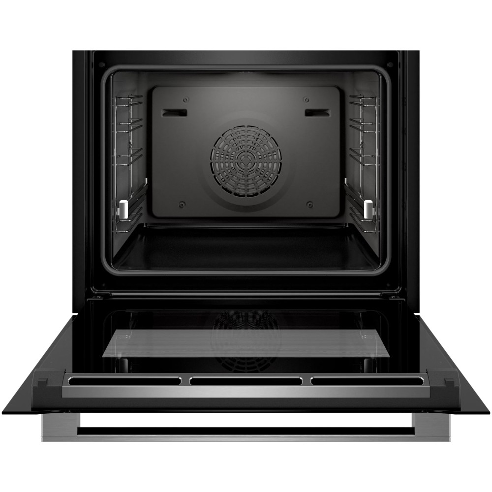 - قابلیت Grill Settings برای تنظیم حالت Grill, Large Area و Grill, Small Area در 3 سطح مختلف دارای 1 ریل تلسکوپی (Telescopic Shelf) قابلیت Cooling Fan برای خارج کردن گرمای اضافه از بالای درب فر توکار و جلوگیری از گرم شدن بیش از اندازه دارای 1 قفسه فلزی (Wire Rack) قابلیت آرام بند (SoftClose) برای بسته شدن آرام درب قابلیت Fan Run-On Time برای تنظیم مدت زمان روشن بودن فن فر (Cooling Fan) قابلیت Automatic Switch Off برای خاموش شدن خودکار فر توکار در صورت عدم استفاده از آن قابلیت کانوکشن (Convection) برای توزیع هوا و پخت یکنواخت غذا قابلیت Audible Signal برای اعلام پایان زمان پخت و پز یا تایمر به صورت صوتی دارای 1 سینی فلزی (Baking Tray) دارای لامپ هالوژن (Halogen) 40 واتی برای روشن کردن فضای داخل فر توکار دارای دکمه میانبر Top/Bottom Heating برای دسترسی مستقیم به حالت عملکرد Top/Bottom Heating قابلیت Night-Time Darkening برای تنظیم نور صفحه نمایش فر متناسب با نور کم شب دارای فیوز 16 آمپر برای جلوگیری از آسیب رسیدن به قطعات الکترونیکی فر توکار در زمان نوسانات برق سیستم کاتالیتیک (Catalytic Cleaning) برای تمیز کردن بهتر داخل فر توکار به کمک اکسید کردن چربی و باقیمانده مواد غذایی با دمای بالا درب تمام شیشه ای (Full Glass Inner Door) دارای سیم برق به طول 120 سانتی متر قابلیت Residual Heat Indicator برای نمایش گرمای باقیمانده در فر پس از اتمام پخت و پز دارای دکمه میانبر 4D Hot Air برای دسترسی مستقیم به حالت عملکرد 4D Hot Air دارای 1 سینی فلزی (Universal Pan) قابلیت آرام بازشو (SoftOpen) برای باز شدن آرام درب سیستم اکو کلین دایرکت (EcoClean Direct) با پوشش سرامیکی در دو طرف، پشت و بالای محفظه داخلی فر توکار برای تمیز کردن بهتر و آسان تر آن قابلیت Sabbath Mode برای گرم نگه داشتن غذا تا 74 ساعت بدون تغییر در تنظیمات فر سیستم هیدرولیتیک (Hydrolytic Cleaning) برای تمیز کردن بهتر داخل فر توکار به کمک بخار آب