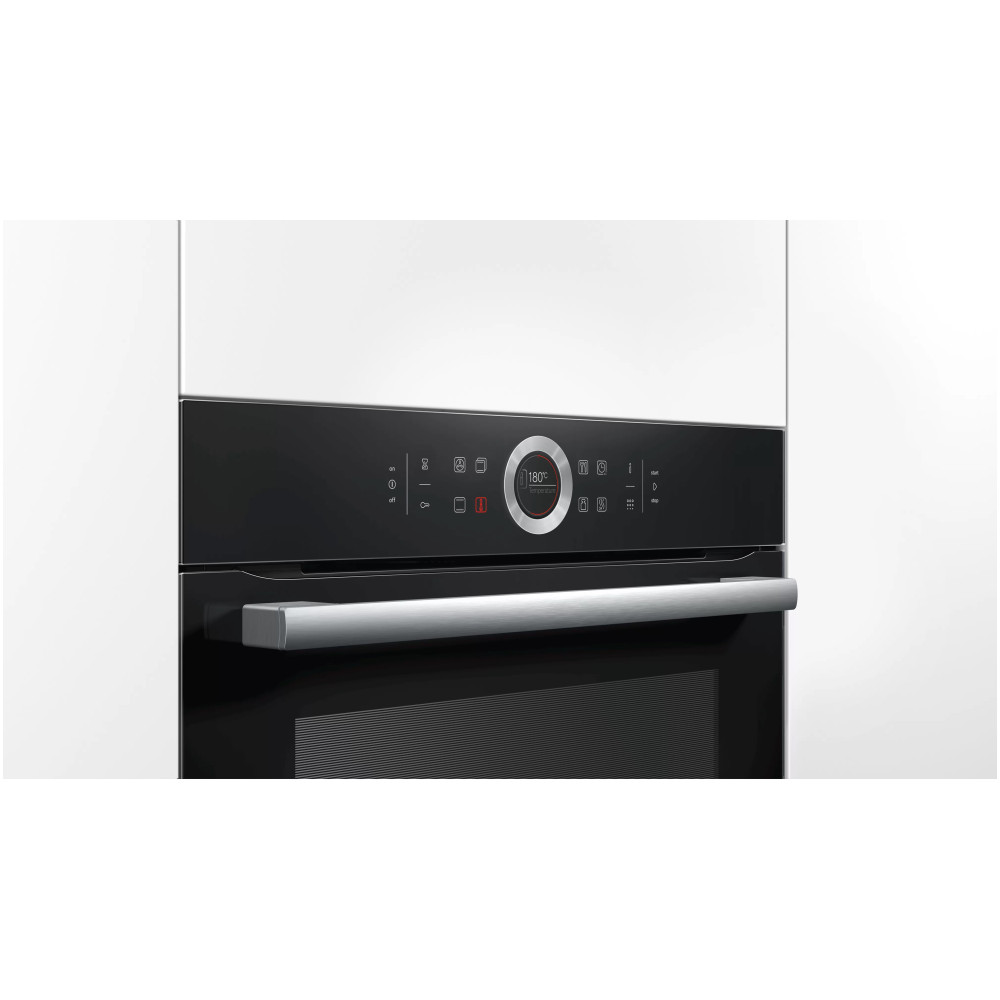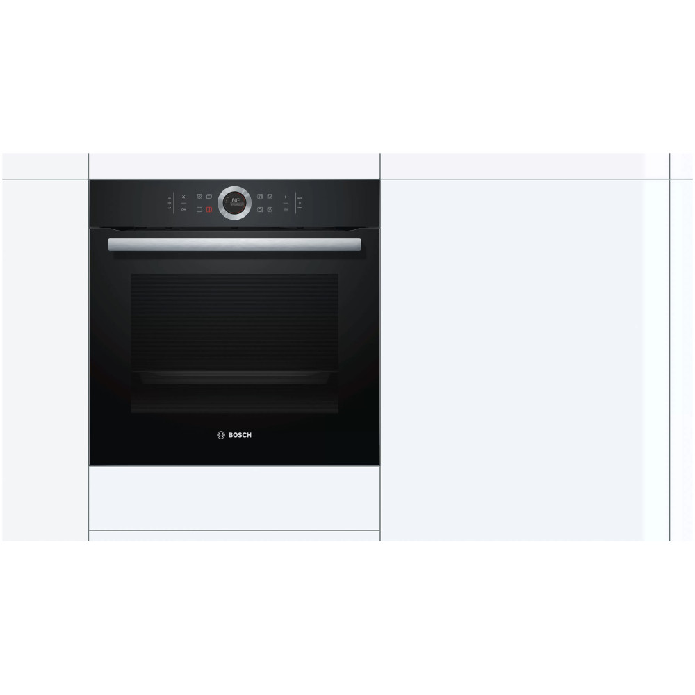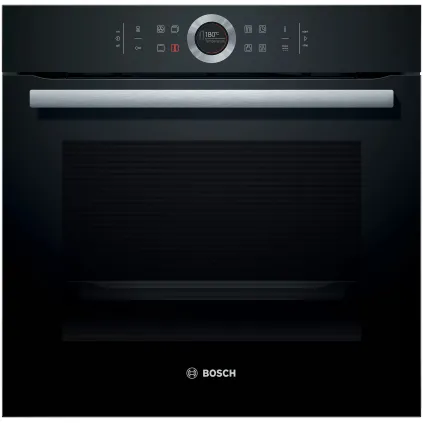 فر توکار بوش HBG675BB1 رنگ مشکی یکی از فر توکار های 2017 و سری 8 بوش به حساب می آید. این مدل ممکن است در برخی از فروشگاه ها به اختصار با مدل فر توکار بوش 675 نیز به فروش برسد که اشتباه است. این محصول در بازار با عنوان آون یا اون نیز معرفی می شود که از کلمه انگلیسی Oven به معنی فر گرفته شده است. آون توکار پیش روی شما ظرفیت 71 لیتر دارد و شما می توانید غذاهای مختلفی را در آن درست نمایید. فر توکار 71 لیتری بوش HBG675BB1 از نوع برقی است و امکان اتصال به گاز شهر را ندارد. این فر توکار دارای یک سیم برق 120 سانتیمتری است که با اتصال آن به برق می توانید دستگاه را روشن کرده و از آن استفاده نمایید. فر مذکور مجهز به المنت (هیتر) بالا، المنت (هیتر) پایین، المنت گریل (Grill) و کانوکشن (Convection) می باشد. به گفته بوش المنت گریل در این مدل، توان مصرفی 2800 وات و المنت کانوکشن آن نیز توان مصرفی 2200 وات دارد. همچنین به طور کلی این محصول توان مصرفی 3600 وات دارد و به همین دلیل برخی از فروشگاه ها ممکن است به اشتباه آن را به عنوان فر توکار 3600 وات بوش معرفی کنند اما مقدار گفته شده در واقع میزان برق مصرفی دستگاه می باشد. فر پیش روی شما قابلیت پخت ترکیبی غذا را دارد و شما می توانید دمای آن را از 30 تا 300 درجه سانتیگراد تنظیم کنید. به گفته بوش این دستگاه توانایی پخت کیک، شیرینی، بیسکوییت، پیتزا را دارد و حتی می توانید در آن ماست خانگی درست نمایید. همچنین شما می توانید مواد غذایی مثل میوه و سبزیجات را در این فر خشک، آب پز یا حتی کنسرو کنید. علاوه بر آن، می توانید خمیر را زودتر در آن به عمل آورده و در زمان صرفه جویی نمایید. این فر توکار برقی مجهز به 13 حالت پخت و پز مختلف است و شما می توانید به کمک آن غذاهای متنوعی را درست کرده و از آن لذت ببرید. پیشنهاد می کنیم پیش از شروع کار با فر توکار مذکور، دفترچه راهنمای آن را مطالعه نمایید. از مزایای این محصول می توان به قابلیت گریل کردن مواد غذایی اشاره کرد. شما می توانید برای گریل کردن مواد غذایی (بسته به اندازه آن ها) از حالت Grill, Large Area یا Grill, Small Area در این مدل استفاده کنید. حالت های گفته شده برای گریل کردن مواد غذایی از قبیل گوشت یا استیک کاملا مناسب است. در صورتی که می خواهید فن و گریل این دستگاه به صورت هم زمان عمل کنند می بایست حالت Hot Air Grilling را انتخاب نمایید. با انتخاب حالت مذکور المنت گریل و فن دستگاه در فواصل زمانی مشخصی روشن و خاموش می شوند که به گریل شدن یکنواخت و بهتر غذا کمک می کند. به گفته بوش حالت عملکرد گفته شده برای گریل کردن قطعه گوشت های بزرگ (مانند ماهی و مرغ) انتخاب بهتر و مناسب تری می باشد. در صورتی که می خواهید از قابلیت کانوکشن در آون توکار مذکور استفاده کنید می بایست حالت 4D Hot Air یا Hot Air Eco را انتخاب نمایید. با انتخاب حالت 4D Hot Air به کمک المنت پشت و فن هوای گرم در این محصول توزیع می شود در نتیجه شاهد پخت یکنواخت غذا خواهید بود. بوش مدعی است که شما با استفاده از حالت مذکور می توانید غذاها را به صورت هم زمان در چند طبقه (حداکثر 4 طبقه) از این فر قرار داده و نتیجه پخت یکسانی را تجربه نمایید. همچنین حالت Hot Air Eco نیز عملکردی شبیه به حالت قبل دارد با این تفاوت که برای پخت غذا در یک طبقه و مصرف انرژی کمتر پیشنهاد می شود. در صورتی که می خواهید مواد غذایی را در یک طبقه فر قرار دهید و گرما همزمان از بالا و پایین به آن داده شود، استفاده از حالت Top/Bottom Heating یا Top/Bottom Heating Eco پیشنهاد می شود. اگر غذا را در ظرف در بسته قرار داده اید و می خواهید به آرامی درون ظرف پخته شود، پیشنهاد می شود حالت Slow Cooking در این مدل را انتخاب نمایید. با انتخاب حالت مذکور حرارت به کمک المنت بالا و پایین به غذا داده می شود تا شاهد پخت ملایم غذا باشید. با انتخاب حالت Bottom Heating در این دستگاه تنها المنت پایین فر فعال شده و حرارت از پایین به غذا داده می شود. در صورتی که قصد درست کردن پیتزا در این فر توکار را دارید می توانید از حالت مخصوص تعریف شده برای این کار یعنی حالت Pizza Setting