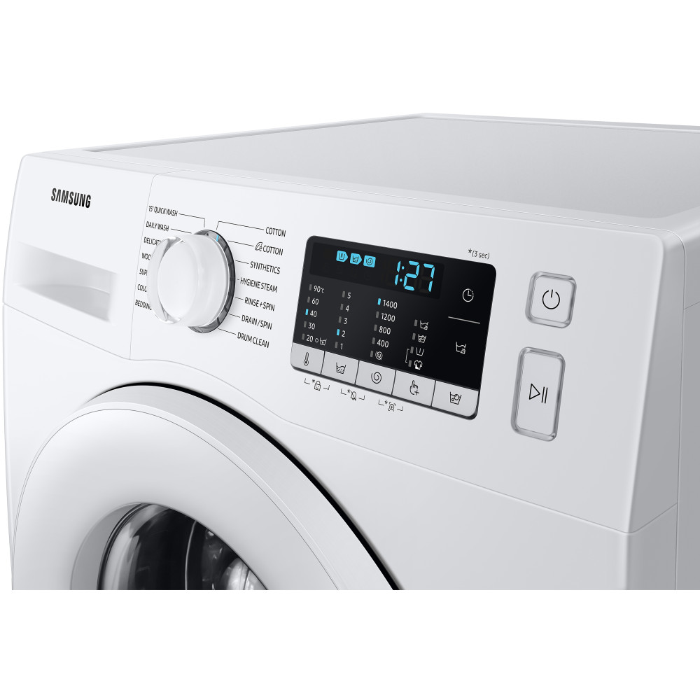 - قابلیت Steam برای شستشو با بخار تکنولوژی Hygiene Steam برای شستشوی کاملا بهداشتی و از بین بردن باکتری ها و ذرات آلرژی زا تا 99.9% به کمک بخار استفاده از آب سرد بعنوان ورودی دارای دیگ الماسه نسل دوم (2nd Diamond Drum) تکنولوژی VRT+ (VRT Plus) یا Vibration Reduction Technology Plus برای کاهش بیشتر لرزش و سر و صدای ماشین لباسشویی حین کار سرعت چرخش 1400 دور در دقیقه (1400 rpm) تکنولوژی Ecobubble (Eco Bubble) برای ایجاد حباب و تمیز کردن موثرتر و محافظت از لباس ها با دمای پایین آب تضمین عملکرد و کارایی موتور دیجیتال اینورتر (Digital Inverter) تا 10 سال توسط سامسونگ دارای موتور (دیجیتال اینورتر) Digital inverter با طول عمر بالا و صرفه جویی در مصرف انرژی و زمان هنگام شستشو صفحه نمایش بزرگ از نوع LED محفظه مواد شوینده با ویژگی StayClean Drawer جهت شستشوی خودکار داخل محفظه و جلوگیری از به جا ماندن مواد شوینده در آن