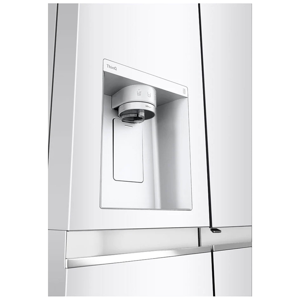 - محل قرار گیری پنل کنترلی در داخل یخچال تکنولوژی UVnano برای از بین بردن باکتریهای دهانه آبریز تا 99.99% با استفاده از نور فرابنفش سیستم یخ ریز با قابلیت تولید یخ حبه ای (مکعبی) و یخ خرد سیستم عیب یاب هوشمند (Smart Diagnosis) برای عیب یابی راحت تر تکنولوژی +Hygiene FRESH با فیلتر 5 لایه برای از بین بردن باکتری ها تا 99.999% و بوی بد مواد غذایی و تصفیه هوای داخلی یخچال قابلیت Express Freeze برای انجماد سریع در فریزر و یخ ساز کشوی Fresh Balancer مخصوص نگهداری میوه و سبزیجات قابلیت Fresh Balancer برای تنظیم رطوبت در کشوی مخصوص سبزی و میوه جهت افزایش ماندگاری آنها قابلیت Door Alarm برای اطلاع دادن در صورت باز ماندن درب یخچال پشتیبانی از برنامه LG ThinQ برای کنترل و مدیریت یخچال فریزر از طریق موبایل (مخصوص موبایل های اندرویدی و iOS) تکنولوژی +Door Cooling برای سرمایش سریع تر مواد غذایی موجود در درب یخچال قابلیت درب در درب (Door-in-Door) برای دسترسی به برخی مواد غذایی بدون باز کردن درب اصلی یخچال و جلوگیری از هدر رفت سرما سیستم یخ ساز اتوماتیک با طراحی باریک برای اشغال فضای کمتر (SpacePlus Ice System) دستگیره مخفی (Pocket Handle) کشوی Moist Balance Crisper با ویژگی حفظ رطوبت و جلوگیری از خشک شدن مواد غذایی (مخصوص میوه و سبزیجات) سیستم بدون برفک (No Frost) تضمین عملکرد و کارایی موتور Inverter Linear Compressor تا 10 سال توسط ال جی سیستم تهویه هوای Multi Air Flow برای توزیع هوای سرد یکنواخت در کل یخچال و فریزر از طریق دریچه های هوای متعدد