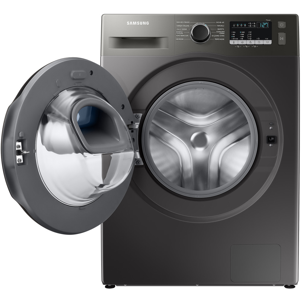 ماشین لباسشویی سامسونگ WW90T4540AX یا WW90 رنگ اینوکس یکی از ماشین لباسشویی های 2020 سامسونگ به شمار می آید. نوشته های روی محصول و برنامه های شستشو به زبان ترکی می باشد. محصول مورد بررسی در بازار ممکن است با مدل ماشین لباسشویی سامسونگ WW90T یا WW90 نیز به مشتری معرفی شود که اشتباه است، حرف T نشان دهنده سال تولید محصول یعنی 2020 و عدد 90 نشان دهنده 9 کیلویی بودن آن است. ماشین لباسشویی سامسونگ WW90T دارای 12 برنامه شستشو می باشد و امکان دانلود برنامه شستشویی جدیدی برا شما وجود ندارد. شما می توانید با چرخش دکمه پیچی روی محصول برنامه شستشوی مدنظر خود را اجرا کنید. محصول فوق دارای قابلیت استیم یا بخارشوی است. برای استفاده از این قابلیت لازم است برنامه شستشو را روی Hygiene Steam تنظیم نمایید تا لباس های شما در دمای بالا تا 99.9% ضد عفونی شود. این محصول دارای برنامه شستشوی Drum Clean مخصوص شستشوی دیگ می باشد. بعد از 40 بار شستشوی لباس ها به طور خودکار چراغی روی پنل نمایان می شود که نشانگر زمان فرا رسیدن شستشوی دیگ است. پس از مشاهده این آلارم بر روی پنل می توانید برنامه Drum Clean را اجرا نمایید تا دیگ تمیز شود. در صورتی که آلارم را نادیده بگیرید، این آلارم تا 6 شستشو بر روی پنل نمایان مانده و پس از آن به طور خودکار خاموش می شود. اگر تمایل دارید در زمان کمی شستشوی لباس ها انجام شود می توانید برنامه شستشو را روی 15' Quick Wash تنظیم نمایید تا لباس های شما در عرض 15 دقیقه شسته شود. برنامه Wool/Delicates یا برنامه شستشوی دستی برای شستشوی انواع لباس های حساس مانند پشمی و یا حریر با کمترین درجه سختی و در حد فشار دست مناسب می باشد. علاوه بر برنامه های شستشوی متنوع، محصول فوق دارای قابلیت هایی نیز می باشد که در ادامه به توضیح درباره آن می پردازیم. اگر لباس های شما بسیار کثیف است می توانید قابلیت Intensive یا Soak را فعال نمایید. همچنین شما می توانید پس از انتخاب برنامه شستشوی مدنظر خود قابلیت های Spin، Rinse+ و Temp را به صورت دستی به دلخواه خود فعال کنید. اگر لباس های شما در برابر نفوذ آب مقاوم است می توانید قابلیت Prewash را برای آن فعال کنید تا به طور کامل و برای مدت بیشتری در آب خیسانده شود. اگر صدای دکمه های دستگاه به هر دلیل برای شما آزار دهنده است می توانید به کمک قابلیت Alarm Off صدای دکمه ها را غیر فعال نمایید. قابلیت Delay End برای شما این امکان را فراهم می سازد تا زمان شروع و پایان شستشو را با تاخیر تنظیم نمایید. از دیگر قابلیت های جالب این محصول امکان اضافه کردن لباس های جامانده از دور شستشو حین شستشوی لباس های دیگر می باشد. به همین منظور درب کوچکی روی درب اصلی لباسشویی طراحی شده است تا راحت تر بتوانید از قابلیت ادواش استفاده نمایید. ماشین لباسشویی 9 کیلویی سامسونگ WW90T4540AX برای خانواده های با جمعیت زیاد انتخابی مناسب است. این محصول مجهز به موتور دیجیتال اینورتر (Digital Inverter) می باشد. موتور های Digital Inverter نسبت به موتور های معمولی از لرزش و صدای کمتری برخوردار می باشند. موتور دیجیتال اینورتر بدون برس است و به اصطلاح به آن براشلس (Brushless) می گویند و به صورت مغناطیسی کار می کند. این موتور با استفاده از تسمه به دیگ شستشو متصل است و آن را می چرخاند. بنابراین به نوعی می توان گفت که این ماشین لباسشویی تسمه ای است. سامسونگ طول عمر این موتور های دیجیتال اینورتر را تا 20 سال نیز ضمانت نموده است. ماشین لباسشویی 1400 دور سامسونگ خشک کن ندارد و نمی تواند لباس ها را کاملا خشک و قابل پوشیدن به شما تحویل دهد. سرعت چرخش دیگ در برنامه های مختلف شستشو متفاوت از یکدیگر است، اما حداکثر سرعت چرخش آن 1400 دور در دقیقه می باشد. ماشین لباسشویی سامسونگ WW90T4540AX اسمارت نیست و WiFi ندارد اما دارای قابلیت عیب یابی هوشمند یا Smart Check است. طراحی ماشین لباسشویی سامسونگ WW90 مدرن و دارای رنگ بدنه اینوکس با درب مشکی می باشد. لباسشویی فوق دارای پنل LED بوده که برخی اطلاعات شستشو همانند دمای آب، زمان شستشو و موارد دیگر را به شما نمایش می دهد. 