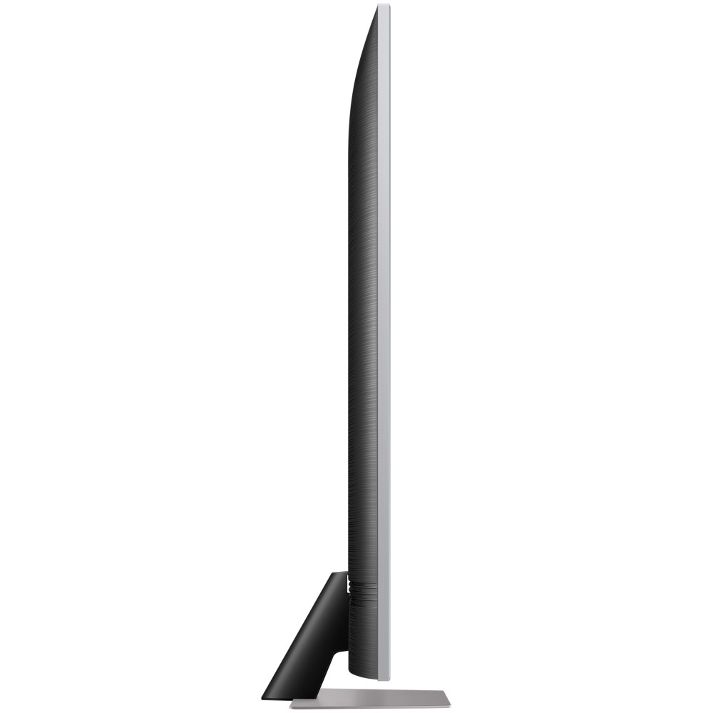تلویزیون 55 اینچ سامسونگ Q83B از زبان طراحی Stylish Q برخوردار است و از این نظر مشابه مدل سال گذشته خود می باشد. در بخش حاشیه صفحه نمایش این محصول از طراحی "4 Bezel-less" استفاده شده است که به لطف آن شاهد حاشیه های باریکی در 4 طرف صفحه نمایش آن هستیم. این موضوع علاوه بر زیبایی، به تمرکز بیشتر بیننده بر روی محتوای در حال پخش نیز کمک می کند. تلویزیون پیش روی شما به لطف ضخامت باریک 5.47 سانتیمتری خود، برای نصب روی دیوار گزینه مناسبی به شمار می رود. پایه این تلویزیون از نوع خطی می باشد و به صورت دو رنگ طراحی شده است. شما می توانید این پایه را به کمک پیچ در قسمت میانی تلویزیون مذکور متصل نمایید. سامسونگ در قسمت پشت بدنه این محصول شیارهایی را برای عبور و مدیریت کابل ها طراحی کرده است تا بتوانید کابل های متصل به تلویزیون را در پشت آن مرتب نموده و فضای منظم تری را در اختیار داشته باشید. سامسونگ جعبه این تلویزیون را به صورت Eco-packaging و مقاوم طراحی کرده است و شما می توانید پس از این که تلویزیون را از بسته بندی خارج کردید، کارتن آن را برش زده و از آن سازه مقوایی زیبایی بسازید.