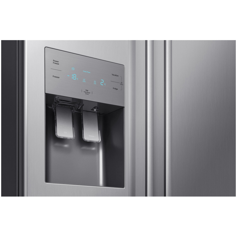 - قابلیت Power Freeze برای انجماد سریع در فریزر محل قرار گیری پنل کنترلی روی بدنه یخچال فریزر مناسب برای مناطق جغرافیایی با آب و هوای معتدل (Temperate) یا N سیستم خنک کننده یکپارچه (Mono Cooling) برای چرخش هوا در یخچال و فریزر دارای کشوی مخصوص نگهداری میوه و سبزیجات قابلیت Child Lock (Lock) برای قفل کردن پنل کنترلی یخچال سیستم یخ ریز با قابلیت تولید یخ حبه ای (مکعبی) و یخ خرد سیستم بدون برفک (No Frost) قابلیت Dispenser Lock برای قفل کردن قسمت آب ریز مناسب برای مناطق جغرافیایی با آب و هوای نیمه معتدل (Extended temperate) یا SN مناسب برای مناطق جغرافیایی با آب و هوای گرمسیری (Tropical) یا T سیستم یخ ساز اتوماتیک (Auto Ice Maker) طبقات یخچال و فریزر از جنس شیشه حرارت دیده قفسه Dairy Guard مخصوص نگهداری غذاهای لبنی طراحی مینیمال و شیک (Stylish Minimal) جهت هماهنگی بیشتر با کابینت و دکوراسیون آشپزخانه قفسه فلزی Wine Rack مخصوص نگهداری بطری ها در داخل یخچال عایق گاز سیکلوپنتان (Cyclopentane) قابلیت Vacation (Vacation Mode) برای کاهش مصرف انرژی یخچال مخصوص مسافرت های طولانی سیستم تهویه هوای Multi Flow برای توزیع هوای سرد یکنواخت در کل یخچال و فریزر از طریق دریچه های هوای متعدد قابلیت Door Alarm برای اطلاع دادن در صورت باز ماندن درب یخچال مناسب برای مناطق جغرافیایی با آب و هوای نیمه گرمسیری (Subtropical) یا ST تضمین عملکرد و کارایی موتور با تکنولوژی Digital Inverter تا 10 سال توسط سامسونگ سیستم تهویه هوای All Around Cooling برای توزیع هوای سرد یکنواخت در کل یخچال و فریزر از طریق دریچه های هوای متعدد دستگیره نواری (Barosa Bar)