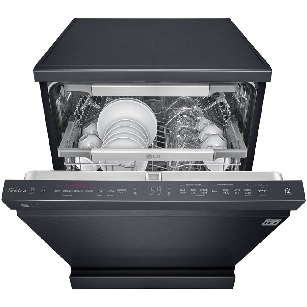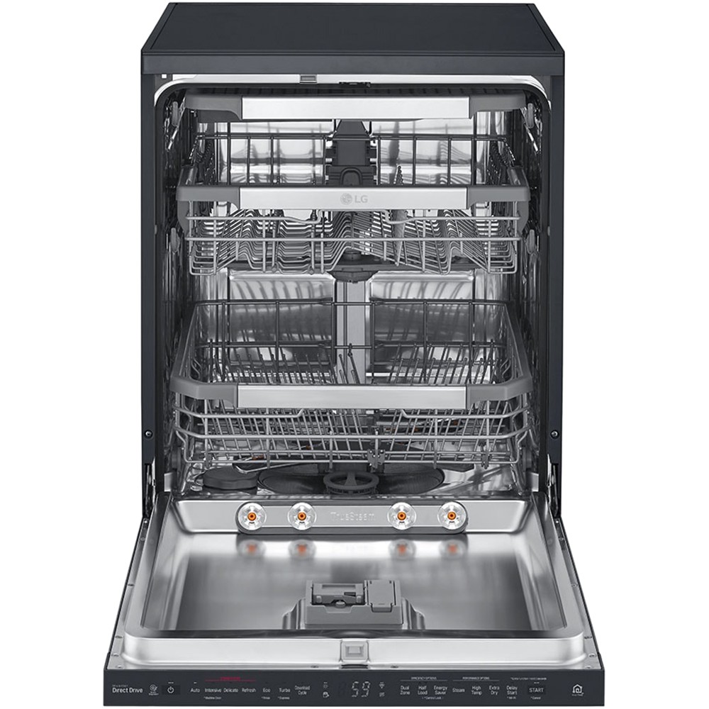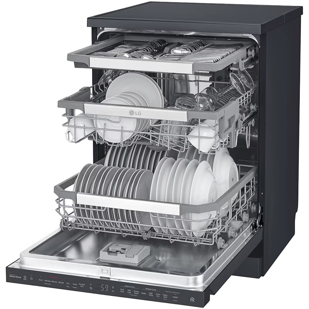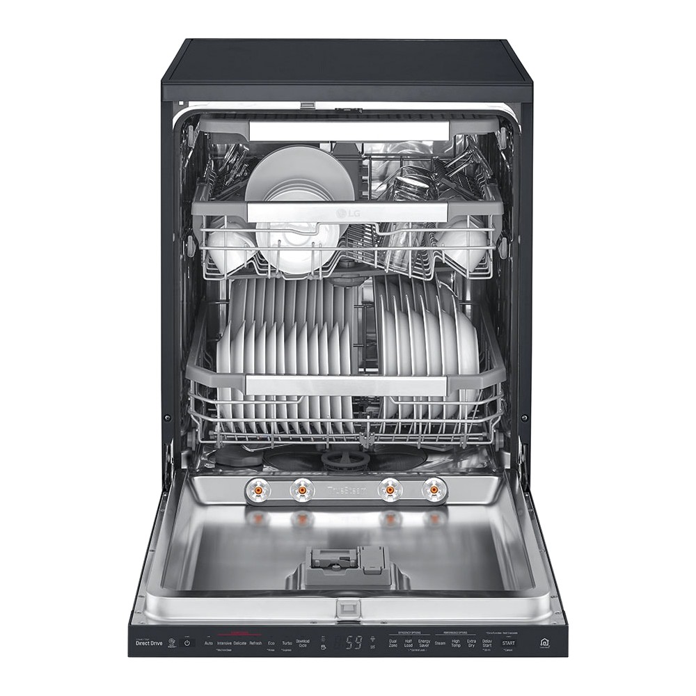 - دارای چرخه Refresh یا تازه سازی برای رفع گرد و غبار روی ظروف (شستشوی بدون مواد شوینده) تکنولوژی TrueSteam برای شستشو و خشک کردن کامل ظروف قابلیت Dual Zone برای شستشوی ظروف ظریف و ظروف بزرگ به طور هم زمان قابلیت تنظیم ارتفاع طبقات یا سبد ها در 3 سطح مختلف دارای پنل کنترلی مخفی (Hidden Panel Control) دارای 3 بازوی آبپاش (Top, Upper, Lower Spray Arms) سیستم Smart Diagnosis برای عیب یابی هوشمند قابلیت Auto Open Dry برای باز شدن خودکار درب بعد از اتمام شستشو و خشک کردن بهتر ظروف دارای صفحه نمایش سگمنتی از نوع میکرو ال ای دی (Micro LED) سیستم Vario Plus برای شستشوی بهتر ظروف به کمک بازوی وسط دارای نشانگر پر کردن مجدد نمک (Salt Refill Icon) دارای موتور Inverter Direct Drive با طول عمر بالا و صرفه جویی در مصرف انرژی و زمان هنگام شستشو قابلیت Extra Dry برای خشک کردن بهتر ظروف قابلیت Adjustable Leg برای تنظیم پایه ها تا 30 میلیمتر پشتیبانی از اینترنت اشیا (IoT) برای مدیریت و کنترل ماشین ظرفشویی از راه دور دارای 4 نوار نویزگیر (Noise Strip) با قابلیت نصب برای کاهش انتقال لرزش و صدای ماشین ظرفشویی قابلیت شروع شستشو با تاخیر از 1 تا 12 ساعت دارای مبدل حرارتی مخفی (Hidden Heater) قابلیت Control Lock برای قفل کردن پنل کنترلی ماشین ظرفشویی دارای سنسور تشخیص میزان کثیفی آب و ظروف (Soil Sensor (Turbidity Sensor)) دارای قابلیت تاشو (Foldable Tines) دندانه های سبد برای جایگیری ظروف بزرگ تر تکنولوژی QuadWash برای شستشوی بهتر ظروف با استفاده از بازوی آبپاش 4 پره دارای چرخه Intensive برای شستشوی ظروف بسیار کثیف پشتیبانی از برنامه LG ThinQ برای کنترل و مدیریت ماشین ظرفشویی از طریق موبایل (مخصوص موبایل های اندرویدی و iOS) سیستم Aqua-Stop برای جلوگیری از نشت آب مجهز به قابلیت Delay Start برای شروع شستشو با تاخیر محفظه داخلی ماشین ظرفشویی از جنس فولاد ضد زنگ با دوام (NeveRust Stainless Steel) سیستم EasyRack Plus برای تنظیم طبقات یا سبد های ماشین ظرفشویی قابلیت Energy Saver برای صرفه جویی در مصرف انرژی دارای نگهدارنده مخصوص لیوان های پایه دار (Stemware Holder) سیستم Water Softener برای تنظیم میزان سختی آب دارای 3 چراغ نشانگر برای نمایش وضعیت دستگاه (SignaLight) قابلیت Machine Clean Reminder جهت یادآوری تمیز کردن دستگاه از طریق برنامه LG ThinQ سیستم تنظیم شدت جریان آب بین سبدها و طبقات مختلف (Vario Washing System) استفاده از مواد ضد باکتری در ساخت برخی از اجزا ماشین ظرفشویی (Anti-Bacterial Treatment) کنترل کاملا الکترونیکی (Fully Electronic Control) برنامه شستشوی Machine Clean برای شستشو و تمیز کردن خودکار داخل ماشین ظرفشویی تکنولوژی Condensing برای خشک کردن ظروف به کمک هوای داغ حاصل از دور آخر آبکشی و فن تضمین عملکرد و کارایی موتور Inverter Direct Drive تا 10 سال توسط ال جی قابلیت High temp برای شستشو با آب داغ طراحی کاملا مینیمال برای هماهنگی هر چه بهتر با آشپزخانه شما جنس بدنه فولاد ضد زنگ (Stainless Steel) دارای قیف (Funnel) برای پر کردن مخزن نمک ماشین ظرفشویی