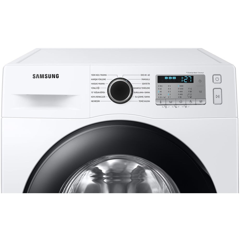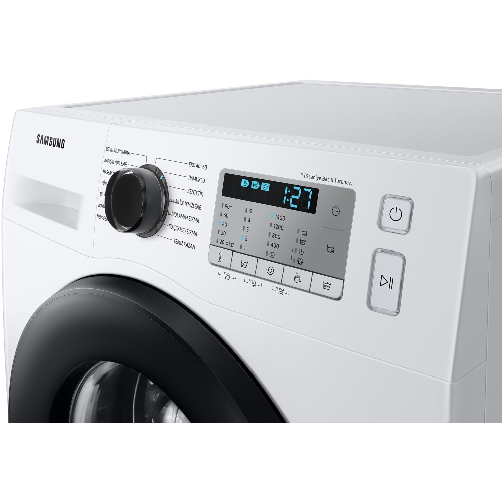 ماشین لباسشویی سامسونگ WW90TA046AH رنگ سفید یکی از ماشین لباسشویی های 2020 سامسونگ به شمار می آید. محصول فوق در حال حاضر با مدل کامل WW90TA046AH/AH مونتاژ کشور لهستان (سفارش ترکیه) در بازار ایران موجود است. توجه داشته باشید که نوشته های روی ماشین لباسشویی و برنامه های شستشو به زبان ترکی می باشد. برخی از فروشندگان و یا سایت ها این محصول را با مدل ماشین لباسشویی سامسونگ WW90T و یا WW90 نیز به مشتری معرفی می کنند که کاملا اشتباه است و حرف T نشان دهنده سال تولید آن یعنی 2020 و عدد 90 نمایانگر 9 کیلویی بودن محصول می باشد. این محصول تفاوت چندانی با ماشین لباسشویی سامسونگ WW90TA046AE ندارد و تنها زبان برنامه های شستشو و طراحی پنل با هم متفاوت می باشند. ماشین لباسشویی 9 کیلویی سامسونگ WW90TA046AH انتخابی مناسب برای خانواده های با جمعیت متوسط و یا پر جمعیت می باشد. محصول فوق دارای موتور دیجیتال اینورتر (Digital Inverter) است. البته ممکن است در بازار موتور دیجیتال اینورتر را با عنوان اینورتر دیجیتال نیز معرفی کنند که اشتباه است. موتور این محصول از نوع بدون براش یا براشلس (Brushless) می باشد و به صورت مغناطیسی عمل می کند. موتور این ماشین لباسشویی توسط یک تسمه به دیگ شستشو متصل شده است. در واقع نیروی موتور توسط تسمه به دیگ شستشو منتقل می شود و از این طریق دیگ را به چرخش در می آورد؛ بنابراین می توان گفت که این ماشین لباسشویی تسمه ای است. به طور کلی موتورهای دیجیتال اینورتر با توجه به ساختاری که دارند، صدا و مصرف انرژی کمتری نسبت به موتورهای معمولی دارند اما عملکرد بهتری ارائه می دهند. این موضوع در ماشین لباسشویی پیش روی شما هم صدق می کند. موتور Digital Inverter سامسونگ دارای کیفیت ساخت عالی و طول عمر بالایی می باشد. همین موضوع باعث شده تا سامسونگ طول عمر و عملکرد موتور این محصول را تا 10 سال تضمین نموده است. ماشین لباسشویی 1400 دور سامسونگ WW90TA046AH قابلیت خشک کن ندارد؛ اما دارای قابلیت آبگیری می باشد و این بدان معناست که می تواند آب لباس ها را تا حد زیادی بگیرد و با کمی رطوبت به شما تحویل دهد. برای خشکی صد در صد لازم است لباس ها را در فضای آزاد پهن نمایید. سرعت چرخش دیگ در برنامه های مختلف شستشو متفاوت از یکدیگر است اما حداکثر سرعت چرخش دیگ در این لباسشویی 1400 دور در دقیقه است. ماشین لباسشویی سامسونگ WW90T دارای 14 برنامه شستشو برای انواع البسه با زمان بندی های مختلف می باشد. این محصول مجهز به قابلیت بخارشوی جهت شستشوی بهداشتی لباس ها است. تکنولوژی Hygiene Steam در محصول فوق با از بین بردن باکتری ها و ذرات آلرژی زا تا 99.9% از الیاف پارچه ها شستشویی کاملا بهداشتی را در اختیار شما قرار می دهد. شما می توانید با تنظیم دور شستشو بر روی برنامه Hygiene Steam از قابلیت بخارشوی استفاده نموده و لباس ها را ضد عفونی نمایید. برای شستشوی لباس هایی با لک سطحی می توانید دور شستشو را روی 15' Quick Wash تنظیم نمایید. محصول فوق دارای برنامه مخصوص شستشوی دیگ می باشد، این برنامه دیگ شستشو را تا 99.9% ضد عفونی کرده و باکتری ها را از بین می برد. وقتی که زمان شستشوی دیگ فرا رسیده باشد آلارمی روی پنل محصول نمایان می شود. بعد از دیدن آلارم مذکور شما می توانید برنامه Drum Clean را فعال نمایید تا شستشوی دیگ انجام شود. لازم است بدانید این آلارم بعد از 40 بار شستشوی لباس ها روی پنل نمایان شده و تا 6 شستشو جهت اطلاع رسانی روی پنل ال ای دی باقی می ماند و پس از آن ناپدید می شود. سامسونگ این محصول را به تکنولوژی Ecobubble مجهز نموده است که با تبدیل مواد شوینده به حباب لباس ها را در دمای پایین و با کمترین آسیب به بافت پارچه شستشو می نماید؛ جهت استفاده از تکنولوژی فوق در این لباسشویی بهتر است برنامه شستشو را روی Intense Cold تنظیم نمایید. همچنین این محصول دارای قابلیت ها و گزینه هایی است که در ادامه به توضیح در خصوص آن خواهیم پرداخت. این محصول دارای قابلیت Bubble Soak است، فعال کردن قابلیت فوق موجب می شود تا با تشکیل حباب های فراوان لکه های سرسخت از الیاف 