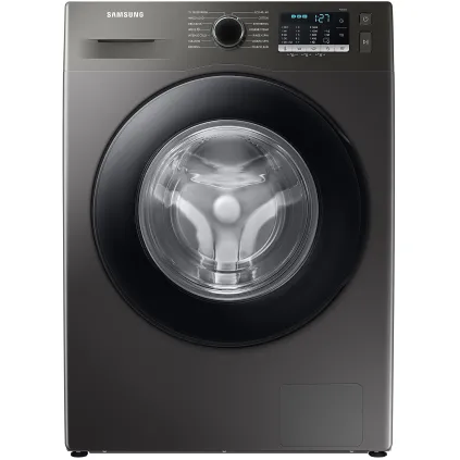 ماشین لباسشویی سامسونگ WW80TA046AX رنگ اینوکس یکی از ماشین لباسشویی های 2020 سامسونگ محسوب می شود. لازم است بدانید که برخی از فروشگاه ها و سایت ها این محصول را با مدل ماشین لباسشویی سامسونگ WW80T یا WW80 نیز به مشتری معرفی می کنند که اشتباه است، زیرا حرف T نماد سال تولید محصول یعنی 2020 و عدد 80 بیانگر 8 کیلویی بودن لباسشویی می باشد. محصول فوق در حال حاضر با مدل کامل WW80TA046AX/EU مونتاژ لهستان در بازار ایران موجود است. این محصول مشابه ماشین لباسشویی سامسونگ WW80TA046AX1 است و تنها در برخی برنامه های شستشو و طراحی پنل تفاوت های جزئی با یکدیگر دارند. ماشین لباسشویی 8 کیلویی سامسونگ WW80TA046AX به عنوان یک گزینه مناسب برای خانواده های با جمعیت متوسط معرفی می شود. موتور این محصول از نوع دیجیتال اینورتر (Digital Inverter) است که نسبت به موتور های معمولی از لرزش و سر و صدای کم ولی طول عمر بالایی برخوردار می باشد. این موتور بدون براش است و اصطلاحا به آن براشلس (Brushless) می گویند و به صورت مغناطیسی کار می کند. این موتور توسط یک تسمه به دیگ شستشو متصل می شود و آن را می چرخاند، بنابراین می توان گفت که این ماشین لباسشویی تسمه ای است. سامسونگ طول عمر موتور Digital Inverter این لباسشویی را تا 20 سال نیز ضمانت نموده است. ماشین لباسشویی سامسونگ WW80T مجهز به 14 برنامه متنوع برای شستشوی انواع البسه می باشد و شما نمی توانید برنامه های جدیدی برای شستشوی لباس ها دانلود نمایید. این محصول قابلیت بخارشوی دارد و تکنولوژی بخارشوی آن از نوع Hygiene Steam است که می تواند ذرات آلرژی زا و باکتری ها را تا 99.9% از تار و پود پارچه حذف نماید. برای استفاده از قابلیت بخارشوی بهتر است برنامه شستشو را روی Hygiene Steam تنظیم نمایید. برای لباس های روزانه خود با لک سطحی می توانید برنامه شستشو را روی 15' Quick Wash قرار دهید تا در عرض 15 دقیقه شستشوی آن ها انجام شود. یکی از برنامه های جالب این محصول برنامه Drum Clean برای شستشوی دیگ می باشد. بعد از 40 بار شستشو آلارمی روی پنل نمایان می شود که بیانگر زمان فرا رسیدن شستشوی دیگ است. بعد از دیدن آلارم مذکور بهتر است برنامه Drum Clean را اجرا نمایید. در صورتی که آن را نادیده بگیرید، آلارم مذکور تا 6 شستشو روی پنل باقی می ماند و پس از آن خاموش می شود. محصول فوق دارای تکنولوژی Ecobubble می باشد که مواد شوینده را به حباب تبدیل کرده و لباس ها را در دمای پایین با کف و حباب های فراوان شستشو می نماید. برای استفاده از این تکنولوژی بهتر است برنامه شستشو Intense Cold را انتخاب نمایید. سامسونگ علاوه بر برنامه های شستشوی متنوع، قابلیت های مختلفی را نیز در این محصول قرار داده است که در ادامه به ارائه برخی توضیحات در خصوص آن ها خواهیم پرداخت. اگر لباس های شما دارای لکه های سمج و سرسختی می باشد بهتر است قابلیت Bubble Soak را برای آن فعال کنید تا با غوطه ور شدن لباس ها در حباب فراوان شستشوی آن ها بهتر انجام شود. همچنین می توانید برای شستشوی لباس های کثیف قابلیت Intensive را فعال نمایید. با فعال کردن این قابلیت مدت زمان شستشوی لباس ها افزایش می یابد. اگر می خواهید اتوکشی لباس ها پس از شستشو آسان تر انجام شود بهتر است قابلیت Easy Iron را برای آن فعال نمایید. با وجود قابلیت Delay End در این لباسشویی می توانید زمان شروع و پایان شستشو را با تاخیر تعیین و تنظیم نمایید. شما می توانید در این محصول قابلیت های Temp ،Spin و Rinse را به صورت دستی تنظیم کنید. محصول فوق یک ماشین لباسشویی هوشمند نیست و وای فای ندارد. اگر دکمه های Temp+Rinse را به مدت 3 ثانیه نگه دارید قابلیت قفل کودک آن فعال می شود و همه دکمه های روی محصول به غیر از دکمه Power غیر فعال می شود. این لباسشویی دارای قابلیت عیب یابی هوشمند می باشد. شما می توانید برنامه SAMSUNG Smart Washer را روی موبایل هوشمند اندرویدی یا iOS خود نصب نمایید. اگر اخطاری روی پنل ال ای دی محصول نمایان شد شما می توانید کد نمایان شده را توسط گوشی خود اسکن کنید و راه حل مناسب برای مشکل را در برنامه SAMSUNG Smart Washer بیابید. ماشین لباس