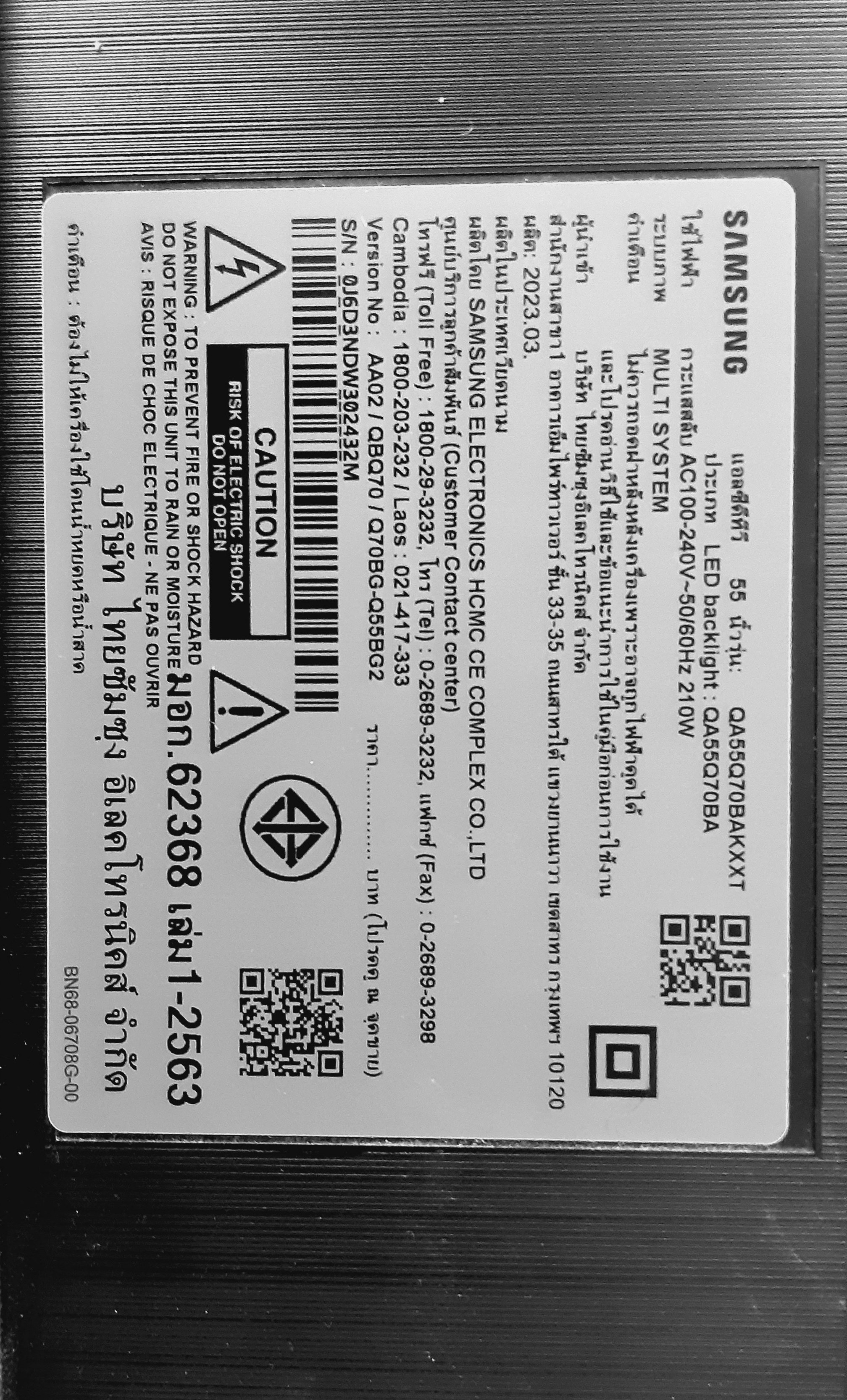 - مونتاژ ویتنام (سفارش تایلند): QA55Q70CAKXXT مونتاژ مصر: QA55Q70CAUXZN مونتاژ مصر: QA55Q70CAUXTW مونتاژ اسلواکی (سفارش کره): QE55Q70CATXTK
