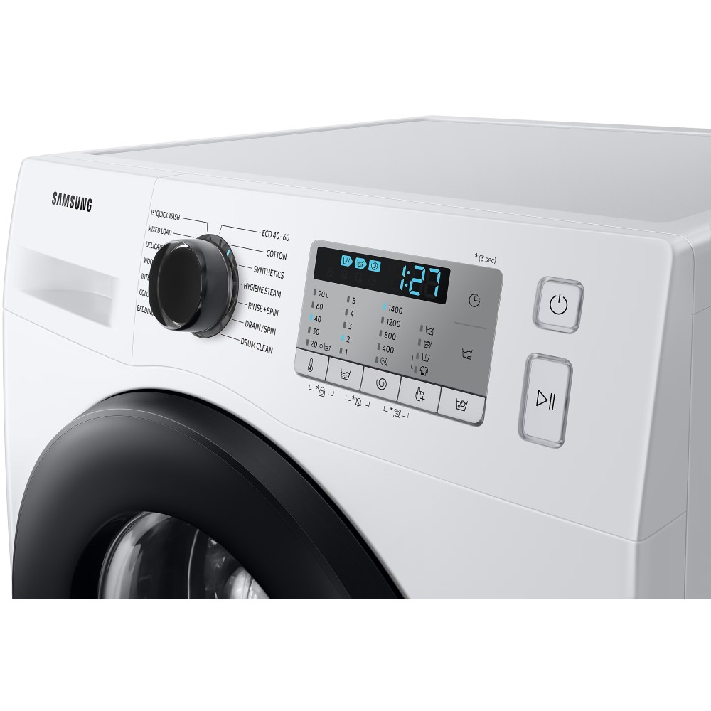 - سرعت چرخش 1400 دور در دقیقه (1400 rpm) تکنولوژی Ecobubble (Eco Bubble) برای ایجاد حباب و تمیز کردن موثرتر و محافظت از لباس ها با دمای پایین آب تضمین عملکرد و کارایی موتور دیجیتال اینورتر (Digital Inverter) تا 10 سال توسط سامسونگ پشتیبانی از برنامه SAMSUNG Smart Washer برای عیب یابی هوشمند ماشین لباسشویی از طریق موبایل (مخصوص موبایل های اندرویدی و iOS) صفحه نمایش بزرگ از نوع LED محفظه مواد شوینده با ویژگی StayClean Drawer جهت شستشوی خودکار داخل محفظه و جلوگیری از به جا ماندن مواد شوینده در آن تکنولوژی Hygiene Steam برای شستشوی کاملا بهداشتی و از بین بردن باکتری ها و ذرات آلرژی زا تا 99.9% به کمک بخار قابلیت Steam برای شستشو با بخار استفاده از آب سرد بعنوان ورودی دارای دیگ الماسه نسل دوم (2nd Diamond Drum)