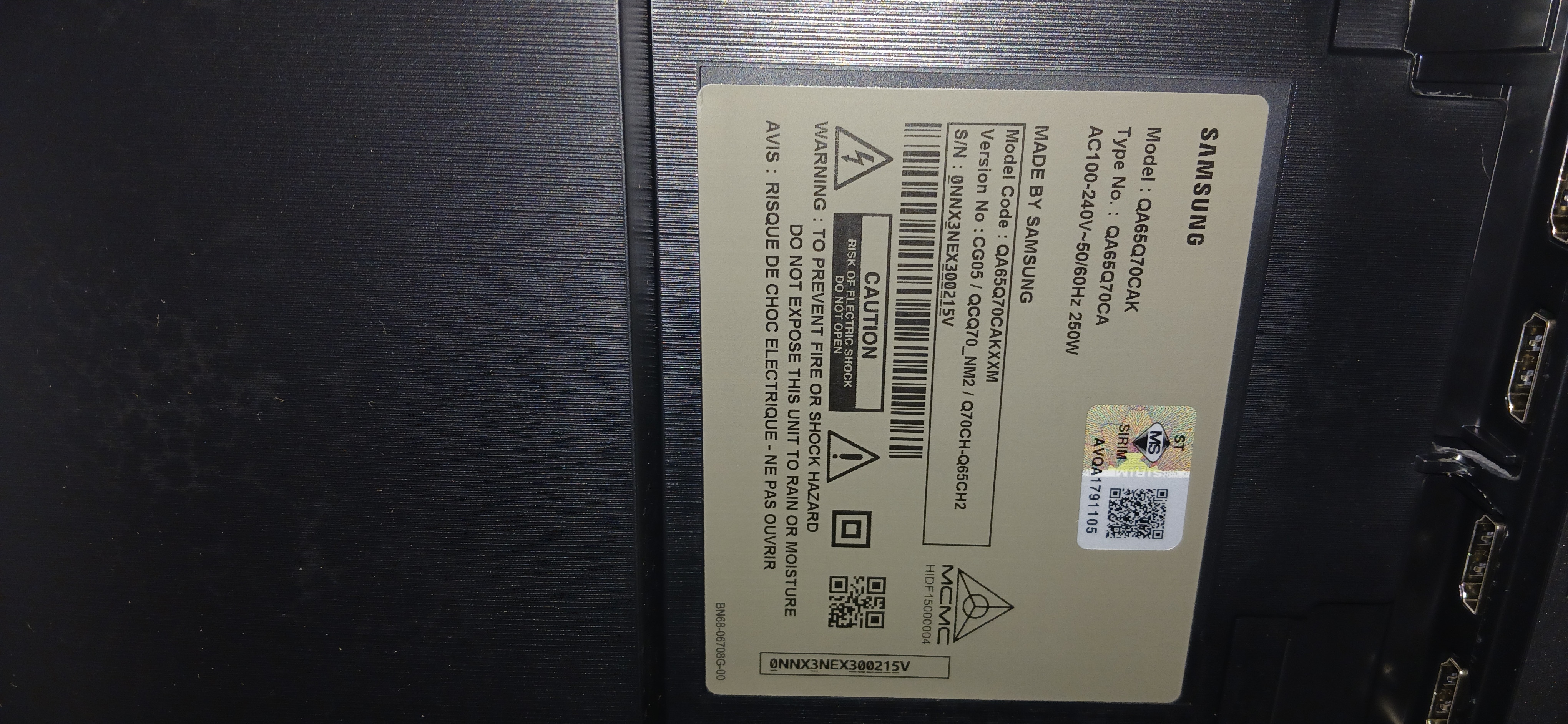 - مونتاژ ویتنام (سفارش تایلند): QA65Q70CAKXXT مونتاژ اسلواکی (سفارش کره): QE65Q70CATXTK مونتاژ مصر: QA65Q70CAUXZN مونتاژ مصر: QA65Q70CAUXTW