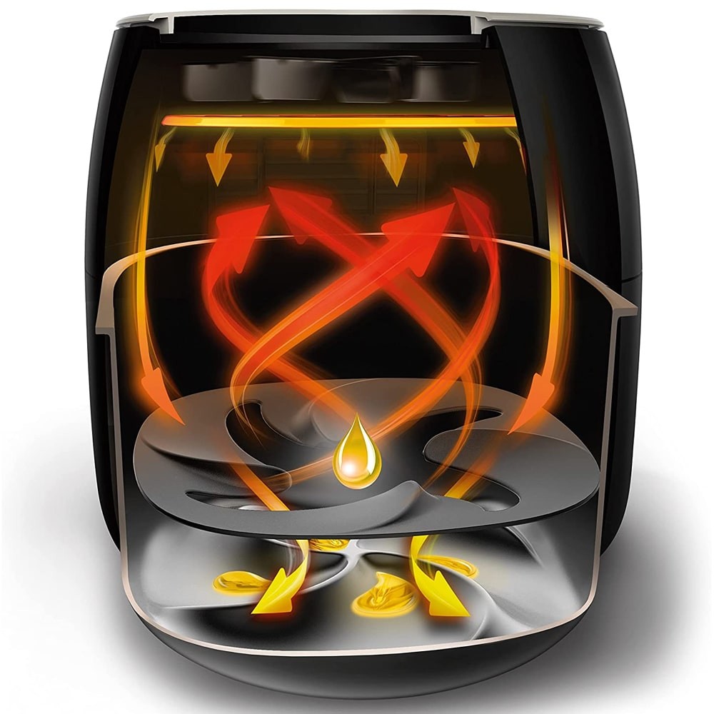 - امکان سرخ کردن مواد غذایی با 90% چربی کم تر دارای تکنولوژی حذف چربی سرخ کردن مواد غذایی بدون نیاز به پیش گرم کردن دستگاه قابلیت پخت سریعتر تا 1.5 برابر بیشتر از فر دارای چراغ نشانگر زمان پخت دارای سبد QuickClean Airfryer با روکش نچسب جهت تمیز کردن آسان تکنولوژی Twin TurboStar برای گردش سریع هوای داغ جهت سرخ کردن بدون روغن تکنولوژی Rapid Air برای گردش سریع هوا و کاهش بو در هنگام سرخ کردن قابلیت Cool wall exterior برای جلوگیری از گرم شدن بدنه تمامی قطعات قابل جابجایی قابل شستشو در ماشین ظرفشویی دارای کاسه با روکش نچسب پایه لاستیکی برای ثبات بیشتر دستگاه دستور پخت از پیش تعیین شده دارای نشانگر روشن بودن دستگاه