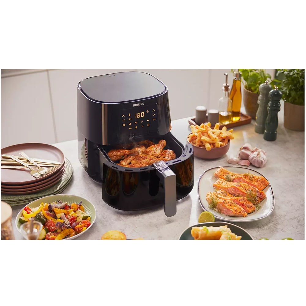 - دارای چراغ نشانگر زمان پخت دارای سبد QuickClean Airfryer با روکش نچسب جهت تمیز کردن آسان دارای کاسه با روکش نچسب تکنولوژی Rapid Air برای گردش سریع هوا و کاهش بو در هنگام سرخ کردن قابلیت Cool wall exterior برای جلوگیری از گرم شدن بدنه تمامی قطعات قابل جابجایی قابل شستشو در ماشین ظرفشویی پایه لاستیکی برای ثبات بیشتر دستگاه دستور پخت از پیش تعیین شده دارای نشانگر روشن بودن دستگاه امکان سرخ کردن مواد غذایی با 90% چربی کم تر پشتیبانی از کنترل صوتی فعال و سازگار با آمازون الکسا قابلیت پخت سریعتر تا 1.5 برابر بیشتر از فر سرخ کردن مواد غذایی بدون نیاز به پیش گرم کردن دستگاه