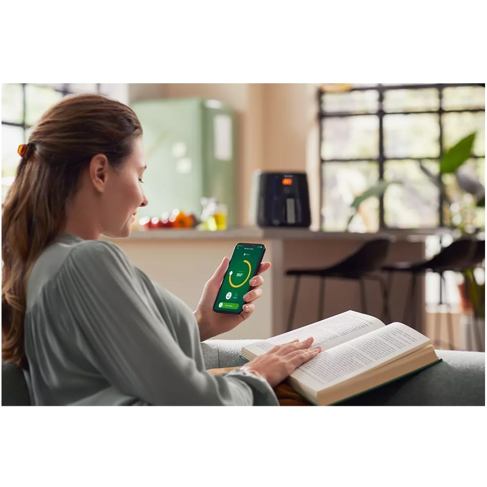 سرخ کن رژیمی فیلیپس مدل HD9280 مجهز به وای فای (WiFi) میباشد و به صورت بی سیم به گوشی شما متصل خواهد شد نتیجه اینکه میتوانید از راه دور نظارهگر پیشرفت و اتمام پخت و پز غذا باشید. میتوانید اپلیکیشن NutriU App را بر روی گوشی خود نصب کنید و به کمک آن، سالمتر غذا بخورید. این برنامه دستورهای غذایی بسیار متنوعی را در اختیار شما قرار میدهد که میتوانید به راحتی با سرخ کن تهیه کنید. پیشنهادهای روزانه آسان مطابق با سلیقه غذایی خود و خانوادهتان دریافت کنید. به خانواده NutriU بپیوندید و آشپزهایی که سلیقه غذایی مشابه با شما را دارند دنبال کنید و از آنها الهام بگیرید. قابلیت Automatic shut-off یا همان سیستم خاموش شدن خودکار در لیست مشخصات سرخ کن کم روغن فیلیپس 9280 قرار دارد که پس از پایان یافتن زمان پخت غذا آن را از طریق یک هشدار شنیداری به شما اطلاع خواهد داد. این سرخ کن 2000 واتی فیلیپس دارای قابلیت Cool wall exterior میباشد. این بدین معنی است که در هنگام روشن بودن دستگاه دیوار بیرونی آن خنک باقی میماند به علاوه دستگیره هم خنک خواهد بود و میتوانید به راحتی سبد کشویی را باز و بسته کنید.