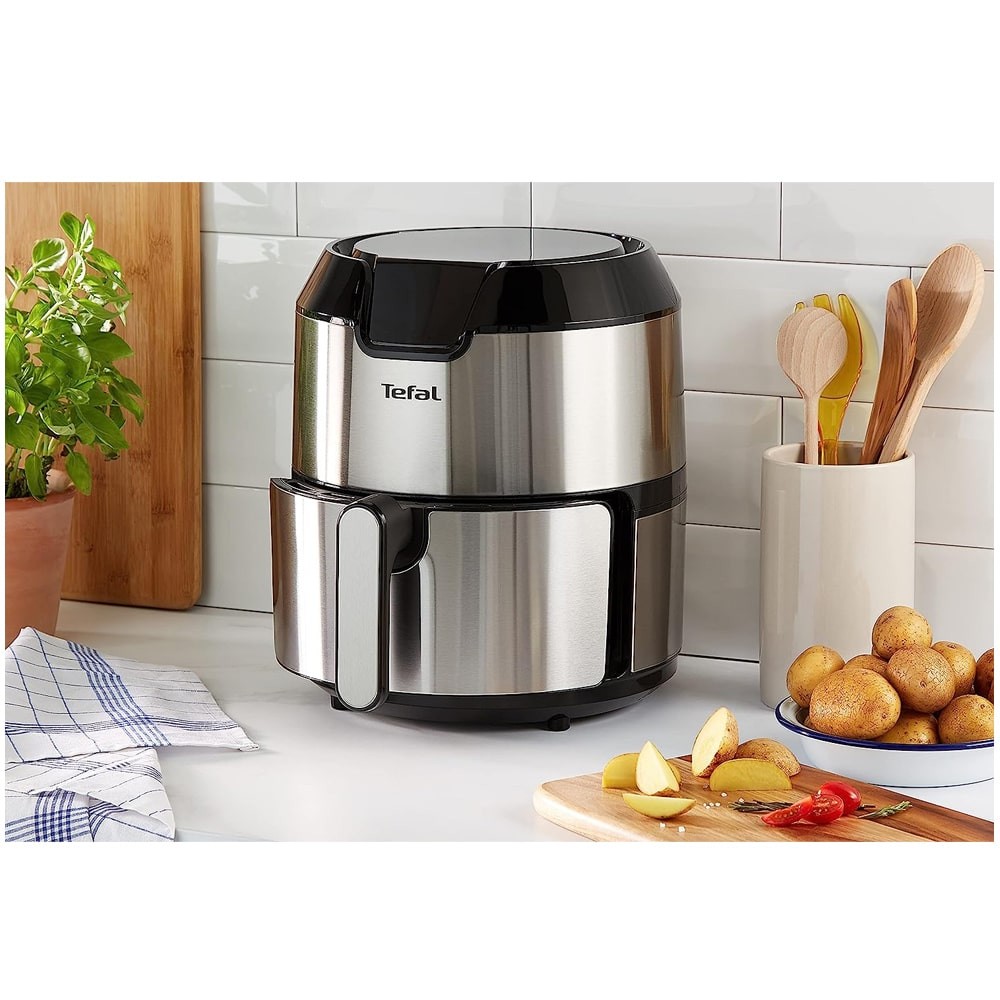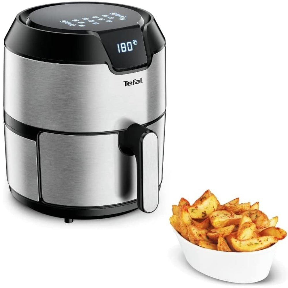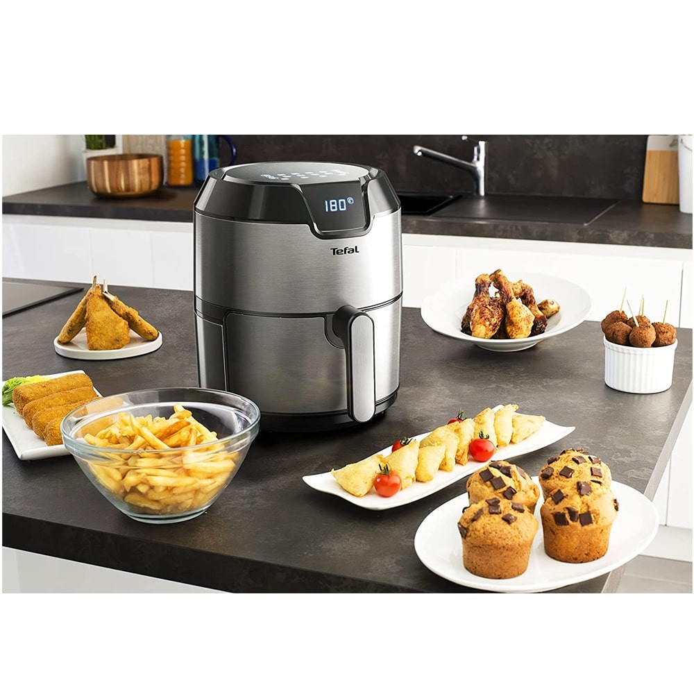 سرخ کن تفال EY401D در لیست محصولاتی قرار دارد که امکان سرخ کردن مواد غذایی را با کمترین میزان مصرف روغن یا اصلا بدون روغن را فراهم میکند. بنابراین برای افرادی که رژیم غذایی دارند مناسب است و میتوانند همراه آن غذاهای کاملا خوش مزه و سالمی را تهیه کنند. این سرخ کن جزو سرخ کنهای XL موجود در بازار است که با داشتن ظرفیت 4.2 لیتر برای خانوادههای با جمعیت 5 نفره ایدهآل است و میتواند جوابگوی نیاز آنها باشد. سبد این سرخ کن تفال از جنس استیل ضد زنگ است و دارای روکش نچسب میباشد که این قضیه باعث میشود به راحتی بتوانید آن را به صورت دستی یا با ماشین ظرفشویی شستشو دهید. یک صفحه نمایش دیجیتال لمسی بزرگ در قسمت بالای سرخ کن قابل مشاهده است که دارای 8 برنامه با دما و زمان از پیش تنظیم شده میباشند که با استفاده از آن به راحتی میتوانید تصمیم بگیرید که کدام دما برای پختن غذای شما بهتر است. اگرچه میتوانید با استفاده از کنترلهای صفحه لمسی روی صفحه نمایش این تنظیمات از پیش تعیین شده را مطابق میل خود تنظیم کنید. محدوده تنظیم درجه حرارت این سرخ کن بین 80 تا 200 درجه سانتیگراد و محدوده تنظیم زمان پخت دستگاه تا 60 دقیقه میباشد.