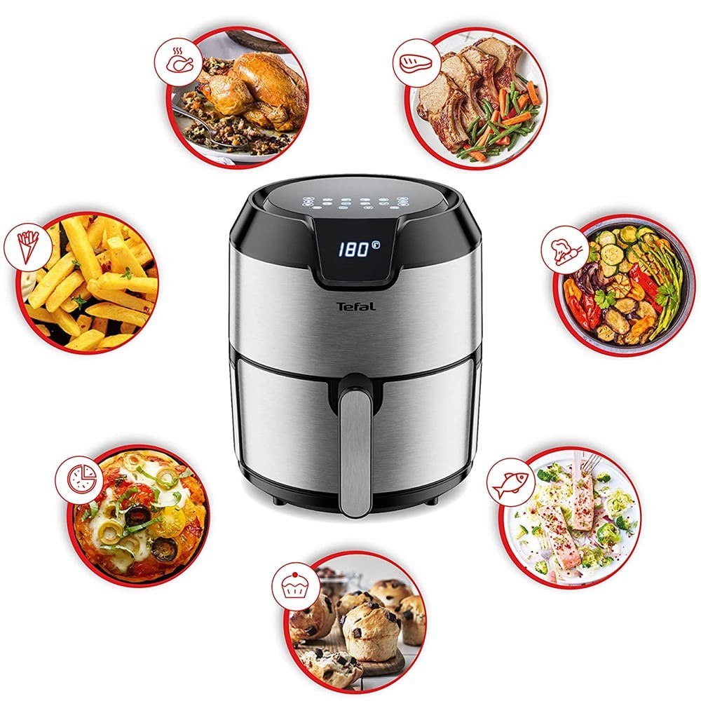 گزینههای سیب زمینی سرخ کرده، کتلت، میگو، کیک، پیتزا، ماهی، گریل، کباب منوی از پیش تعیین شدهای هستند که بر روی صفحه بزرگ نمایشگر وجود دارند و با انتخاب هر کدام از اینها میتوانید ماده غذایی مورد نظر را در درجه حرارت و زمان مناسب درست کنید. نتیجه اینکه این سرخ کن ایزی فرای لوکس تفال نه تنها میتواند سرخ کند، بلکه میتواند عملکرد کباب، برشته و پخت را نیز انجام دهد.