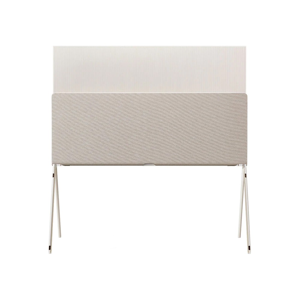 تلویزیون لایف استایل ال جی 55LX1 از جمله تلویزیون های بسیار لوکس و خاص این برند است که از زبان طراحی All-Around برخوردار می باشد و در این زمینه حرف زیادی برای گفتن دارد. ال جی این تلویزیون را با عنوان Objet Collection Pose معرفی کرده است که از طراحی آن نشات می گیرد؛ در واقع طراحی این تلویزیون شامل مجموعه ای از آیتم های مختلف است که در کنار هم یکپارچگی غیر قابل وصفی را ایجاد کرده اند. ظاهر این محصول از هر زاویه ای خیره کننده است و به همین دلیل به آن Objet Collection گفته می شود. همچنین به دلیل قابلیت جا به جایی و امکان قرار دادن این تلویزیون در هر جایی از فضای دکوراسیون، از آن با عنوان Pose یاد می شود. این محصول دارای پایه های سفید رنگ است که همرنگ بدنه اصلی تلویزیون می باشد. پایه های این محصول به شکل دو شاخه و بلند طراحی شده است و با پیچ به بدنه آن متصل می شود. تلویزیون پیش روی شما ضخامت کمی (61 سانتیمتر) دارد و به لطف برخورداری از طراحی Rounded Edge دارای لبه های گرد در تمام گوشه ها می باشد که زیبایی آن را دو برابر می کند. این تلویزیون دارای یک قفسه پشتی (Media Shelf) است که می توانید آن را شخصی سازی کرده و لوازم دلخواه خود همچون کتاب، مجله، دیسک گرامافون و کارت پستال های مورد علاقه تان را در آن به نمایش بگذارید. روی این قفسه با یک قاب زیبا که روکشی از الیاف نرم و پارچه مانند به رنگ بژ دارد، پوشانده شده و ظاهری خنثی را در آن ایجاد می کند. ال جی برای این محصول یک قفسه جداگانه نیز طراحی کرده است که برای مدیریت کابل و لوازم جانبی مانند مودم، سه راهه برق و... در پشت تلویزیون کاربرد دارد. همچنین در پشت تلویزیون و داخل پایه های پشتی آن نیز شیارهایی برای مخفی کردن کابل و سیم های مربوطه تعبیه کرده است. توجه داشته باشید که شما می توانید با خرید پایه دیواری این تلویزیون را روی دیوار نصب نمایید.