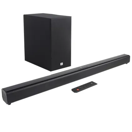 ساندبار جی بی ال SB160 یک سیستم صوتی عالی که صدایی با کیفیت سینمایی را به تلویزیون شما ارائه خواهد داد. اگر بودجه کمی دارید اما همچنان میخواهید کیفیت صدای استثنایی داشته باشید انتخاب این محصول بسیار عالی میباشد. همچنین ساندبار فوق دارای اتصال بلوتوث است و ممکن است به عنوان یک بلندگوی بی سیم استفاده شود. ساندبار 2.1 کاناله جی بی ال SB160 مجهز به 1 ساب ووفر بی سیم (Wireless) بوده که صدا را با توان 116 وات از خود خارج میکند. همچنین دارای 2 توییتر 31.75 میلیمتری که توان خروجی هر کدام 52 وات است و در مجموع این ساندبار صدایی با قدرت 220 وات را به شما ارائه خواهد داد. ساندبار JBL SB160 بیس قدرتمندی را با ساب ووفر ارائه میدهد که وقتی به درستی کالیبره و قرار داده شود، غوطهوری کامل را در هر صدا و صحنهای برای شما به ارمغان خواهد آورد.