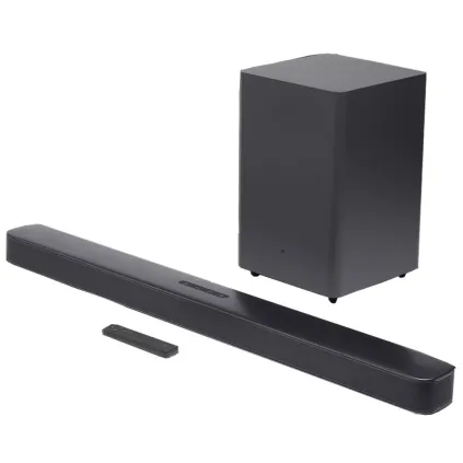ساندبار جی بی ال Bar 2.1 یک ساندبار نسبتا ارزان که توسط شرکت JBL به بازار ارائه شده است. اکنون به خاطر داشته باشید که یک سردرگمی وجود دارد زیرا JBL قبلاً یک نوار صوتی به نام JBL Bar 2.1 داشت اما نسخهای که امروز در اینجا مرور خواهیم کرد نسخه جدیدی است و بنابراین JBL مجبور شد در پایان "Deep Bass" را اضافه کند تا آن را از محصول دیگر خود متمایز کند. اگرچه هر دو ساندبار دارای ویژگیهای تقریباً مشابهی هستند، JBL Bar 2.1 Deep Bass از طراحی کاملاً متفاوت و چند ویژگی متفاوت استفاده میکند. این محصول پخش بلوتوث و USB را ارائه میدهد و از محتوای Dolby Digital پشتیبانی میکند. از نظر کالیبراسیون و تنظیمات صدا، دستگاه بسیار سبک است و تنها دارای برخی از موارد اولیه مانند کنترل باس به همراه چند حالت صدا است. این سیستم یک نوار صوتی معمولی 2.1 کاناله است که شامل دو کانال اصلی در نوار اصلی به همراه یک ساب ووفر برای قسمت پایینتر است. در واقع دارای 2 بلندگوی توییتر (Tweeter) 25.40 میلیمتری با توان 2x50 وات در واحد اصلی و یک ساب ووفر 200 واتی میباشد که در مجموع صدایی با قدرت 300 وات را در اختیار شما قرار میدهد. ساندبار JBL Bar 2.1 بیس قدرتمندی را با ساب ووفر ارائه میدهد که وقتی به درستی کالیبره و قرار داده شود، غوطهوری کامل را در هر صدا و صحنهای برای شما به ارمغان خواهد آورد.
