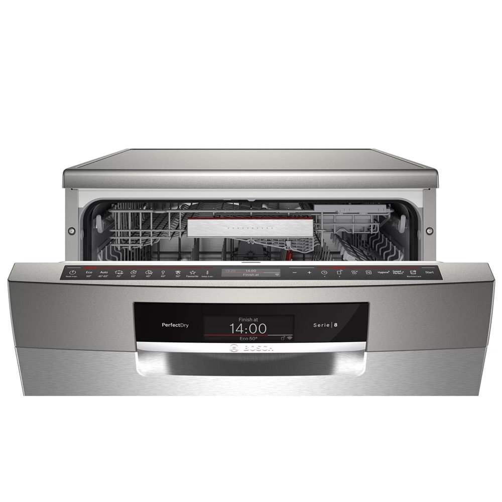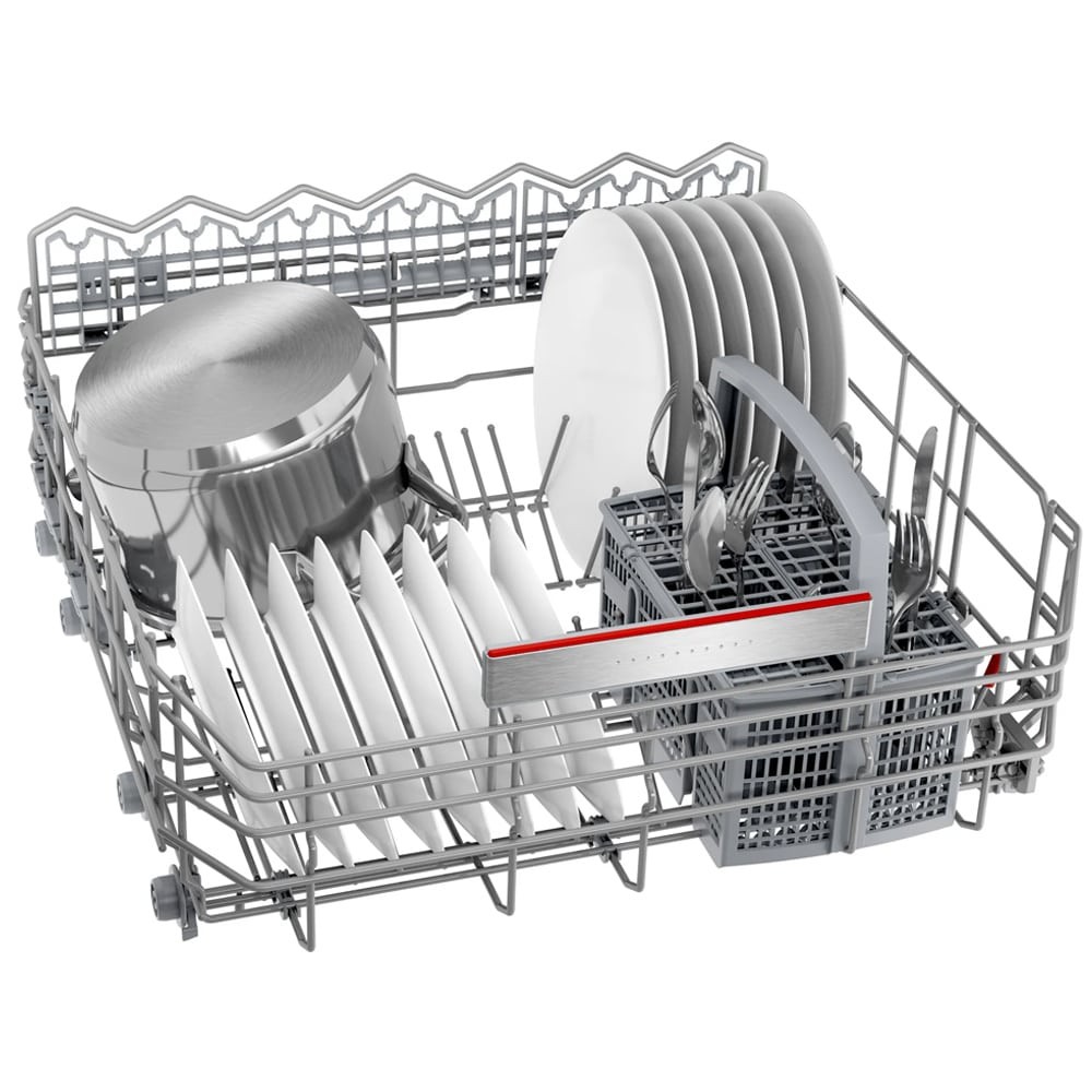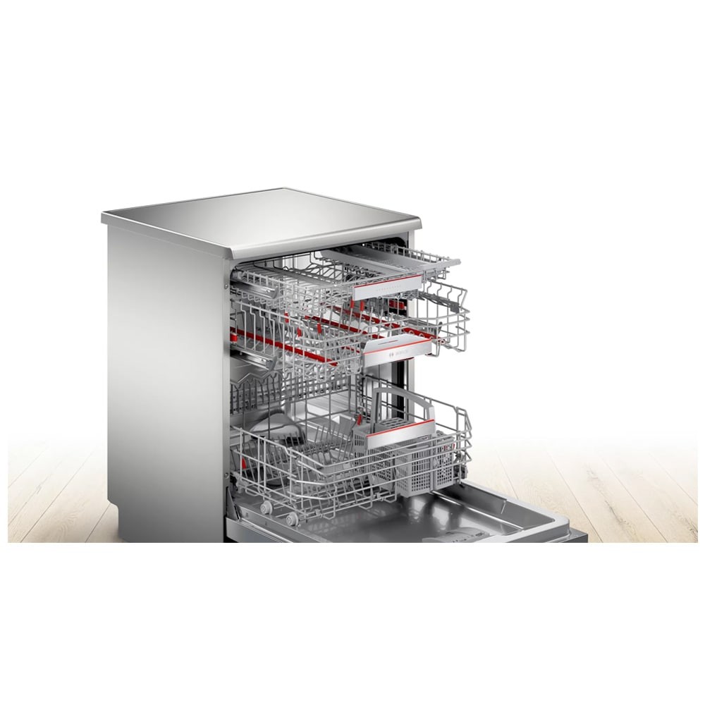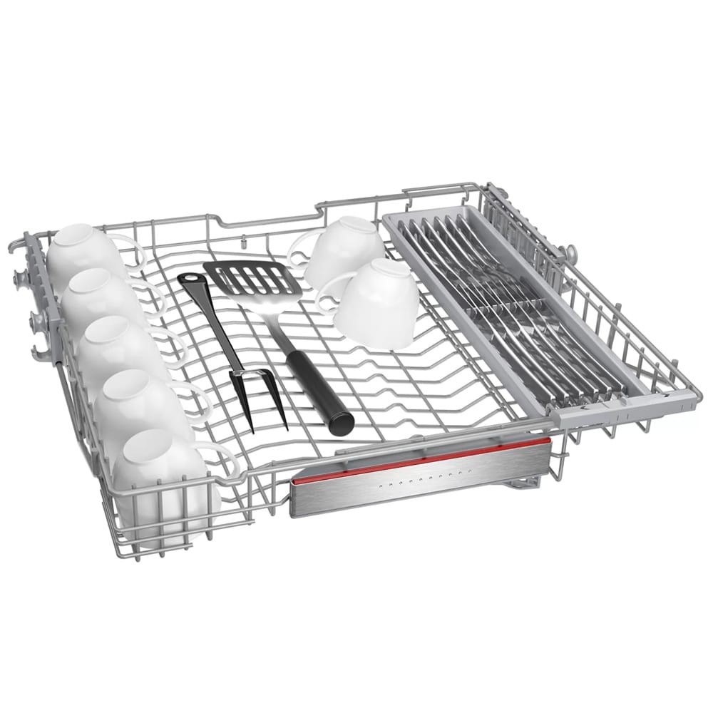 - دارای موتور EcoSilence Drive با صدای کم، راندمان و طول عمر بالا و صرفه جویی در مصرف انرژی تکنولوژی Precise Glass Protection برای تنظیم خودکار سختی آب و جلوگیری از آسیب رسیدن به ظروف شیشه ای و ظریف دارای سنسور تشخیص میزان کثیفی آب و ظروف (AquaSensor) جنس بدنه فولاد ضد زنگ (Stainless Steel) سیستم AquaStop برای جلوگیری از نشت آب با گارانتی مادام العمر توسط بوش دارای طبقه یا سبد بالا (Extra Space 3rd Basket) مخصوص قرارگیری قاشق، چنگال و ظروف کوچک دارای سبد کوچک Vario Basket یا Cutlery Basket مخصوص کارد، قاشق و چنگال قابلیت Half Load برای شستشوی ظروف با نصف ظرفیت تکنولوژی Glass Protection برای محافظت از ظروف شیشه ای و ظریف هنگام شستشو قابلیت emotionLight برای روشنایی محفظه داخلی ماشین ظرفشویی قابلیت Remote Start برای شروع برنامه شستشو ماشین ظرفشویی از راه دور به کمک موبایل با برنامه Home Connect دارای چرخه Intensive برای شستشوی ظروف بسیار کثیف دارای مبدل حرارتی (Heat Exchanger) برای خشک کردن ظروف سیستم DosageAssist برای ارائه شستشوی بهتر با پخش یکنواخت مواد شوینده در داخل ماشین ظرفشویی پشتیبانی از اینترنت اشیا (IoT) برای مدیریت و کنترل ماشین ظرفشویی از راه دور طراحی کاملا مینیمال برای هماهنگی هر چه بهتر با آشپزخانه شما قابلیت Extra Dry برای خشک کردن بهتر ظروف جنس بدنه فولاد ضد زنگ (Stainless Steel) با قابلیت Anti-Fingerprint برای جلوگیری از ماندگاری اثر انگشت روی بدنه دارای طبقات یا سبد های قابل تنظیم با سیستم Max Flex Pro تکنولوژی Detergent Automation برای صرفه جویی و تنظیم خودکار میزان استفاده از مواد شوینده دارای نشانگر پر کردن مجدد جلادهنده (Rinse Aid Refill Icon) تکنولوژی Zeolith Drying برای خشک کردن بهتر و سریع تر ظروف و صرفه جویی در انرژی محفظه داخلی ماشین ظرفشویی از جنس فولاد ضد زنگ و تضمین کیفیت آن تا 10 سال توسط بوش برنامه شستشوی Machine Care برای شستشو و تمیز کردن خودکار داخل ماشین ظرفشویی قابلیت HygienePlus برای شستشوی بهداشتی و ضدعفونی کردن ظروف به کمک آب با دمای بالا شستشوی سریع (Express Cycle) در 38 دقیقه قابلیت برداشتن قسمت بالایی ماشین ظرفشویی (Removable Top (Removable Top Cover)) برنامه شستشوی Silence برای کارکرد با صدای کم (در حدود 40 دسی بل) قابلیت ExtraDry برای خشک کردن بهتر ظروف تکنولوژی ActiveWater برای شستشوی بهتر و صرفه جویی در مصرف آب و انرژی پشتیبانی از برنامه Home Connect برای کنترل و مدیریت ماشین ظرفشویی از طریق موبایل دارای سیستم تمیز کردن خودکار با فیلتر 3 مرحله ای (Self-cleaning Filter System) دارای نشانگر پر کردن مجدد نمک (Salt Refill Icon) دارای Wi-Fi برای اتصال به شبکه و اینترنت