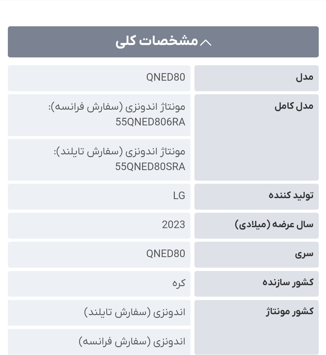 - مونتاژ اندونزی (سفارش تایلند): 55QNED80SRA مونتاژ اندونزی (سفارش فرانسه): 55QNED806RA
