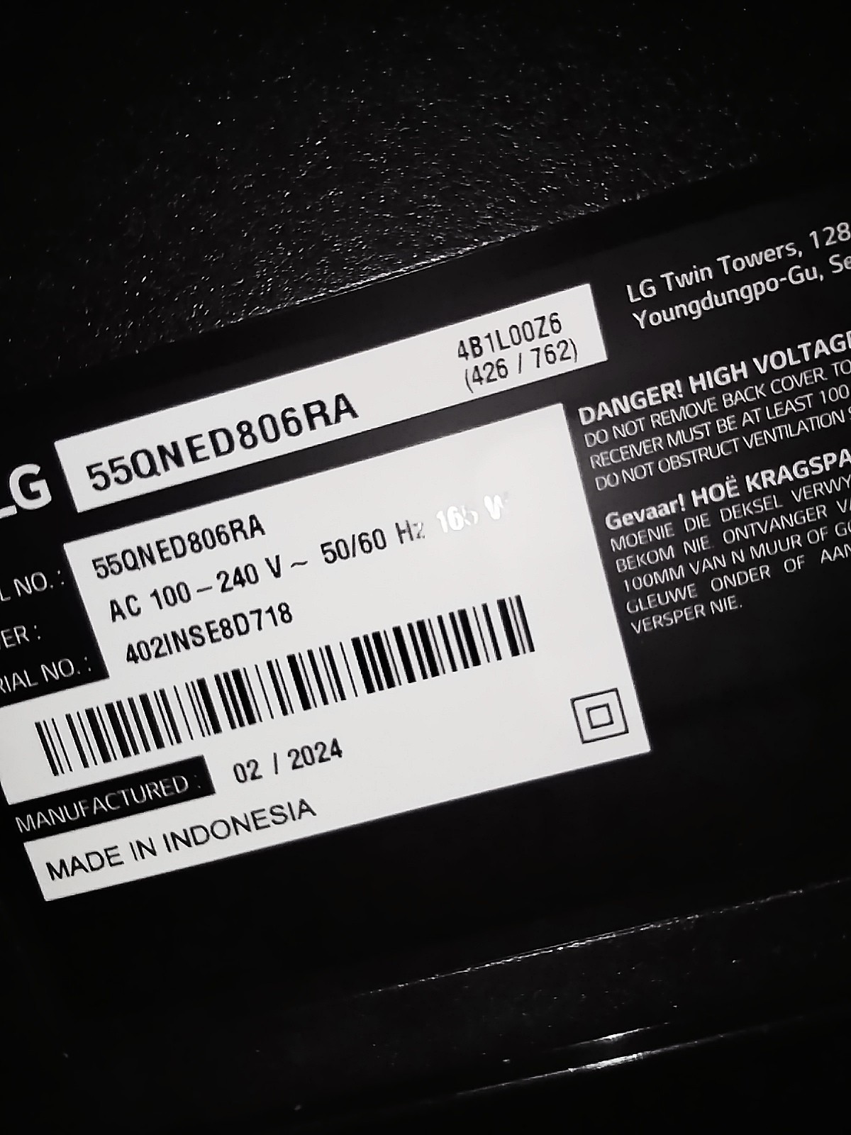 - مونتاژ اندونزی (سفارش تایلند): 55QNED80SRA مونتاژ اندونزی (سفارش فرانسه): 55QNED806RA