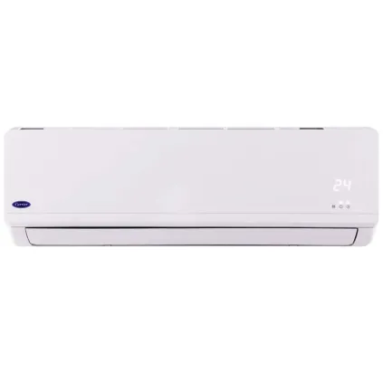 کولر گازی کریر 38QCF030733G مدل معرفی شده توسط شرکت آمریکایی کریر که در سال 2022 به عنوان سری QCF وارد بازار جهانی شده است. در حال حاضر مونتاژ چین این کولر گازی معمولی بدون اینوترر کریر در بازار ما موجود میباشد. با توجه به اینکه محصول نام برده شده دارای کلاس آب و هوای T3 است پس جهت استفاده در مناطق گرم و حارهای مناسب میباشد و میتواند کارایی عالی را از خود نشان دهد. کولر گازی مذکور دارای دو عملکرد سرمایشی و گرمایشی است پس خرید این سری از کولر گازیها به صرفه و اقتصادی میباشد زیرا که امکان استفاده از آنها در هر 4 فصل سال وجود دارد و میتوانند محیطی خنک و یا گرم را در اختیار شما قرار دهند. اسپلیت دیواری مورد بررسی از دو بخش یونیت داخلی و یا همان پنل دیواری با مدل 42QCF030733G و یونیت خارجی یا کمپرسور با مدل 38QCF030733G تشکیل شده است که با طراحی شیک و جمع و جوری که دارد نصب آن آسان و سریع میباشد. کریر برای این کولر گازی ظرفیت 30000 بی تی یو در ساعت که معادل 2.5 تن (Ton) میباشد را در نظر گرفته است. با توجه به این حجم از ظرفیت باید گفت که این محصول برای محیطهای بزرگ ایدهآل است و میتواند محیطی خنک یا گرم را برای شما فراهم کند. دمای این کولر گازی را به دلخواه میتوانید بین 16 تا 32 درجه سانتیگراد تنظیم کنید.